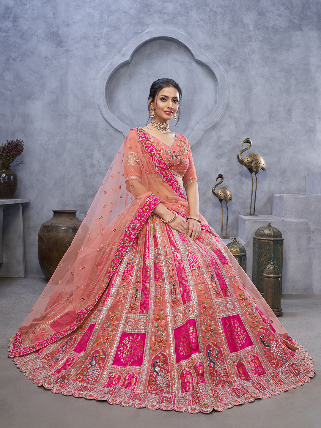 Adding a touch of grace to the old traditional designs, where dhoti pants were only worn by men! But now, dhoti drape skirts are trending and they are selling fast for the upcoming weddings in 2025. If you wanna make a statement this year as a bridesmaid then this lehenga is your go-to attire, flaunt it! Lehengas are said to be a mirror to your personality and they showcase your inner beauty. Get glammed up this shaadi season with Meena Bazaar Dhoti drape Lehenga Choli for women! Be graceful when you walk down the mandap beside her and help her shine bright.
