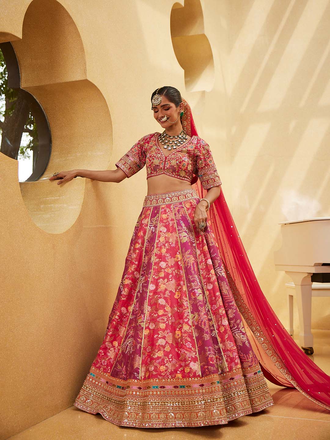 Royal Indian weddings are filled with countless laughs, wonderful memories, and stunning traditional clothing! Women have every reason to look their best at an Indian wedding, starting with the exciting ceremonies. It is imperative that guests at the wedding keep in mind that the bride is celebrating her special day and wearing her bridal lehenga is just as special! While styles change with the seasons, Mbz ethnic wear is classic and can be worn in any of them with the right layers—perfect for Shaadi, no less! Glamorously enter the gates beside the bride without taking her attention away from her. You can find the last piece of the puzzle for your updated ethnic wear collection online, ranging from wedding lehenga for women to unstitched ghagra choli for women.