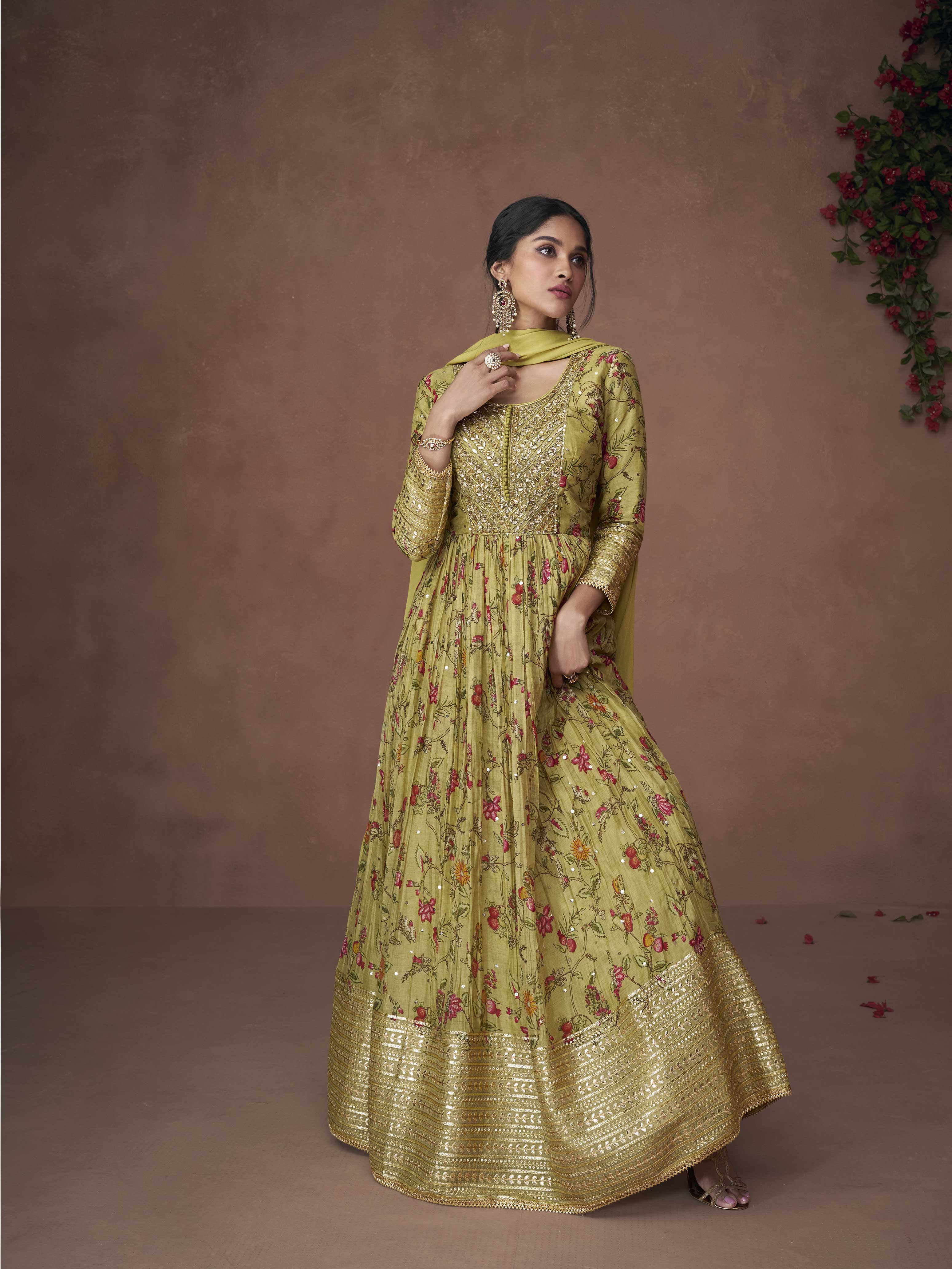 When ethnic dresses can provide you with the best ethnic wear ensembles, why exclude them? Get the newest selection of women's ethnic dresses to get you in the mood for the holidays! The most religious festival in India is Navratri, and it's always exciting for women to dress up for it. Mbz offers a large selection of ethnic dresses for you to choose from, including digitally printed floral crepe gowns with a cape and floral-printed georgette dresses! The newest trend in festive party ethnic wear for women, dresses come in a variety of designs, festive colours, and traditional prints. Get the newest styles in the Navratri Dresses Collection right away!