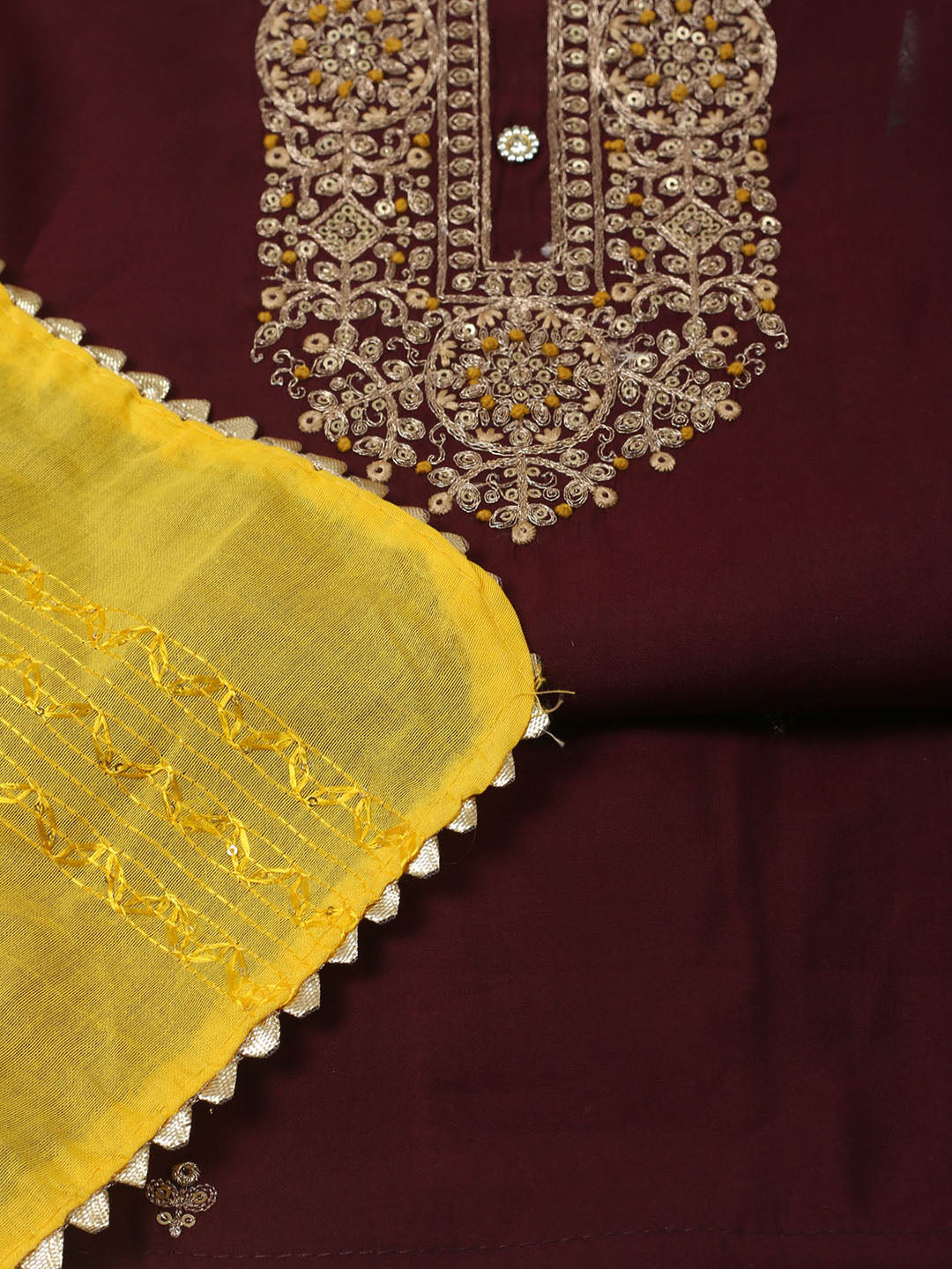 Neck Embroidery Chanderi Unstitched Suit Piece With Dupatta