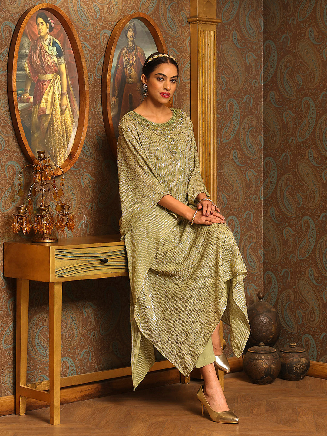 Sequin Embroidered Georgette Kaftan Kurta With Pants