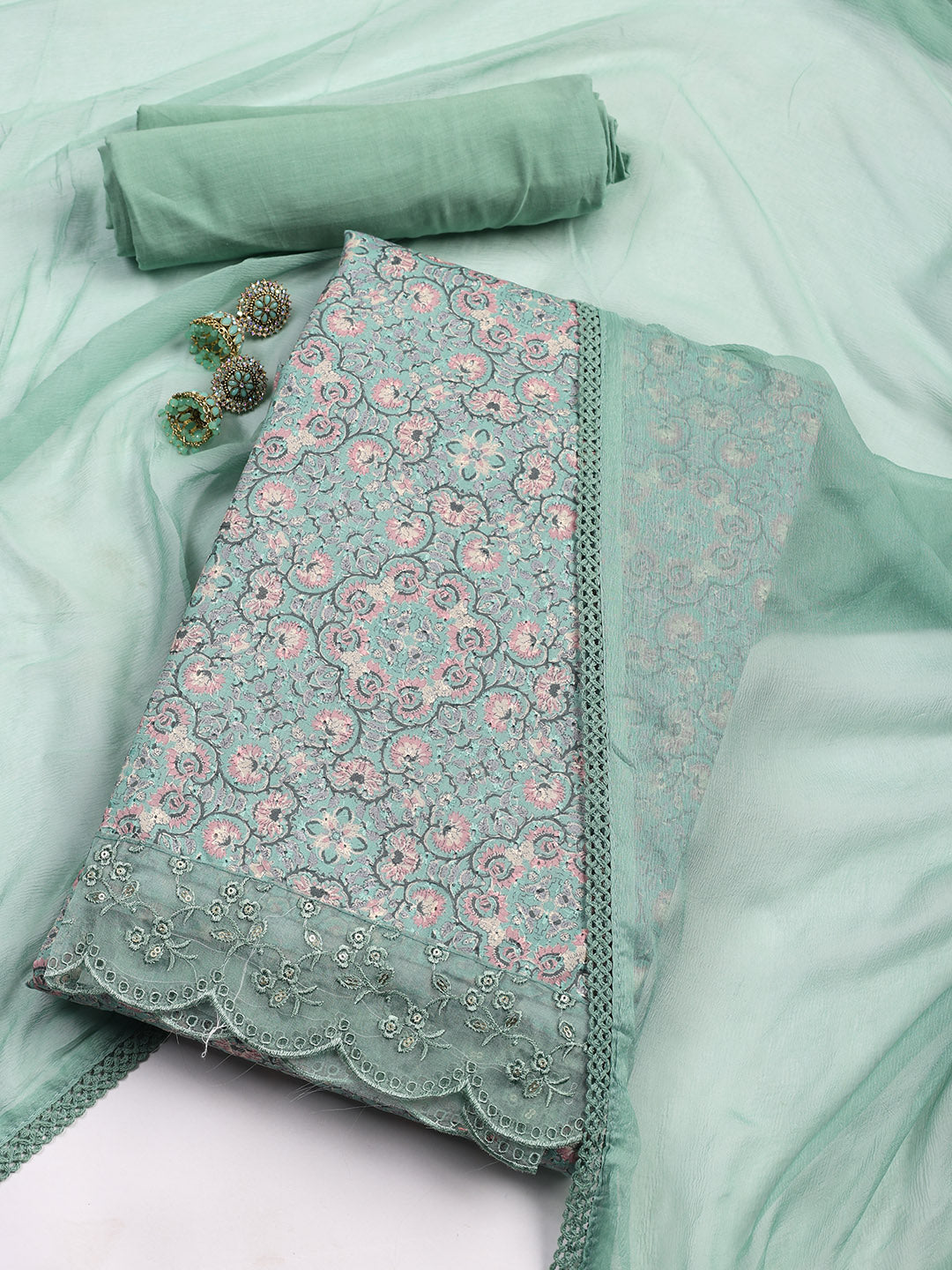 Printed Cotton Blend Unstitched Suit Piece With Dupatta