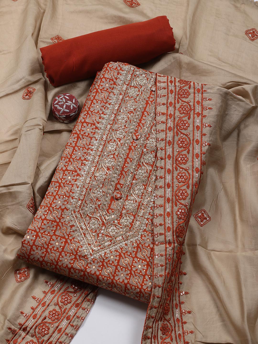 Embroidered Cotton Blend Unstitched Suit Piece With Dupatta