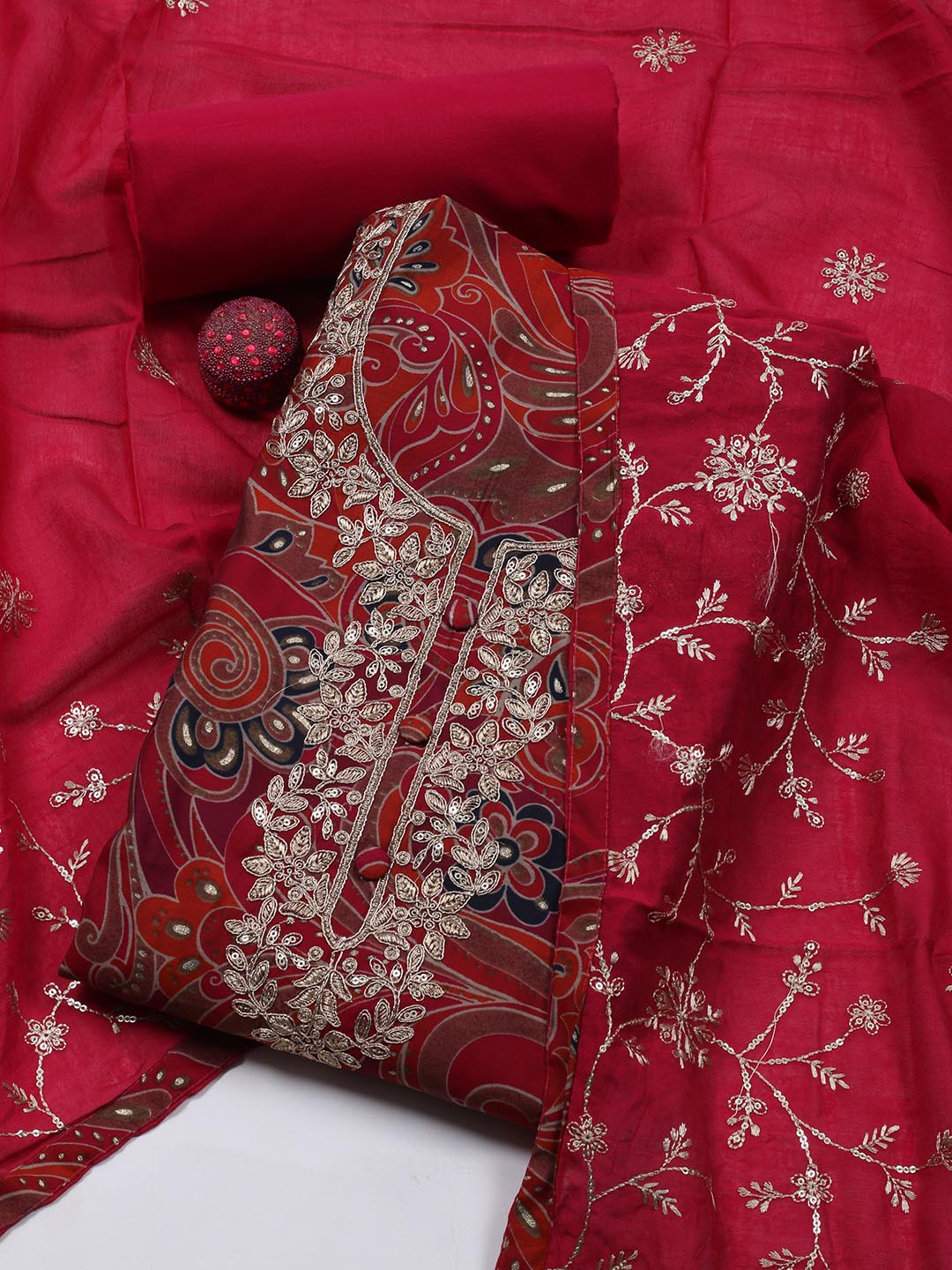 Neck Embroidered Cotton Blend Unstitched Suit Piece With Dupatta