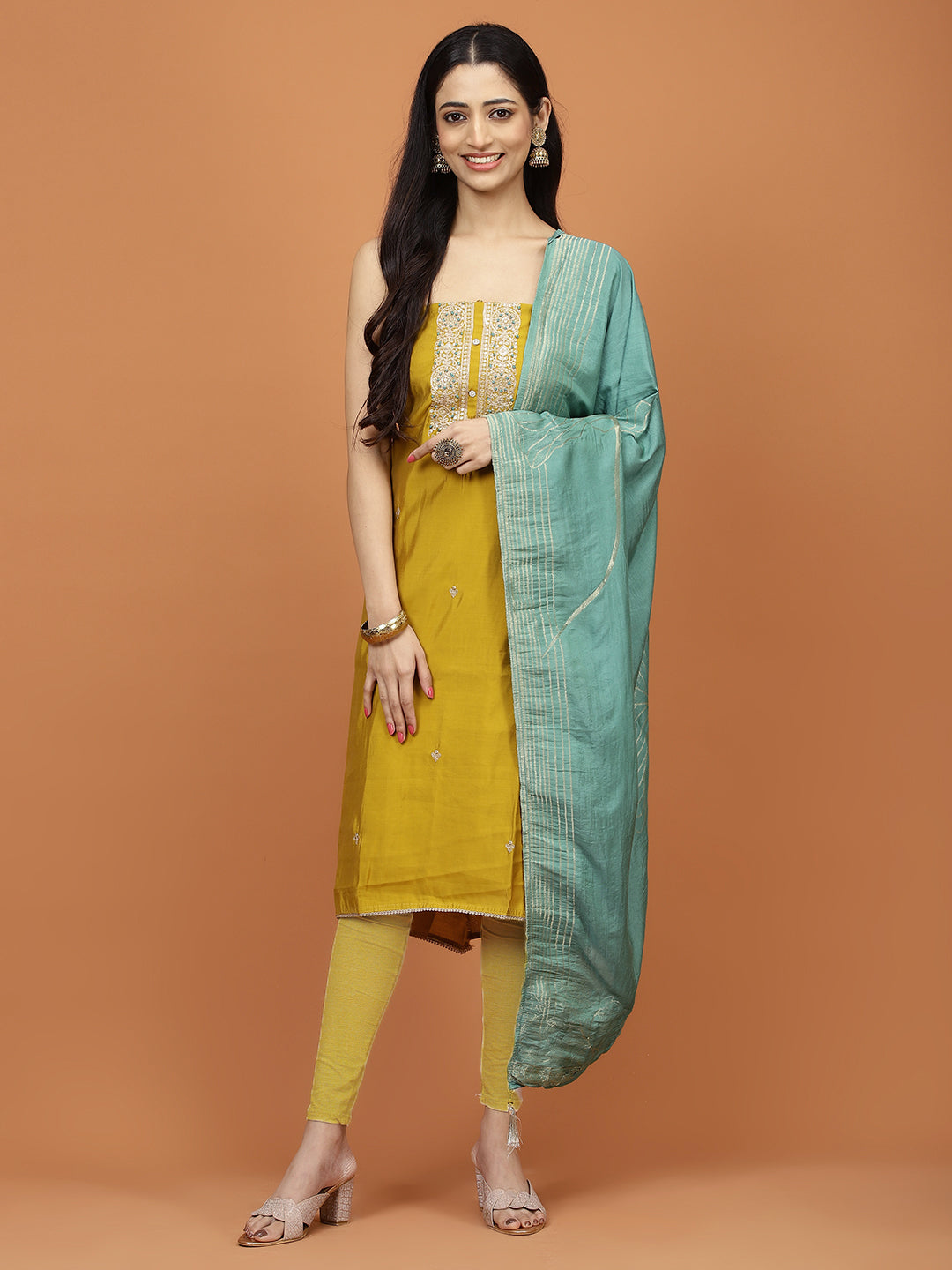 Neck Embroidery Chanderi Unstitched Suit Piece With Dupatta