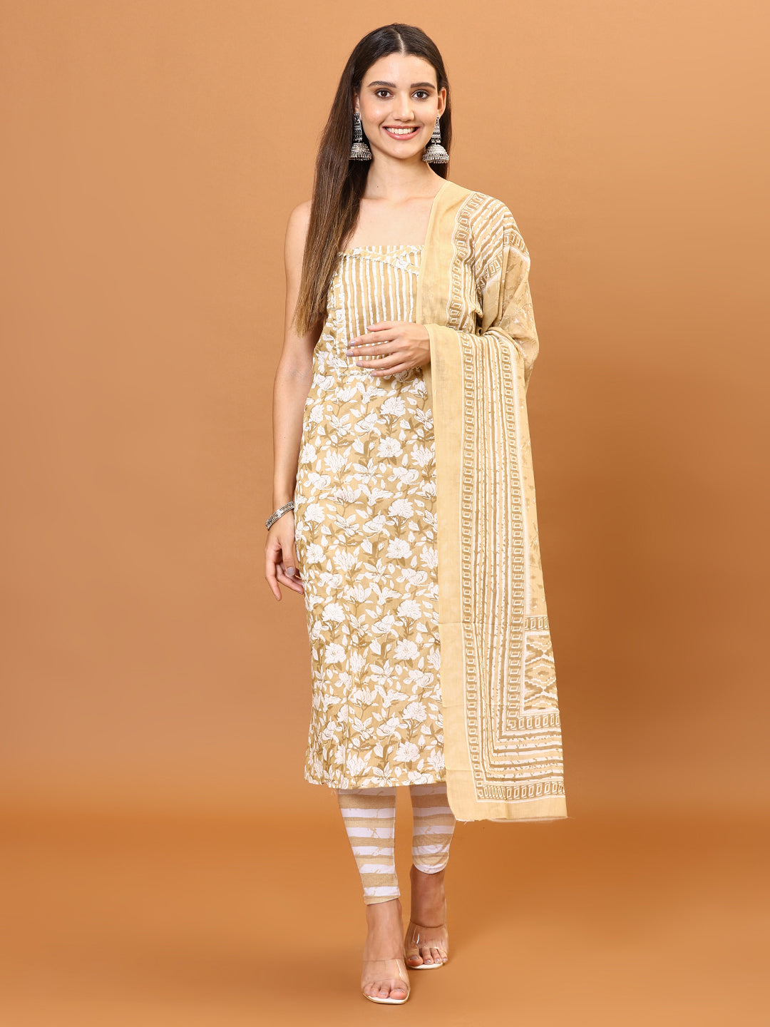 Printed Cotton Unstitched Suit Piece With Dupatta