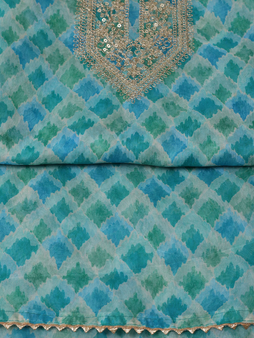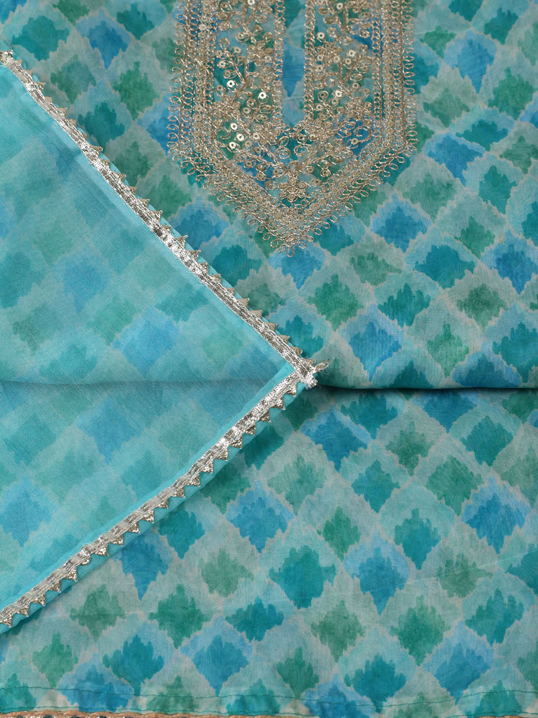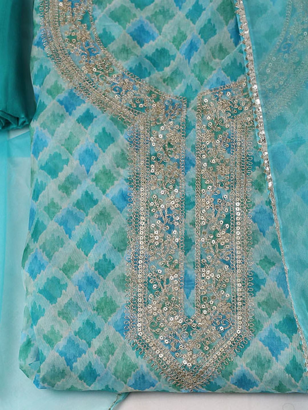 Neck Zari Embroidery Organza Unstitched Suit Piece With Dupatta
