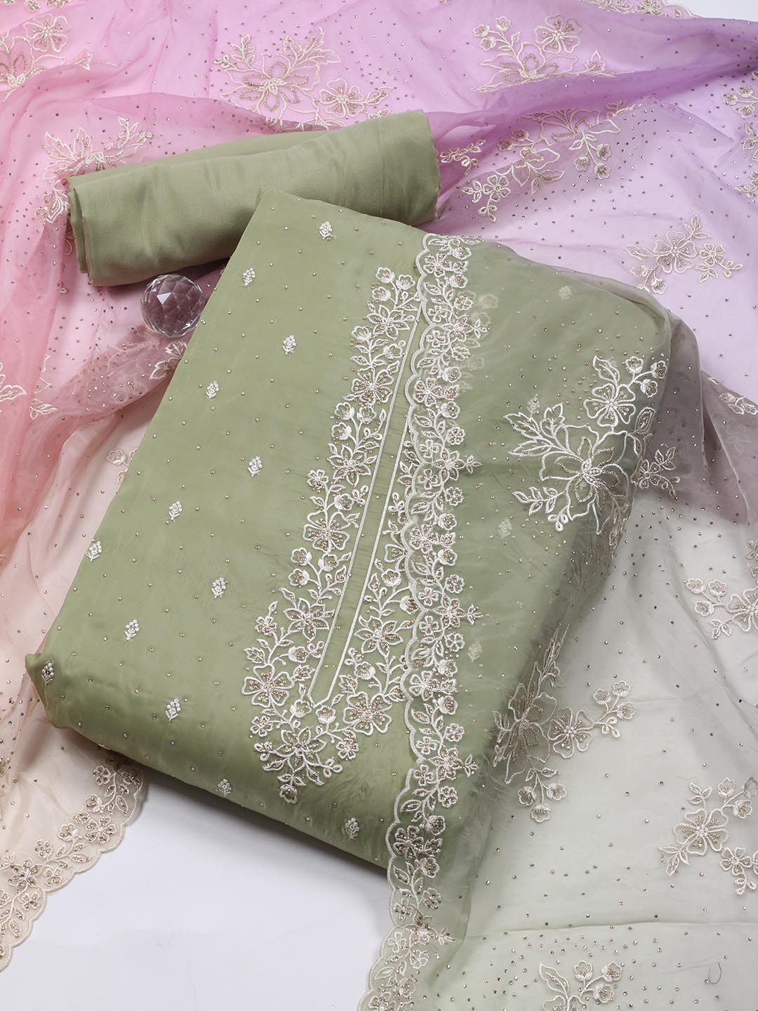 Neck Embroidery Organza Unstitched Suit Piece With Dupatta