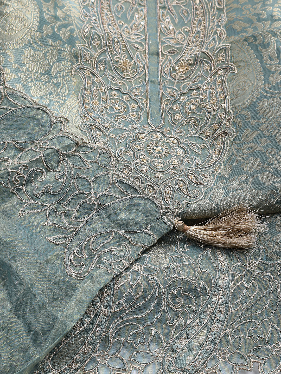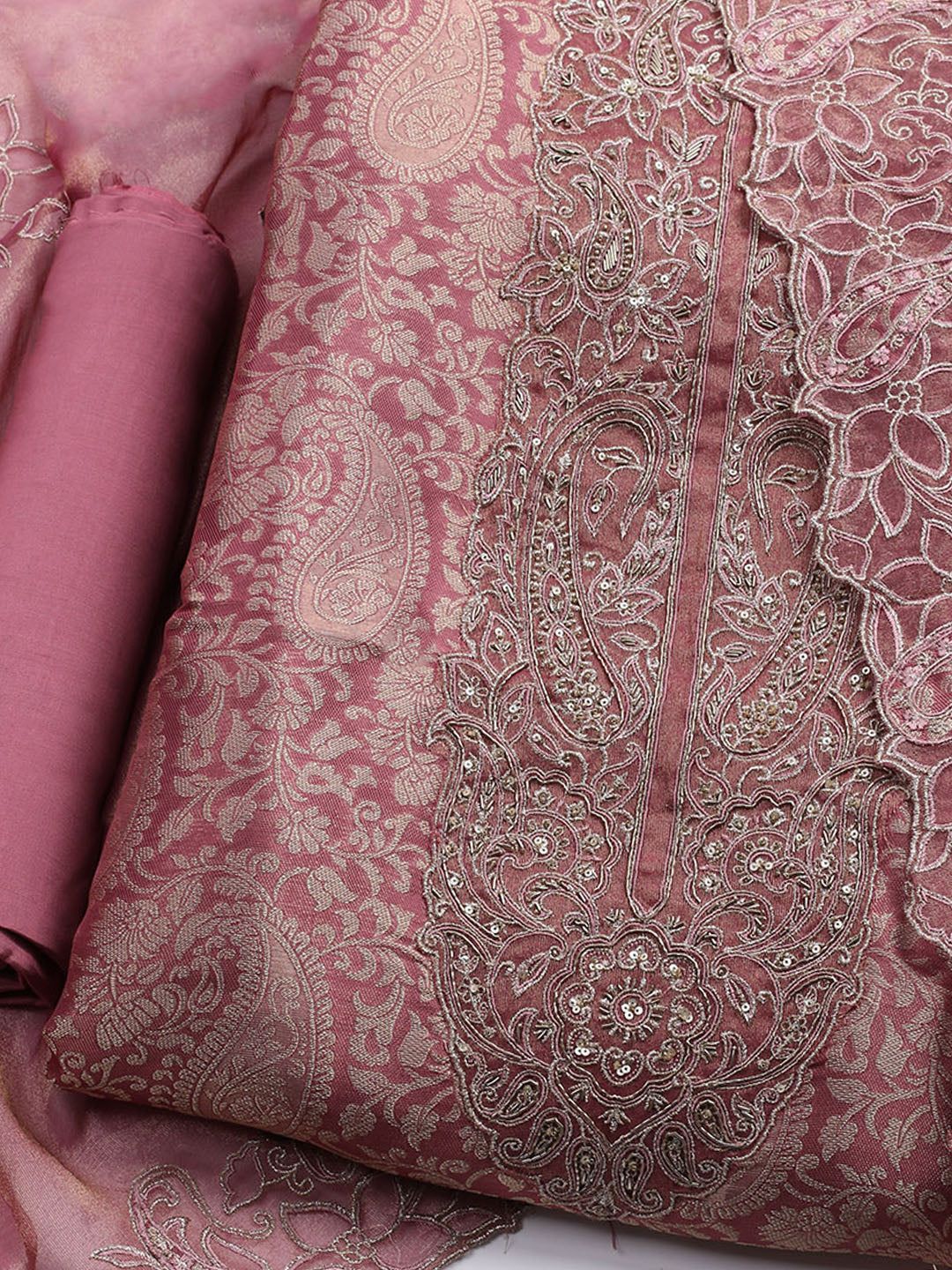 Woven Design Tissue Unstitched Suit With Dupatta