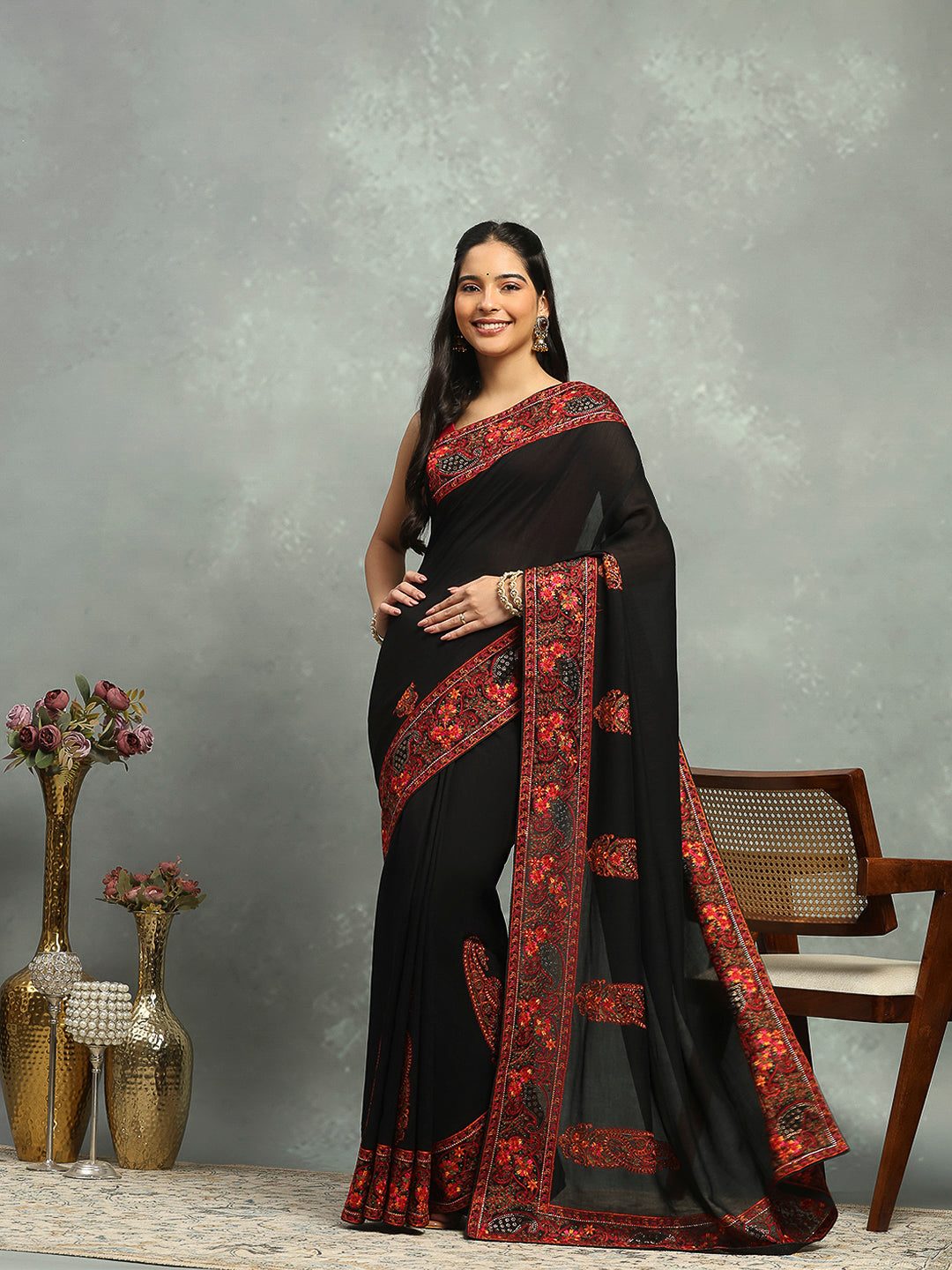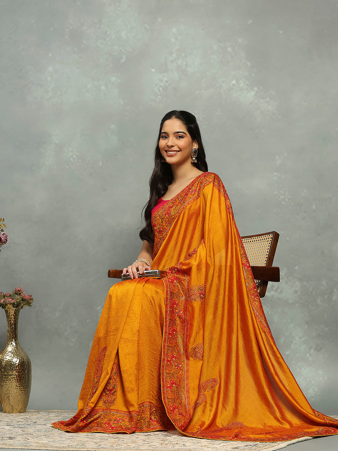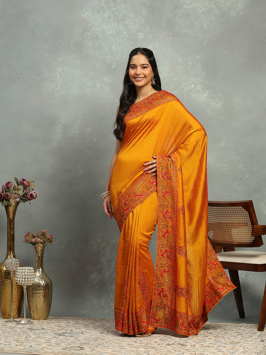 Note: The blouse shown in the pictures is just for Photoshoot purposes. The blouse you will get will be an attached running blouse.