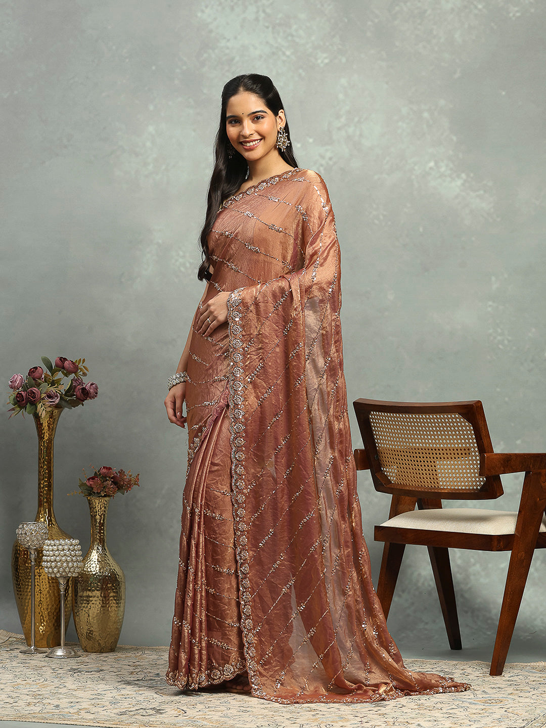 Note: The blouse shown in the pictures is just for Photoshoot purposes. The blouse you will get will be an attached running blouse.