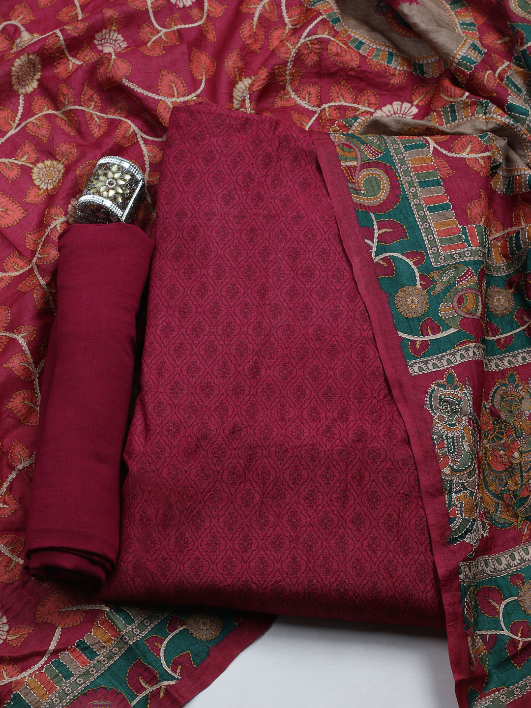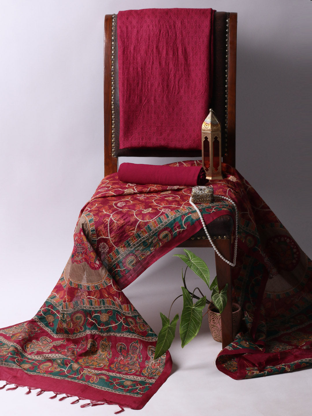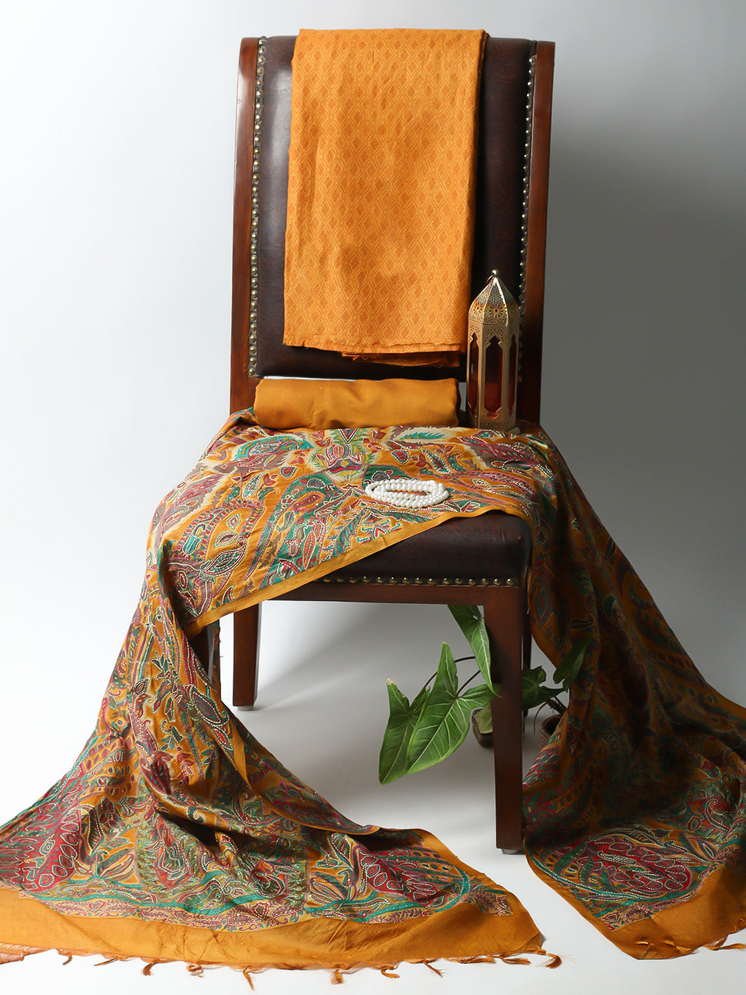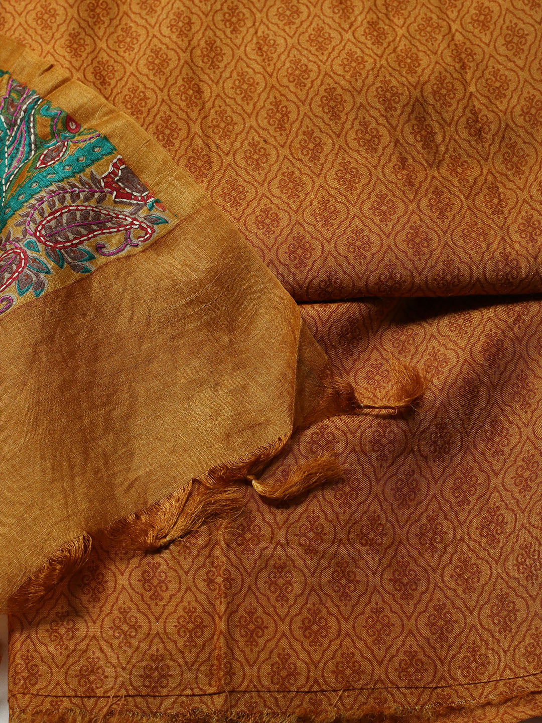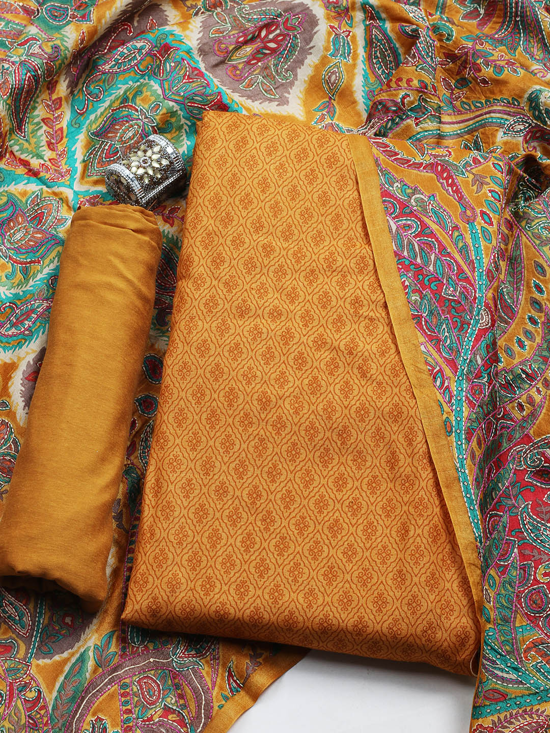 Printed Tussar Unstitched Kurta With Pant & Dupatta