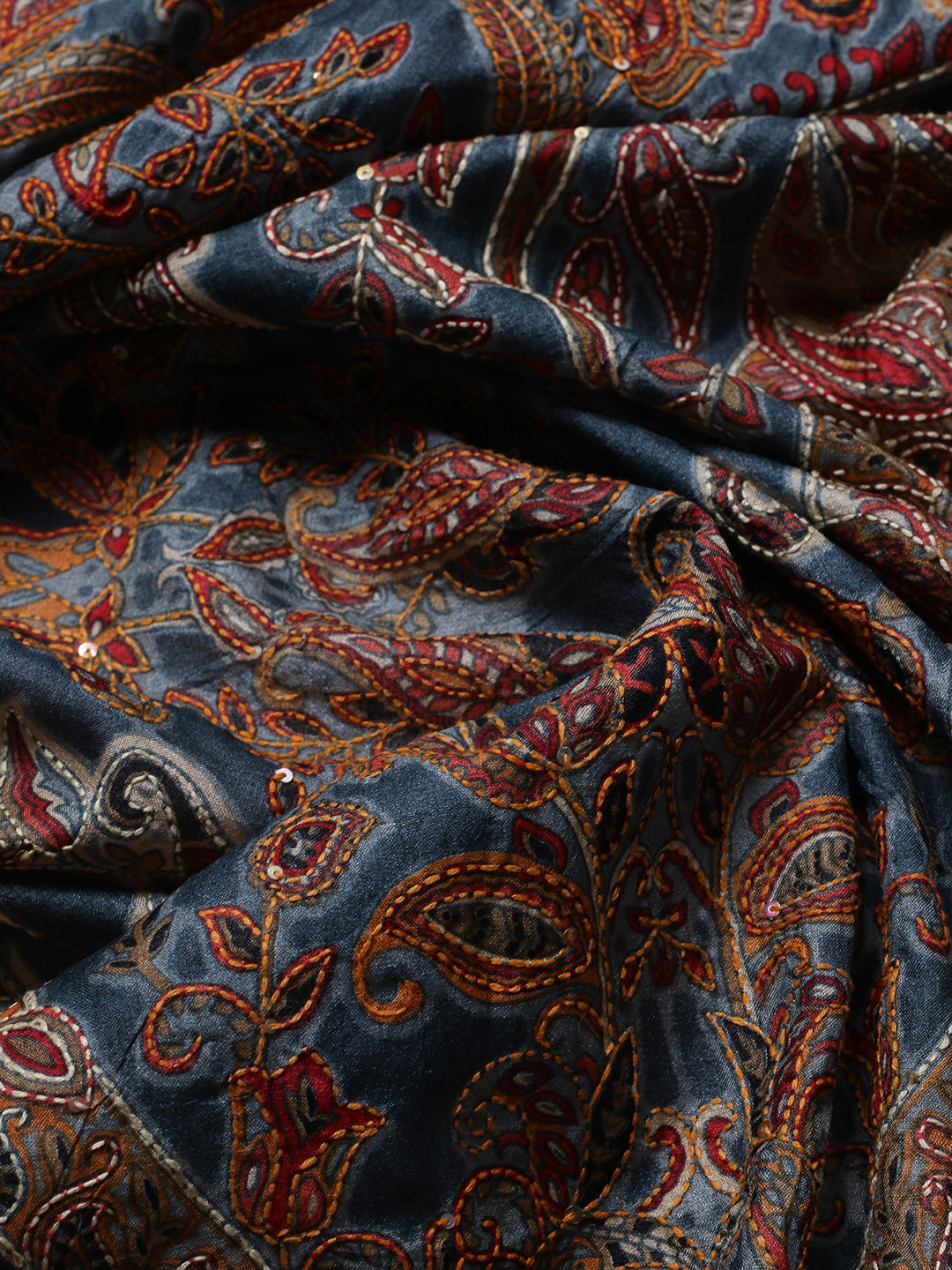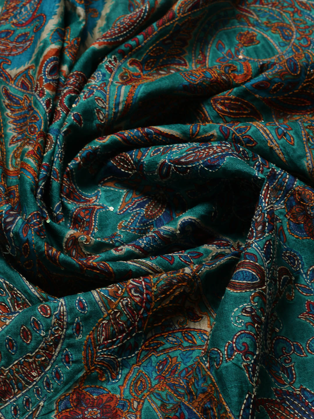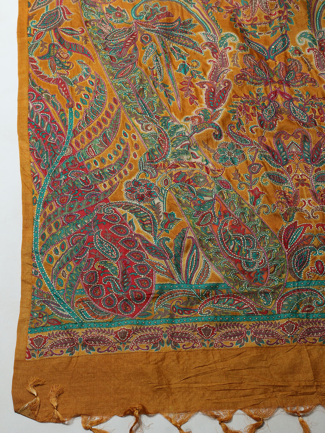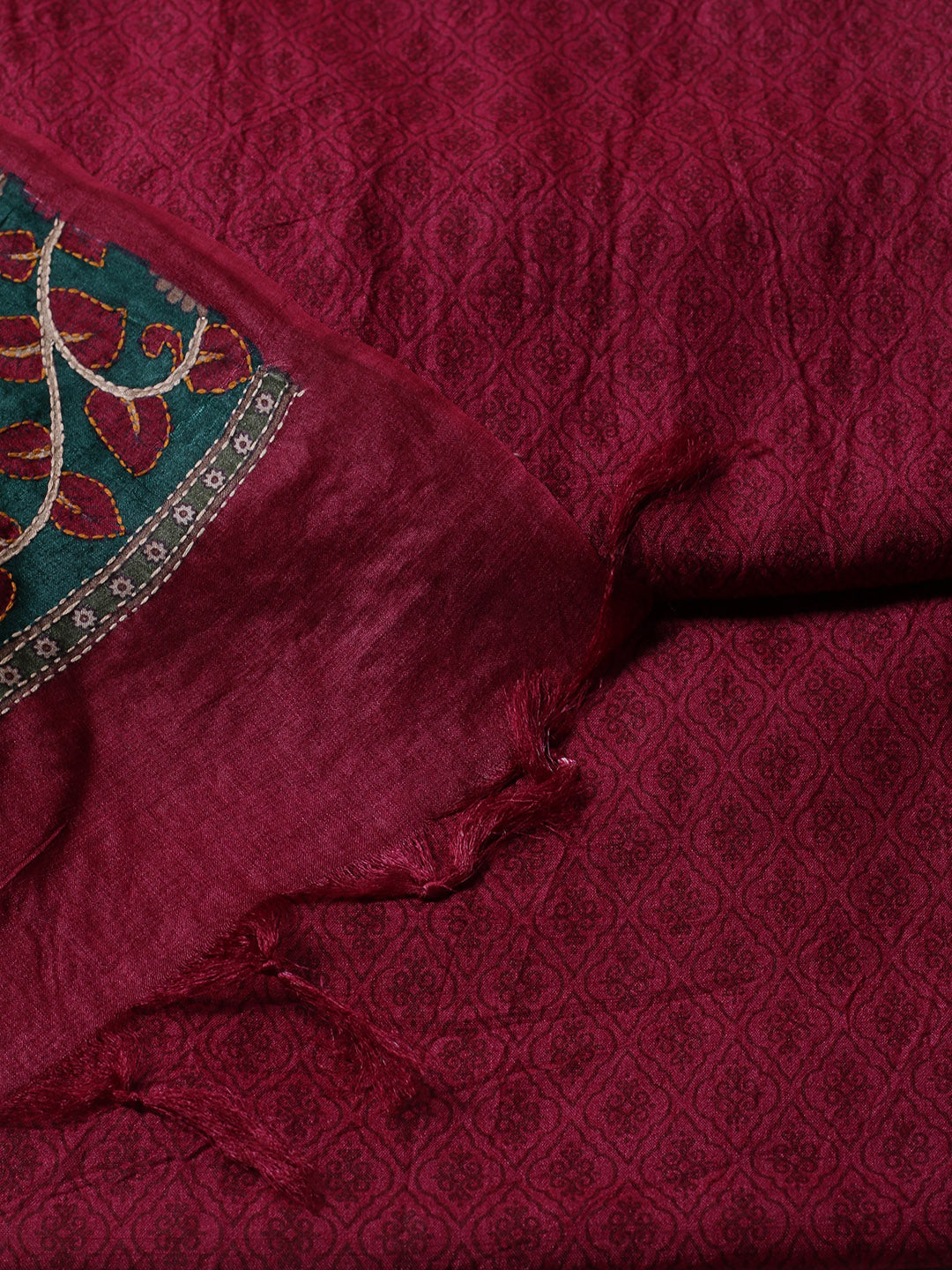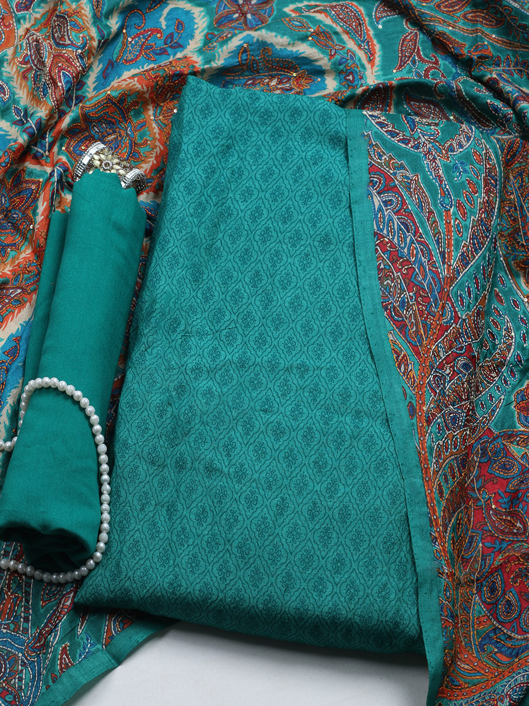 Printed Tussar Unstitched Kurta With Pant & Dupatta
