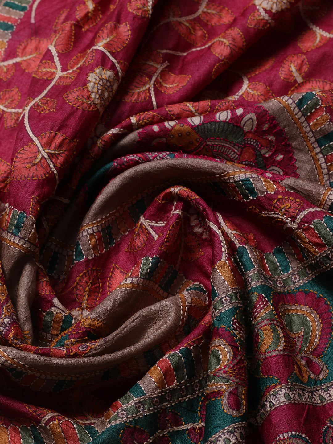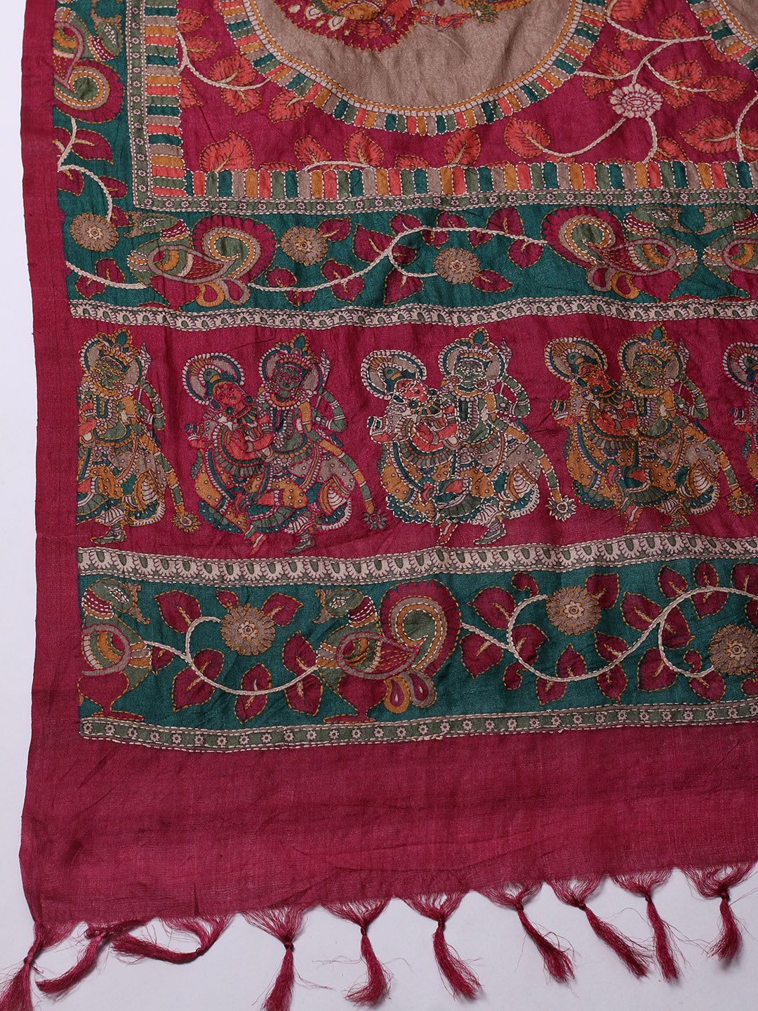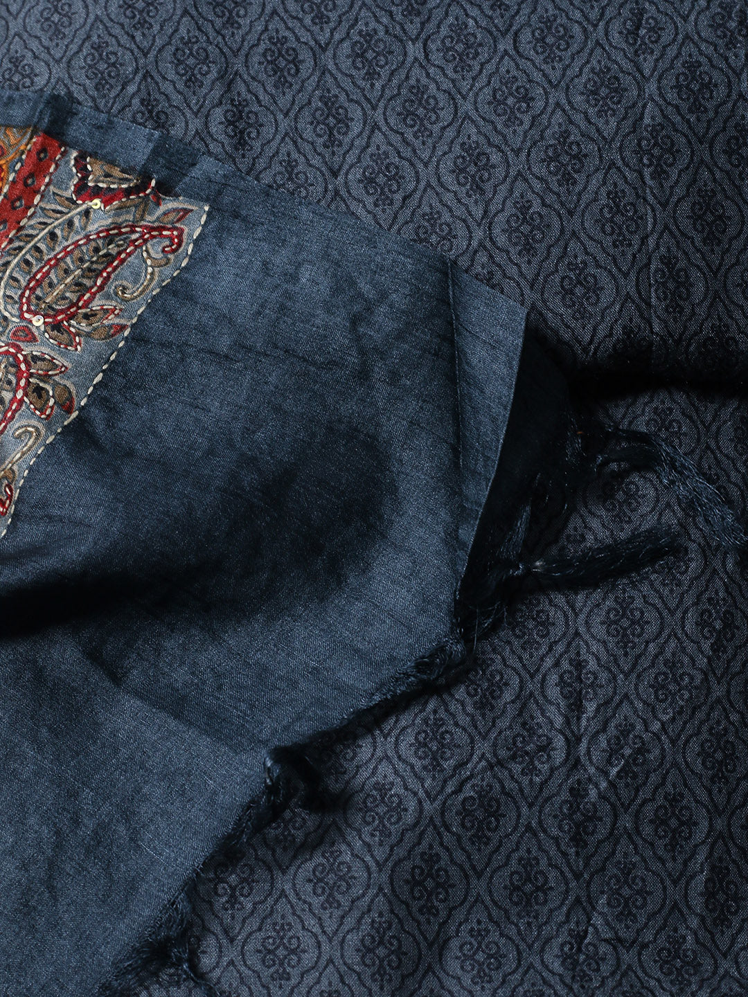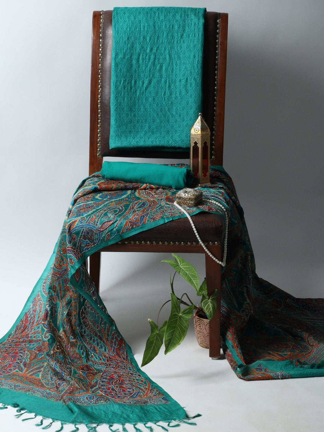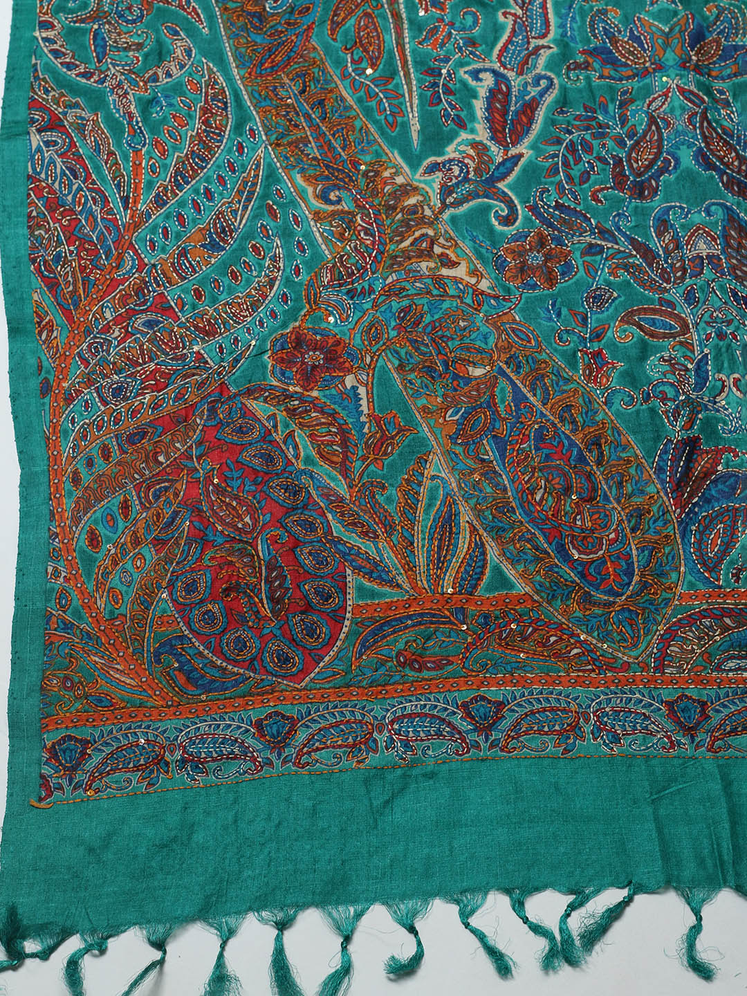 Printed Tussar Unstitched Kurta With Pant & Dupatta
