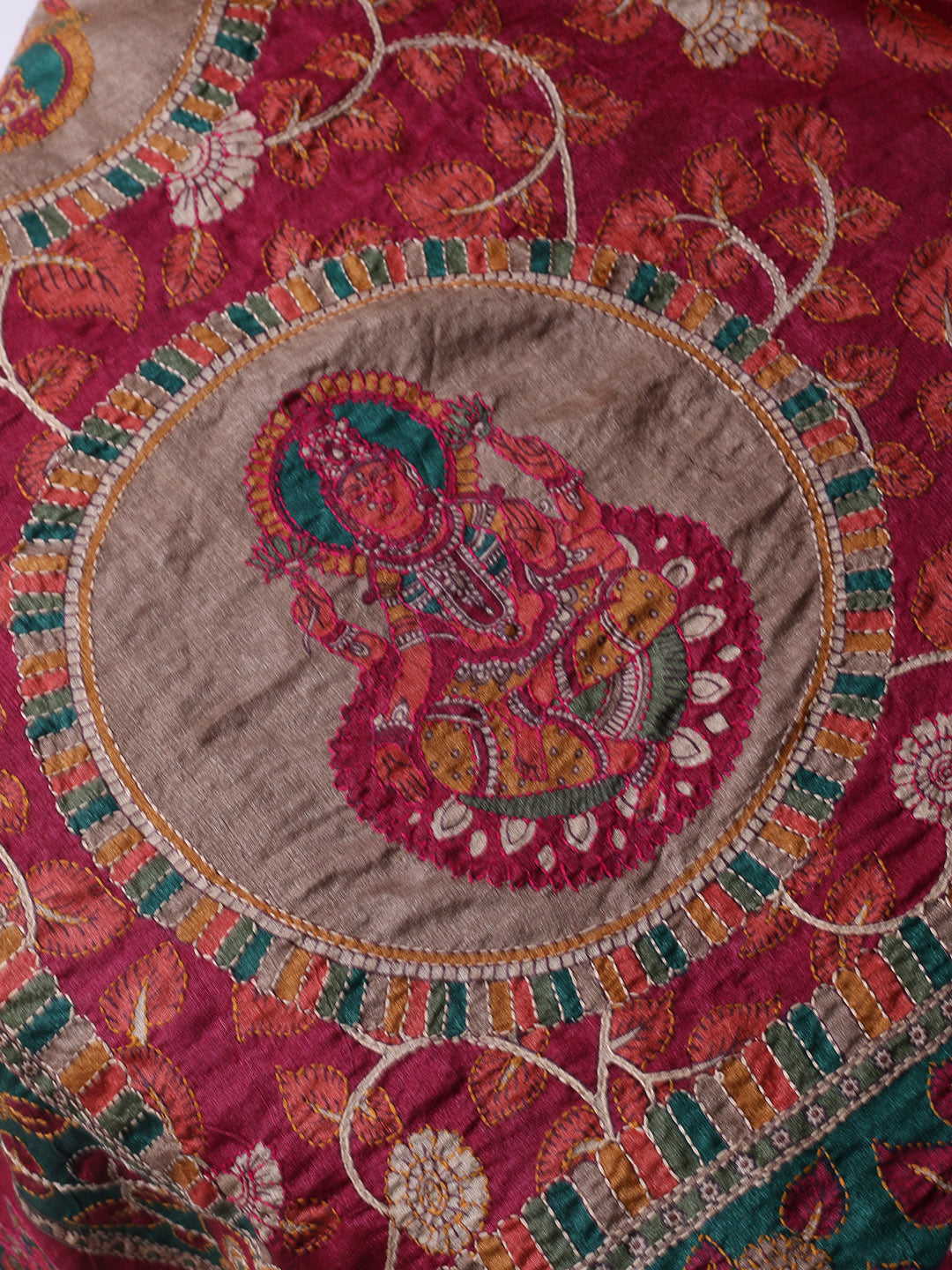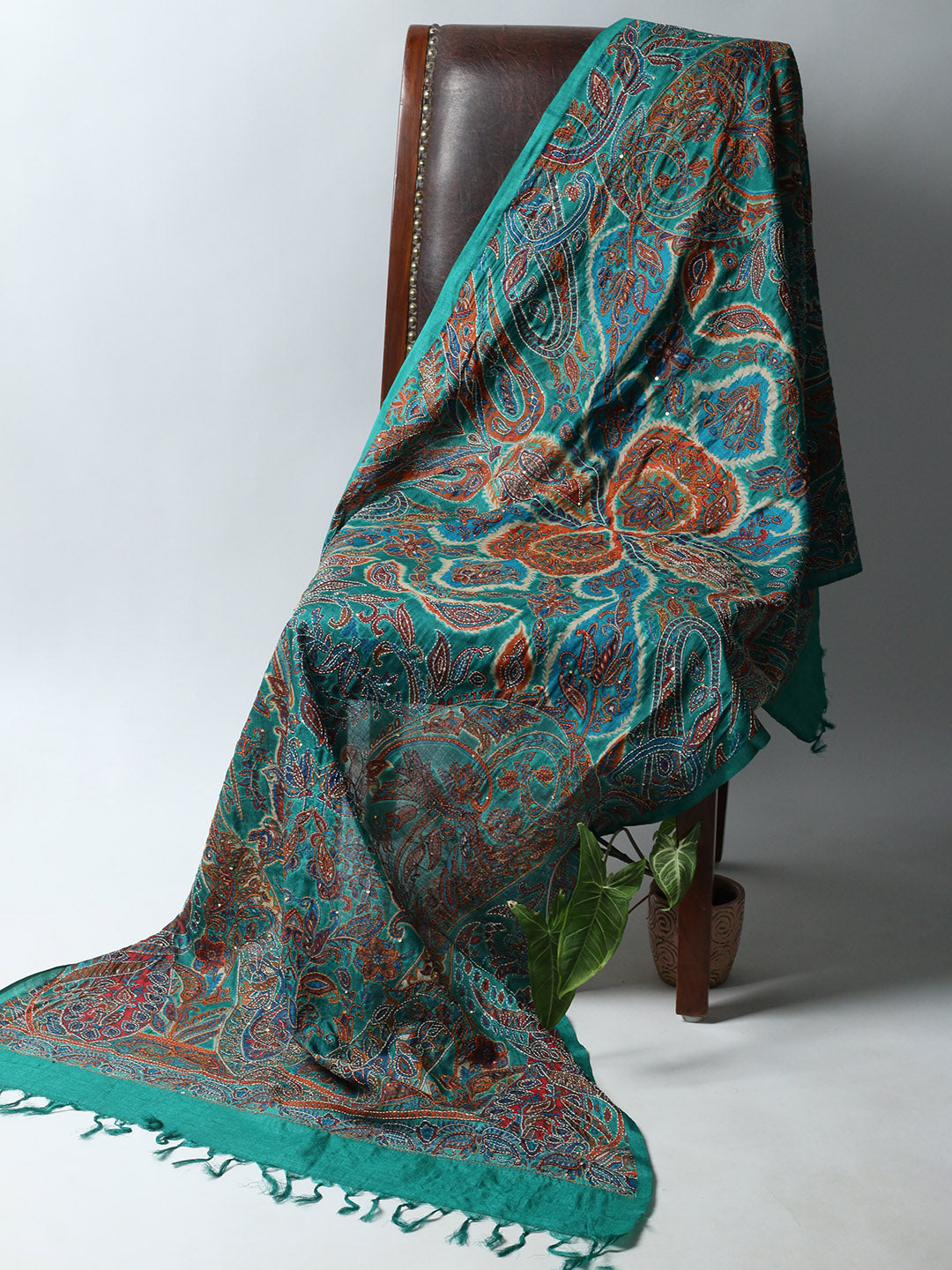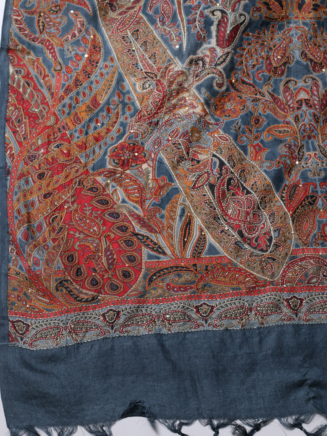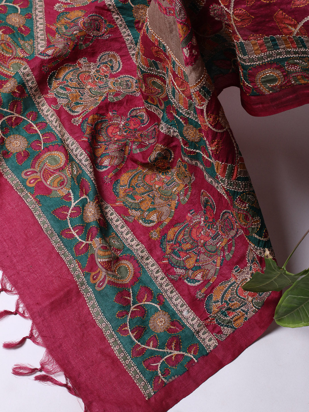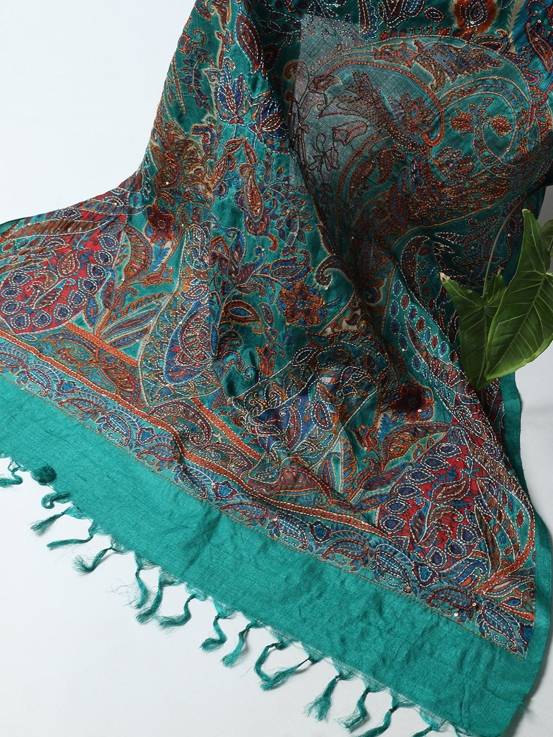 Printed Tussar Unstitched Kurta With Pant & Dupatta