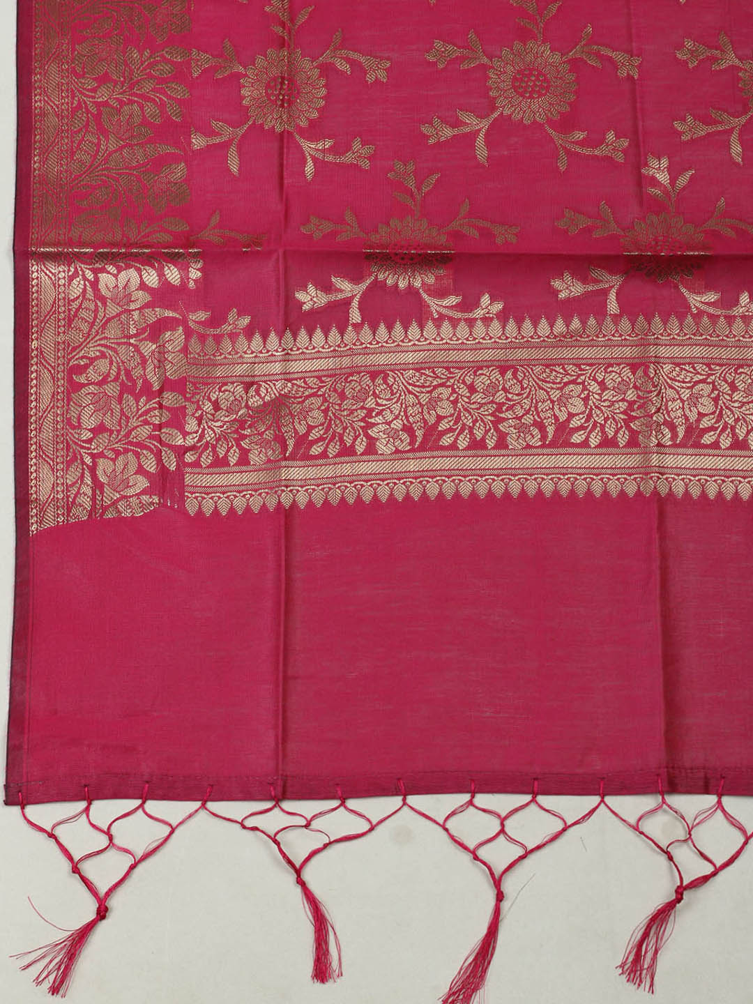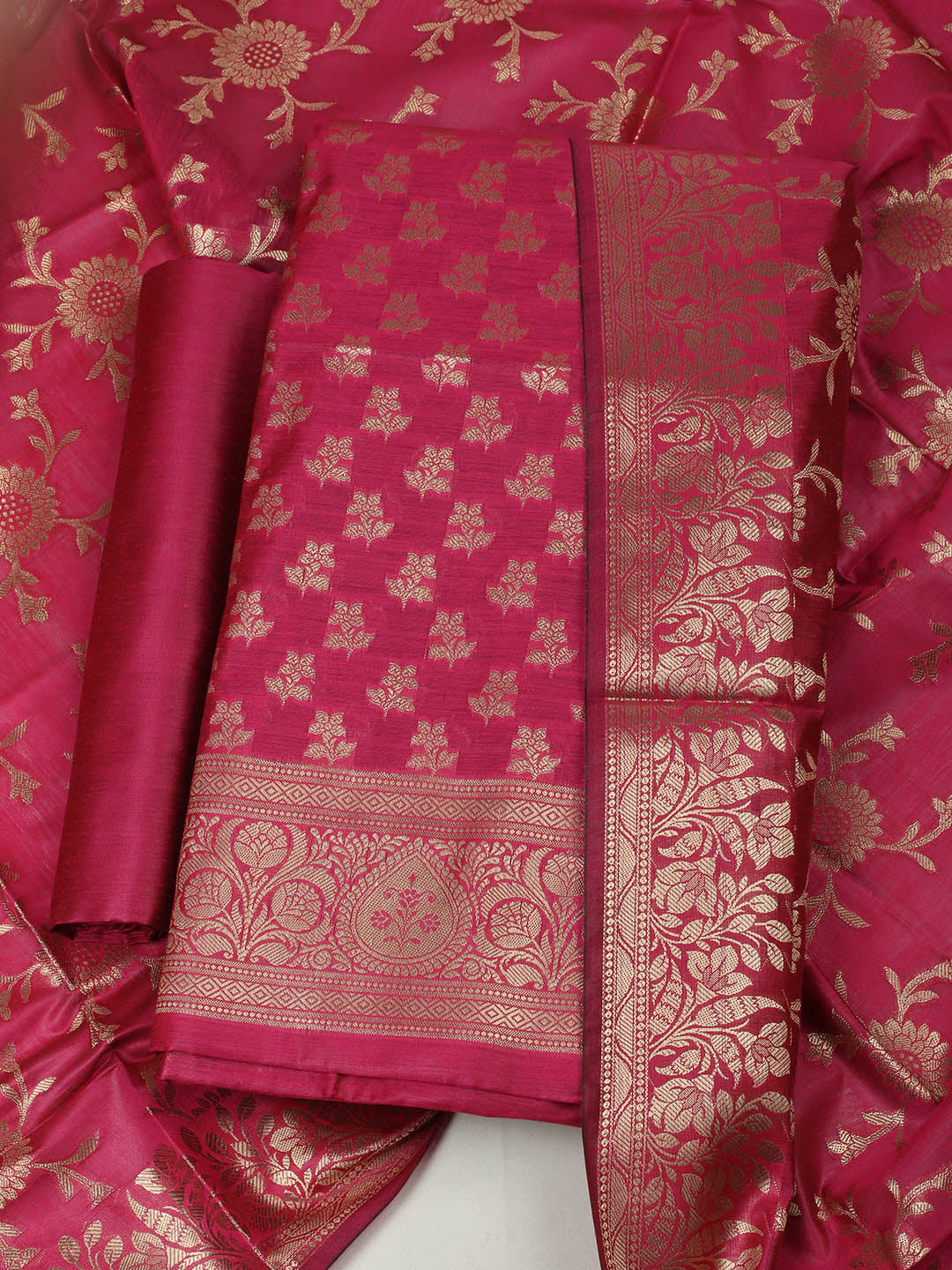 Woven Design Chanderi Unstitched Suit With Pant & Dupatta