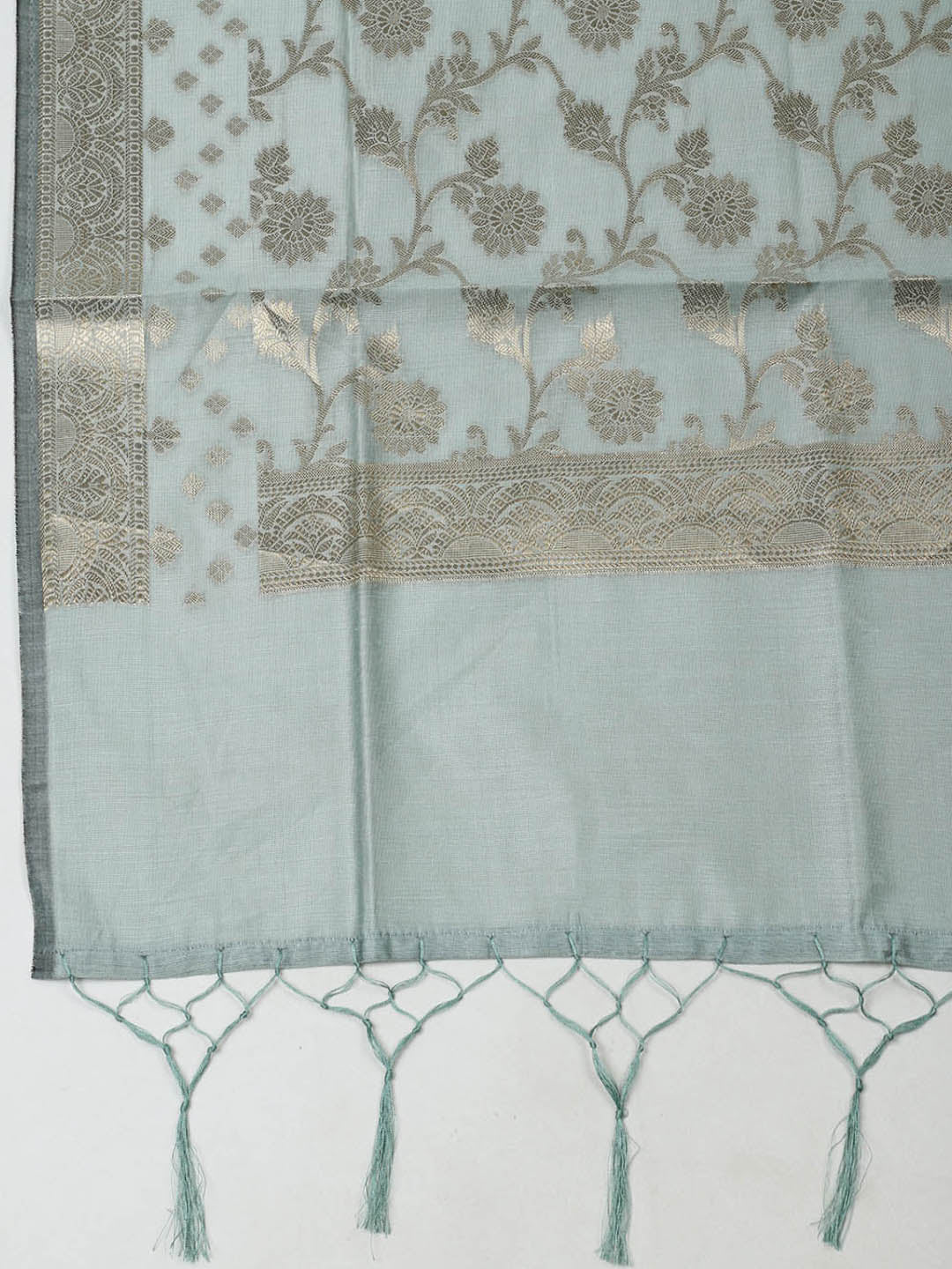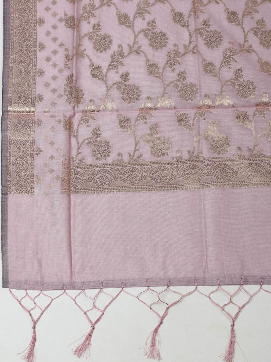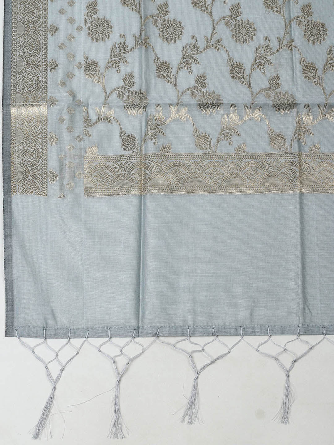 Woven Design Chanderi Unstitched Suit With Pant & Dupatta