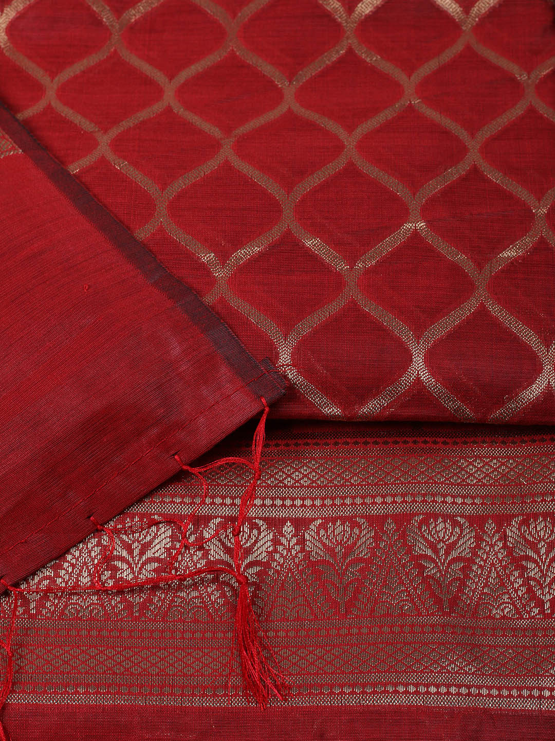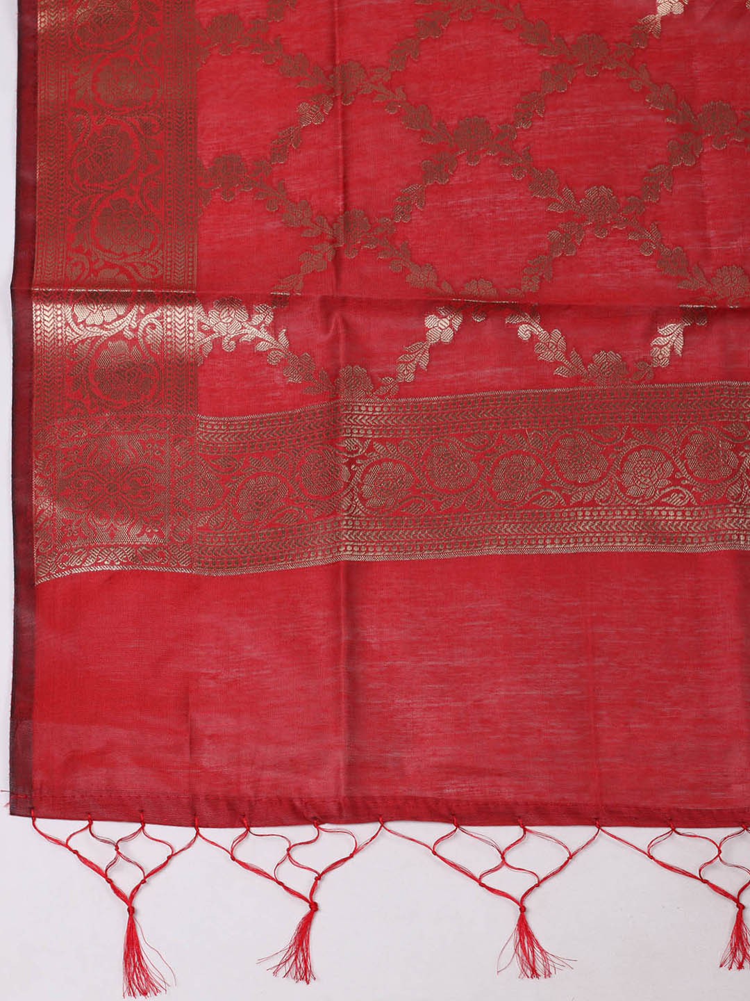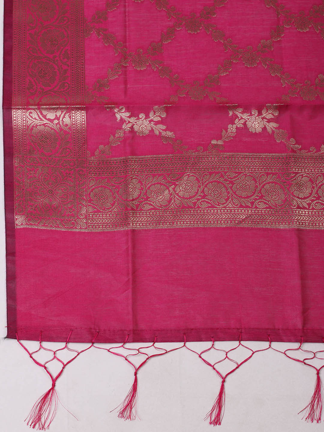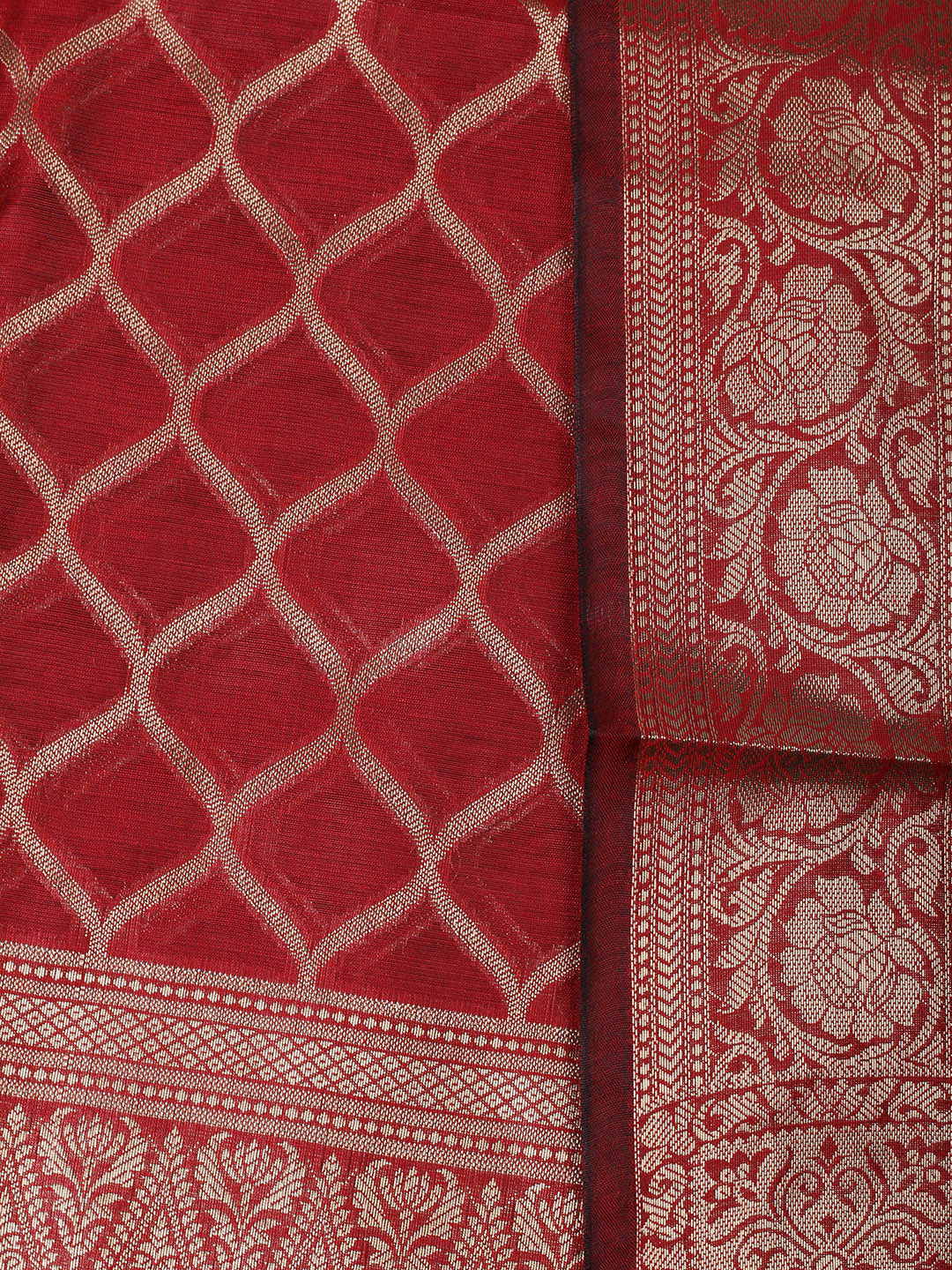 Woven Design Chanderi Unstitched Suit With Pant & Dupatta