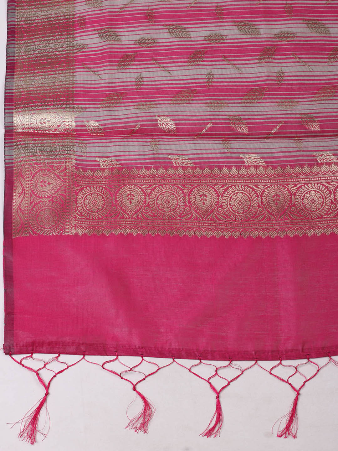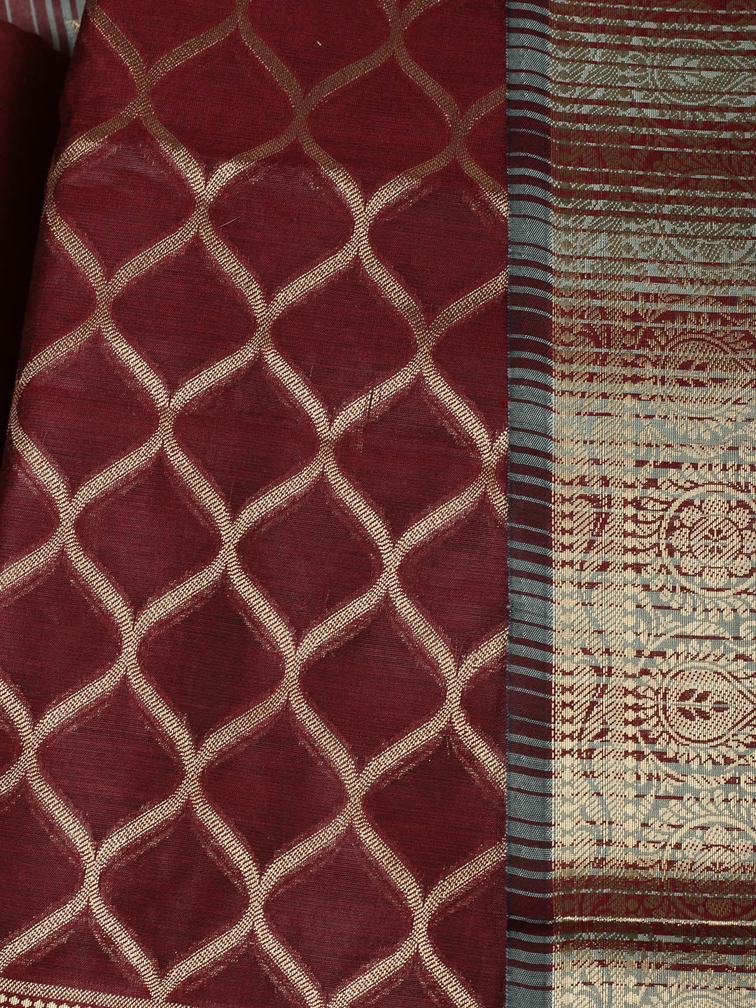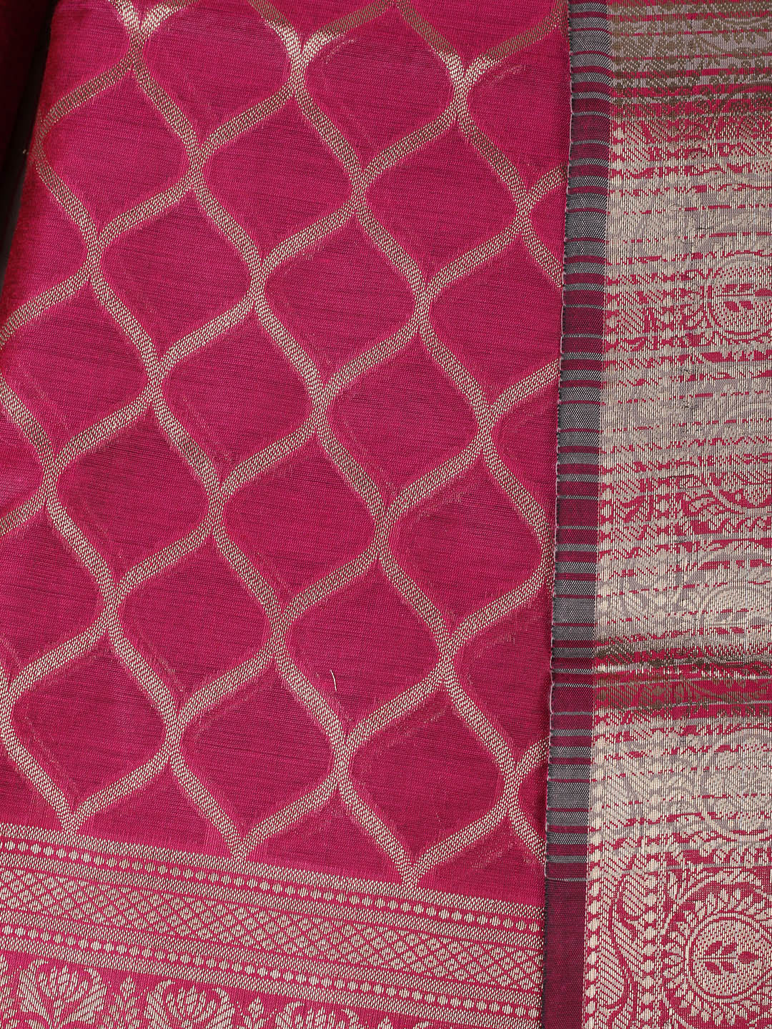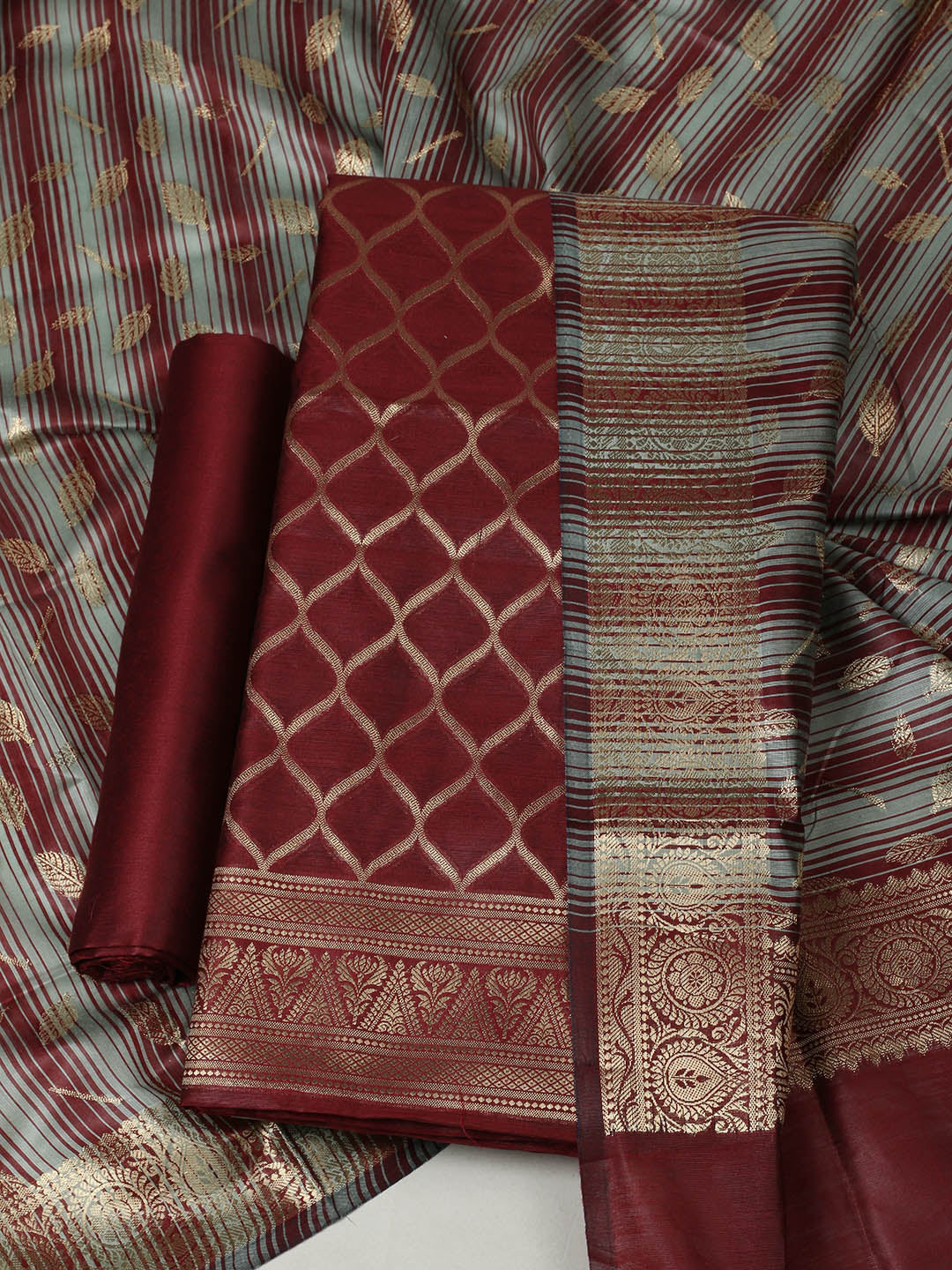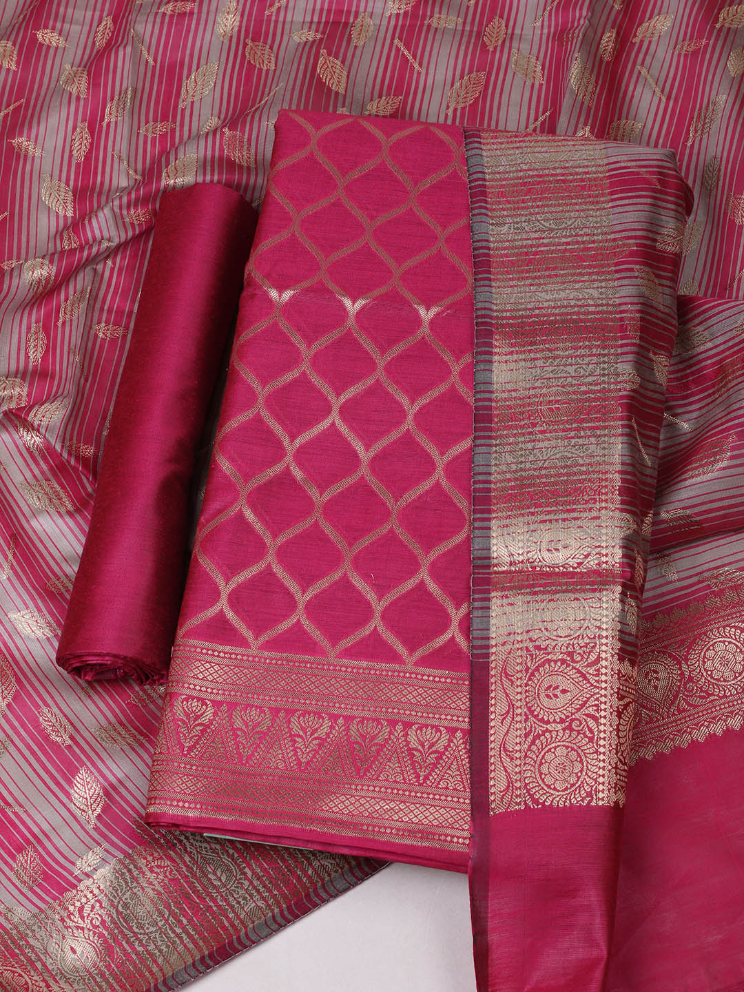 Woven Design Chanderi Unstitched Suit With Pant & Dupatta