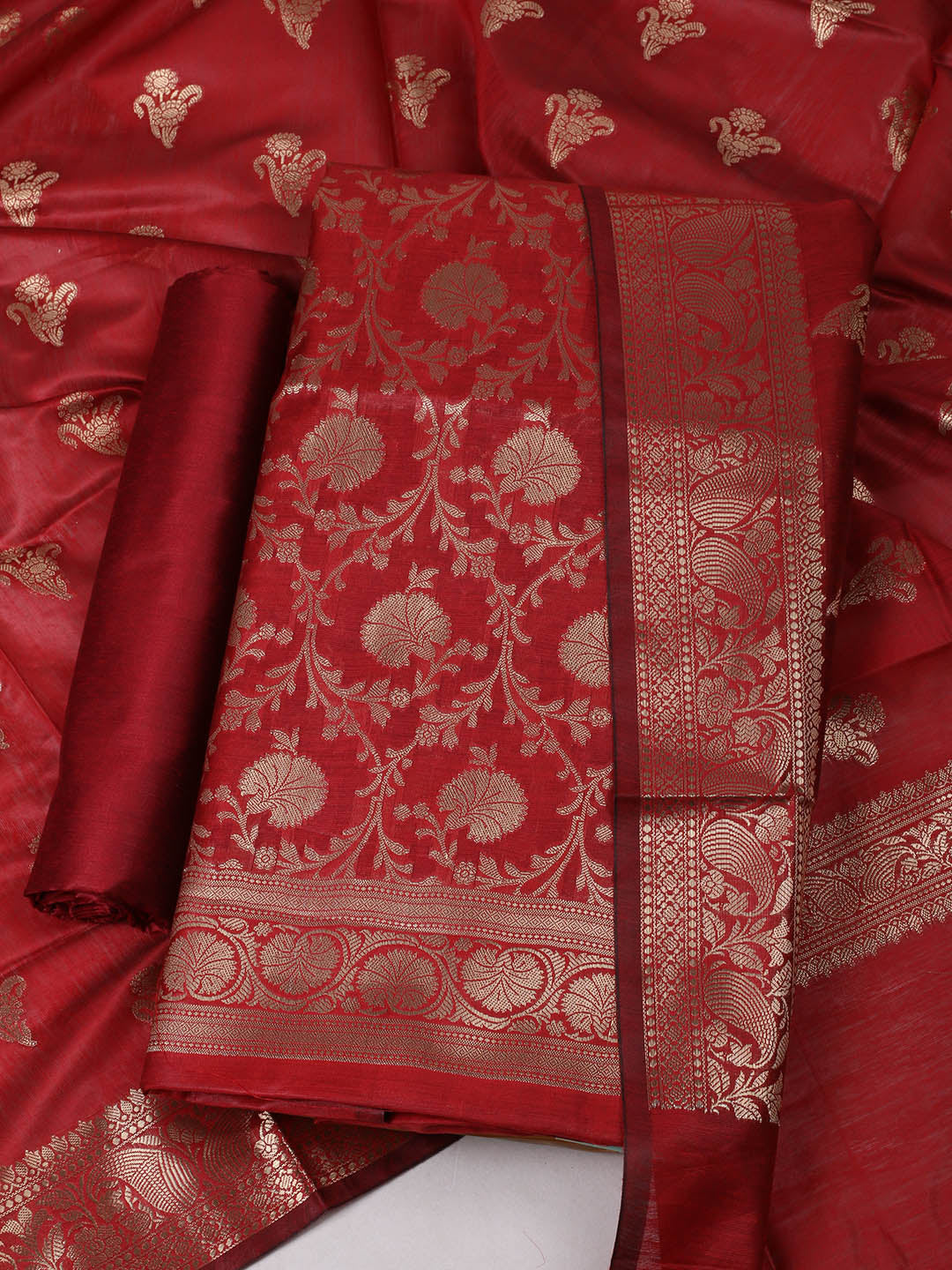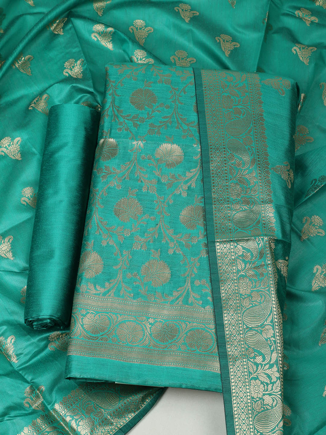 Woven Design Chanderi Unstitched Suit With Pant & Dupatta