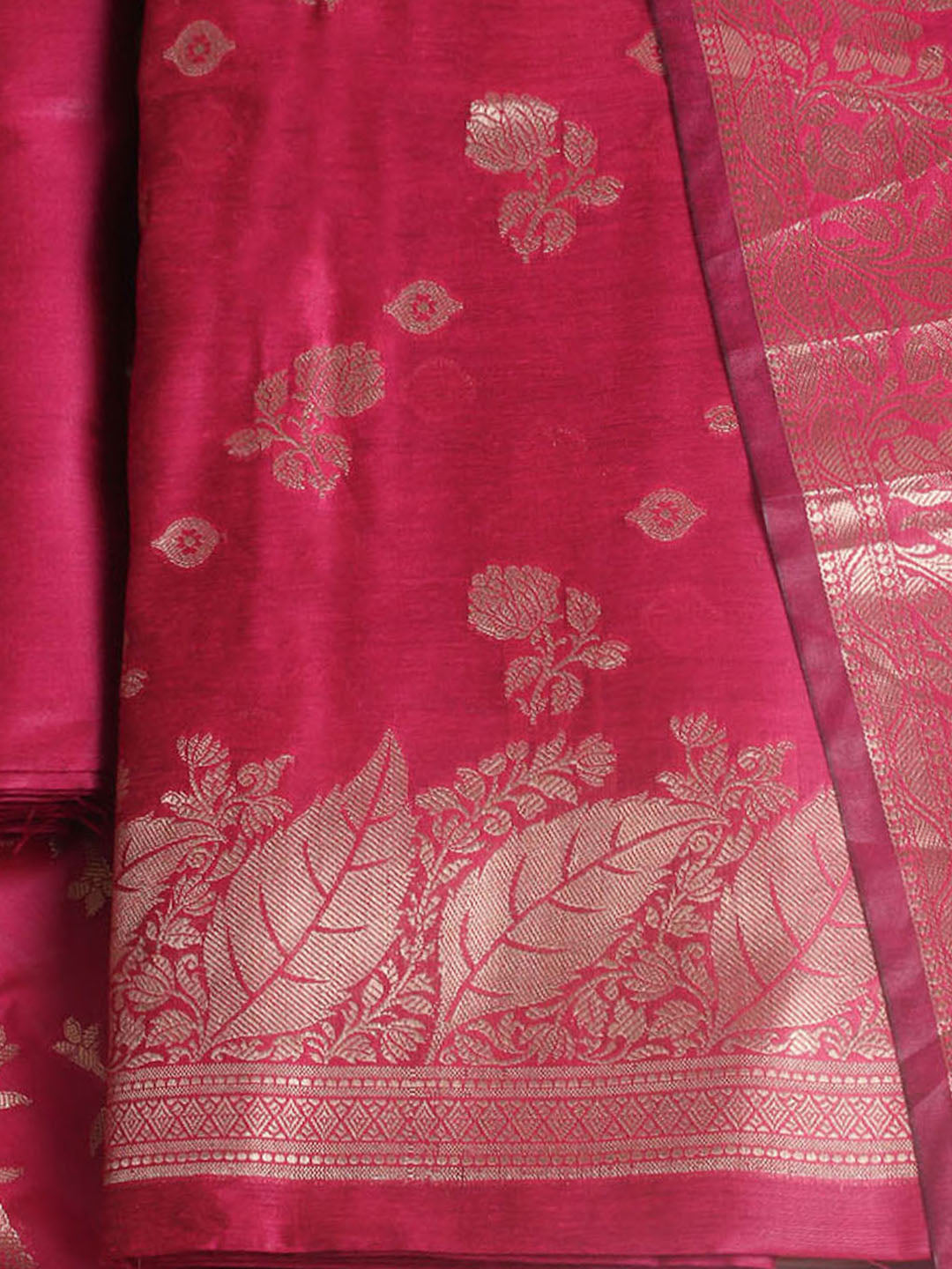 Woven Design Chanderi Unstitched Suit With Pant & Dupatta
