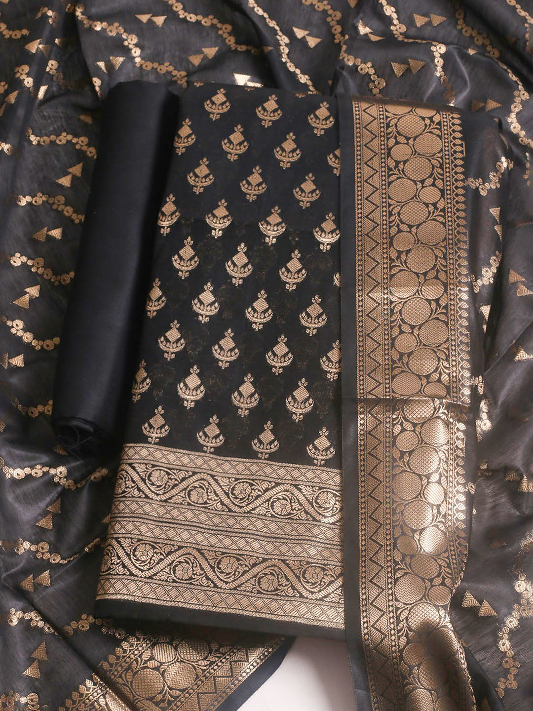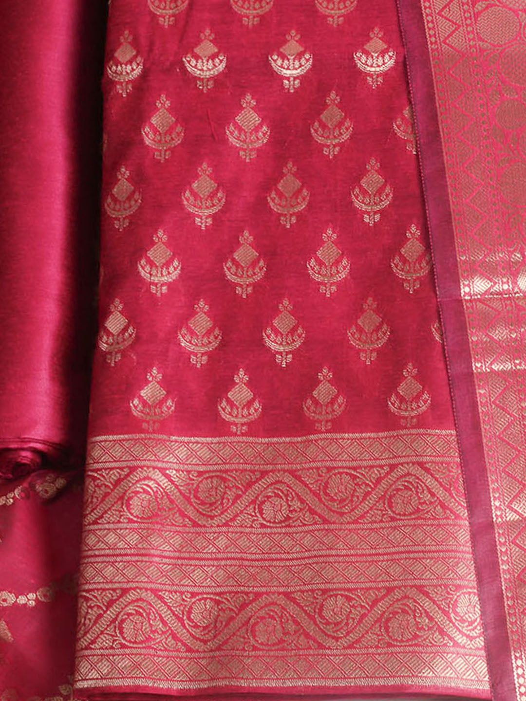 Woven Design Chanderi Unstitched Suit With Pant & Dupatta