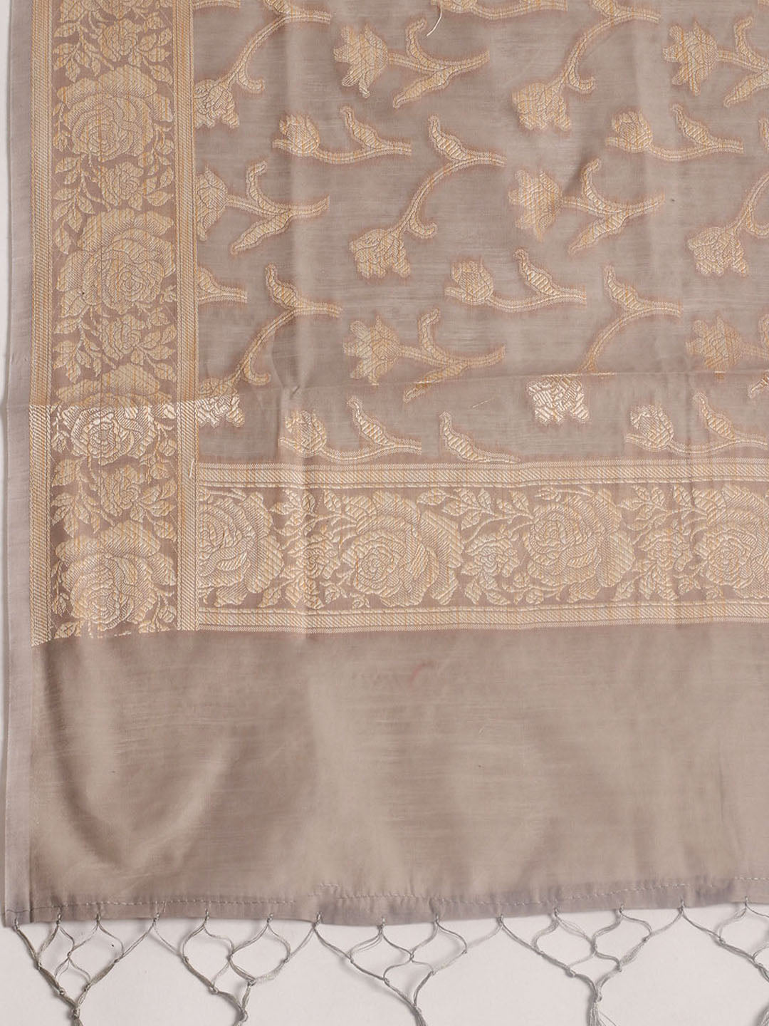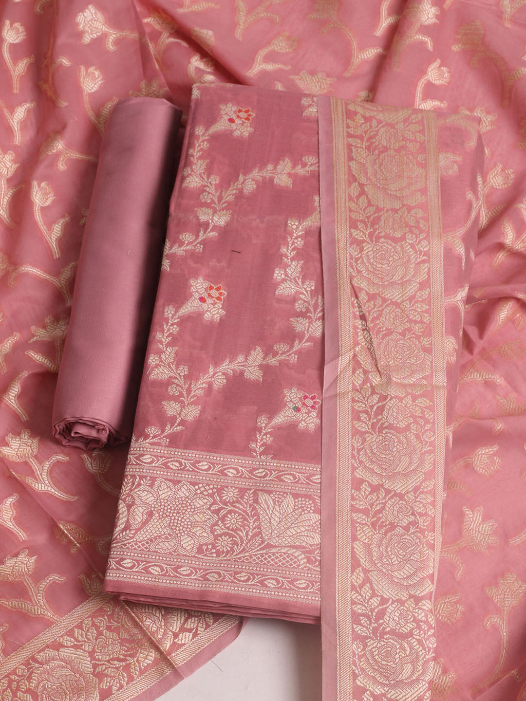 Woven Design Chanderi Unstitched Suit With Pant & Dupatta