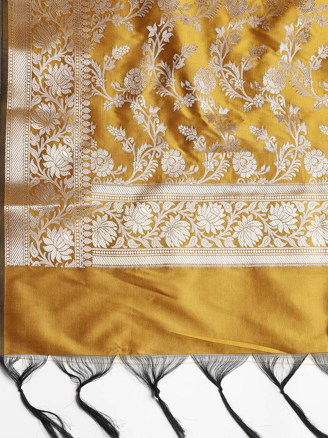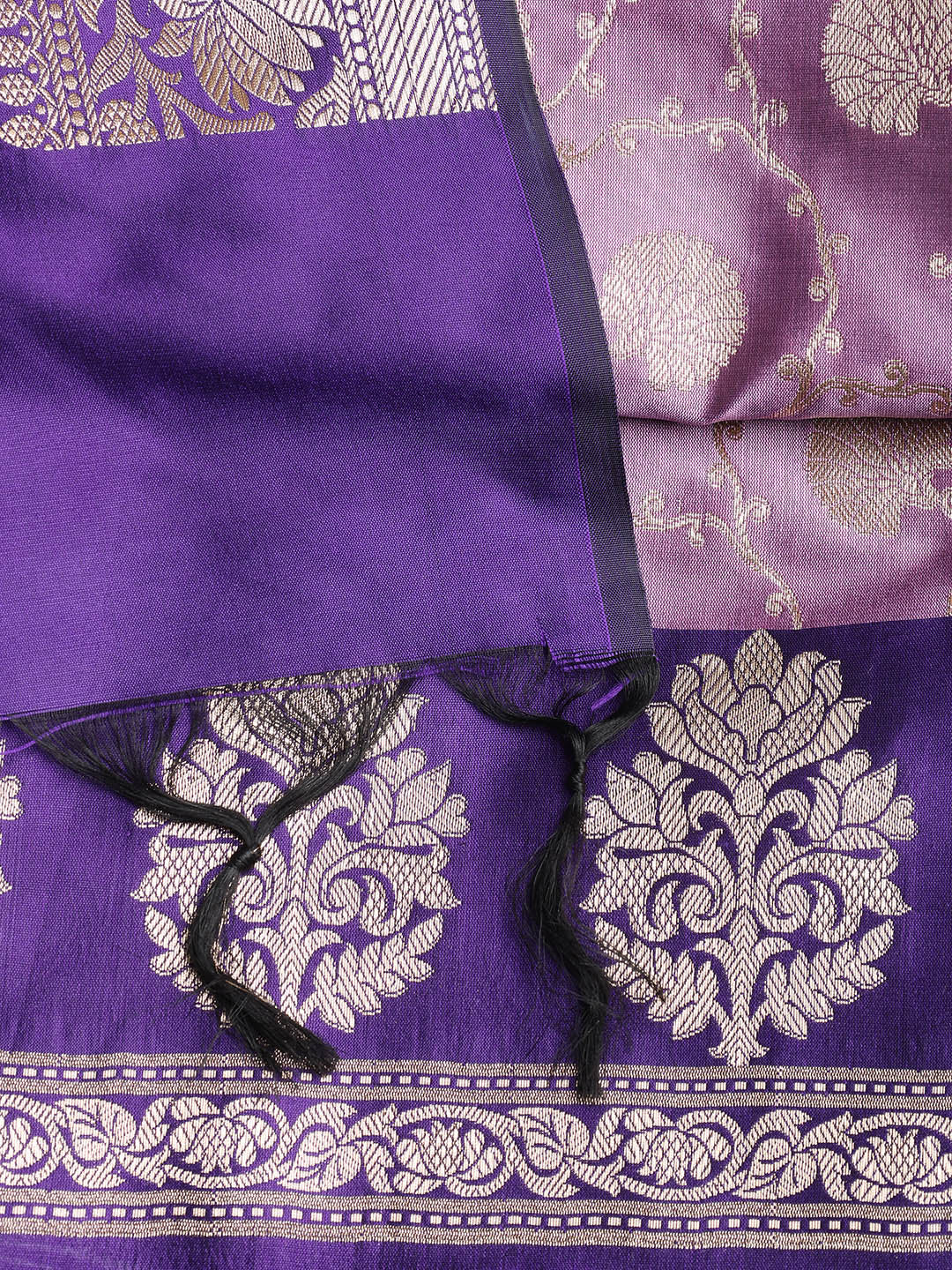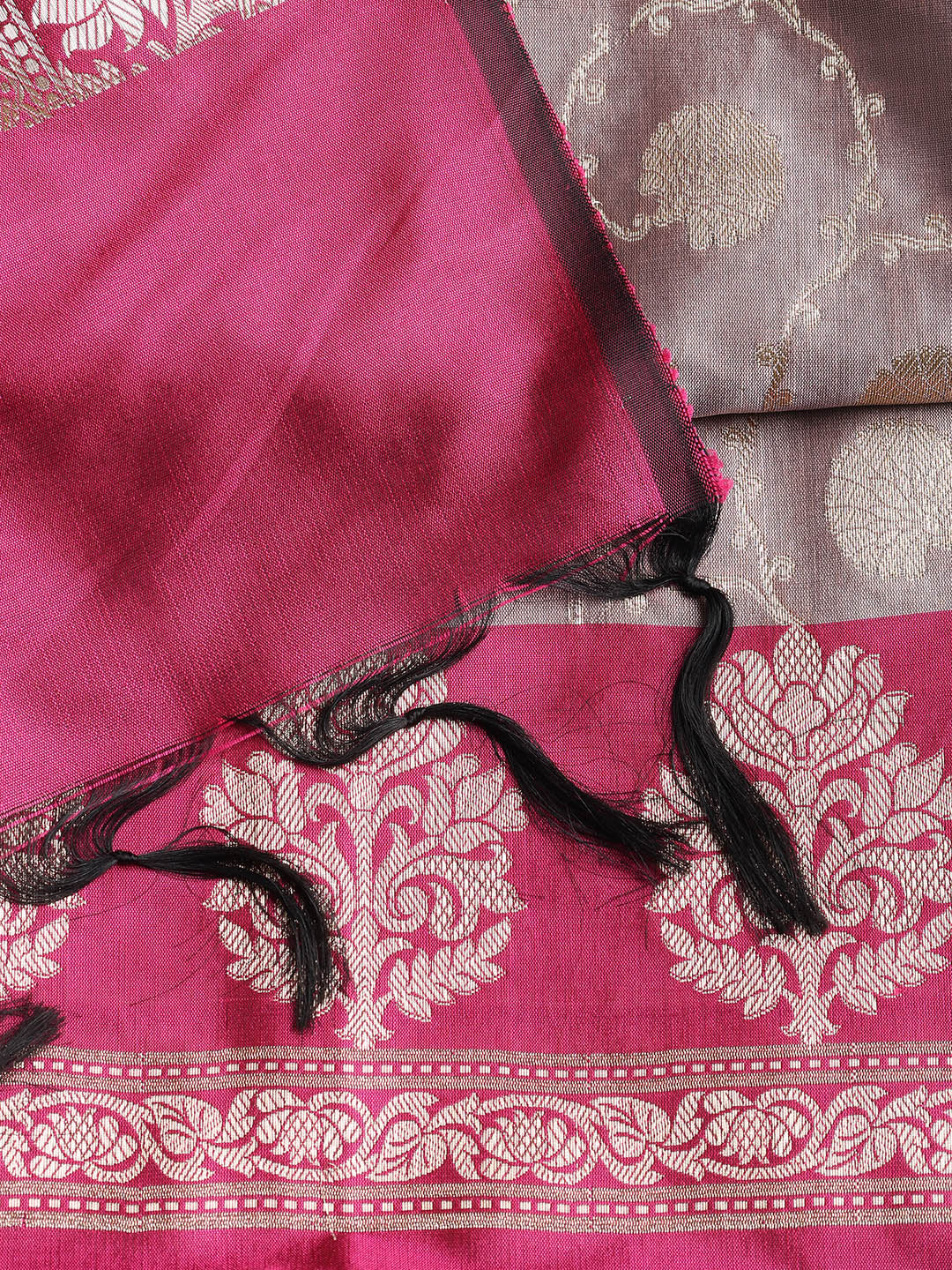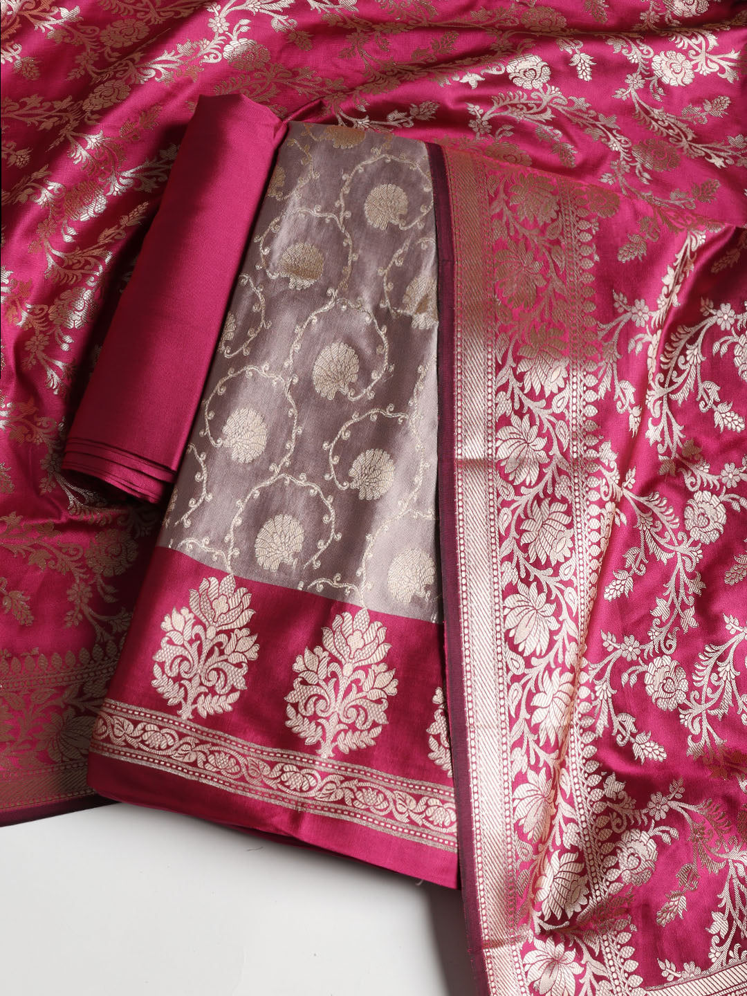 Woven Banarasi Chanderi Unstitched Suit With Dupatta