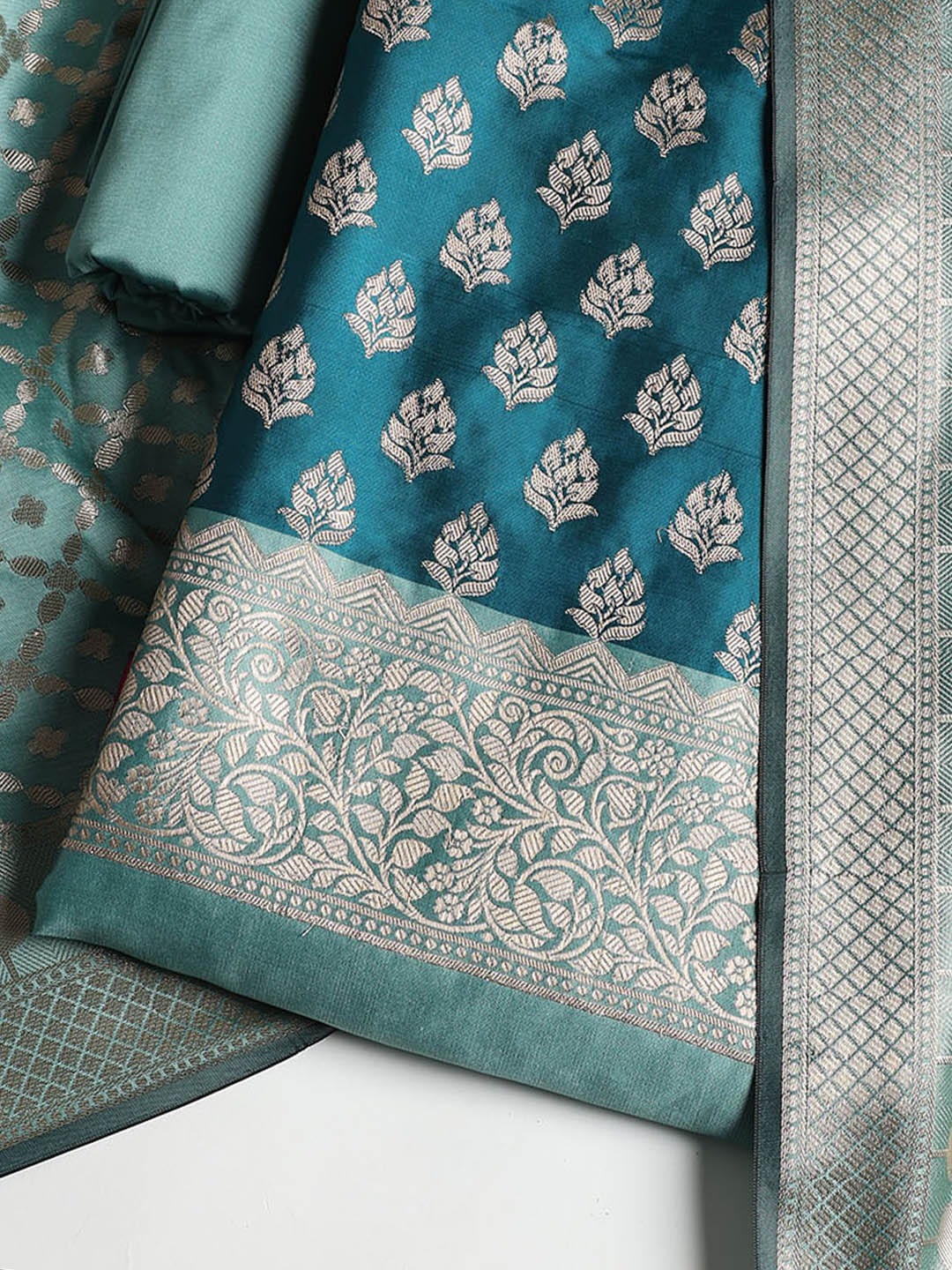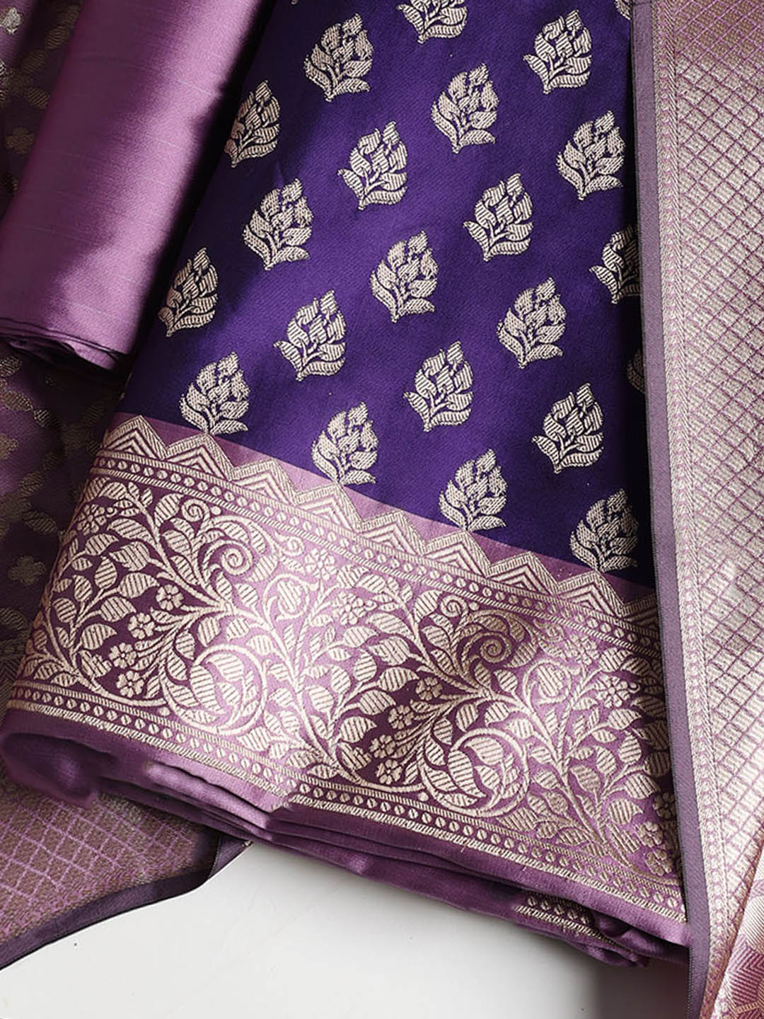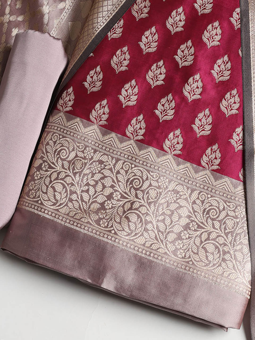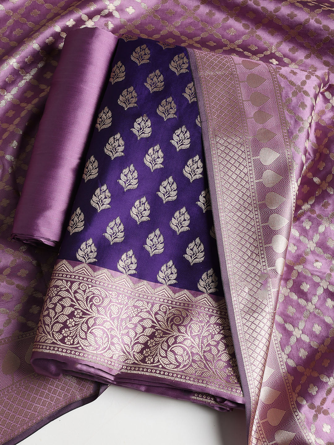 Woven Banarasi Chanderi Unstitched Suit With Dupatta