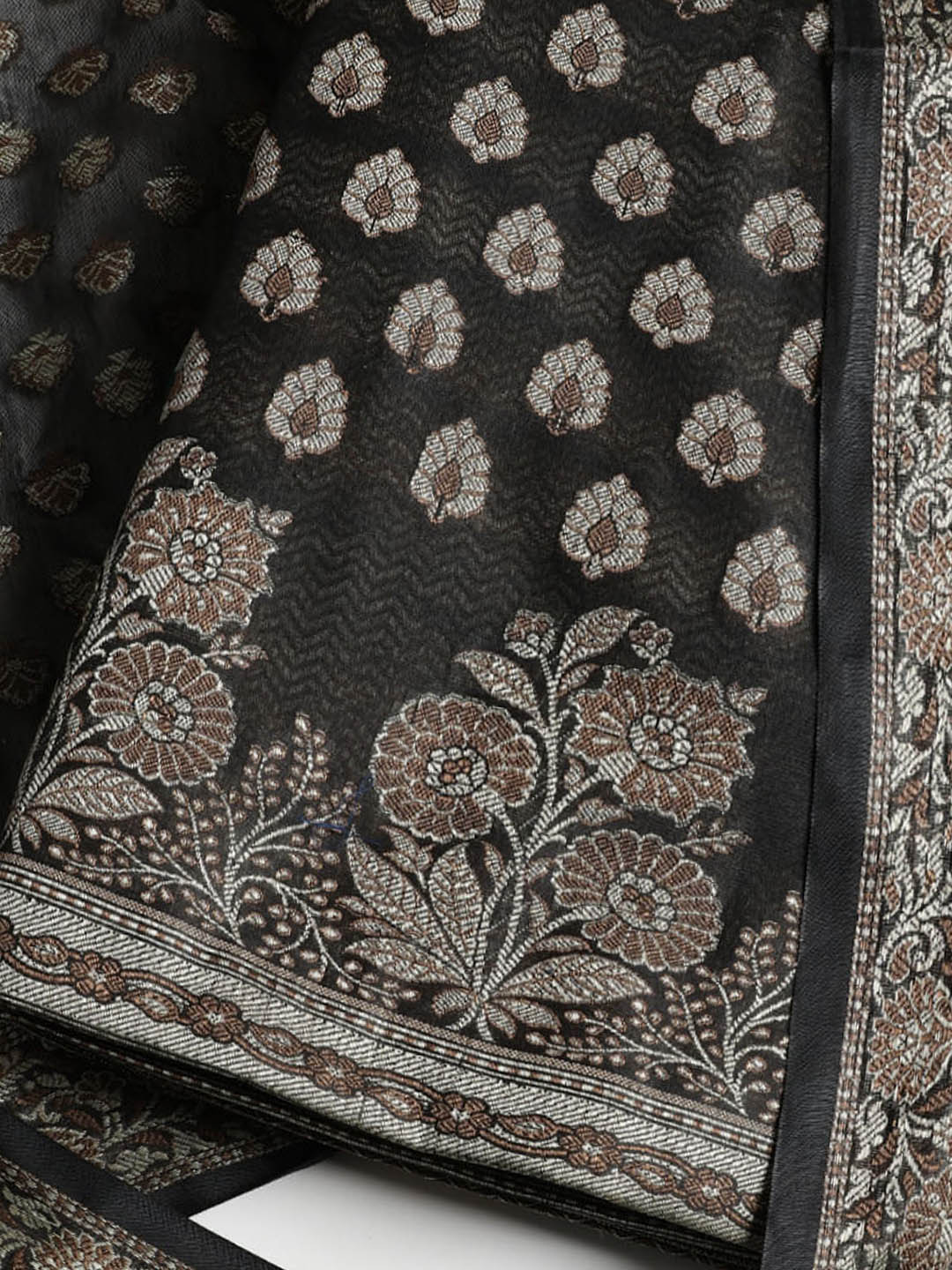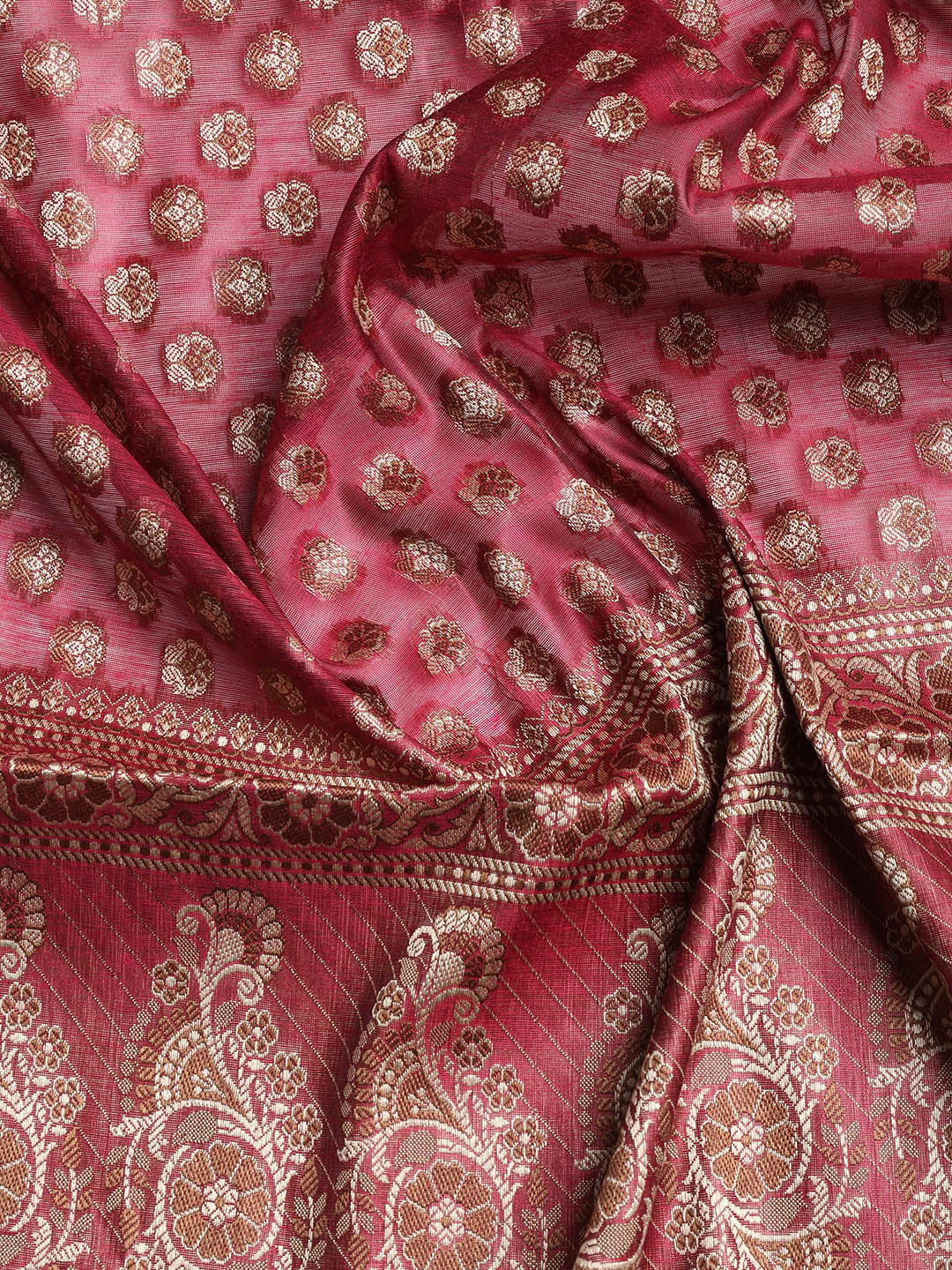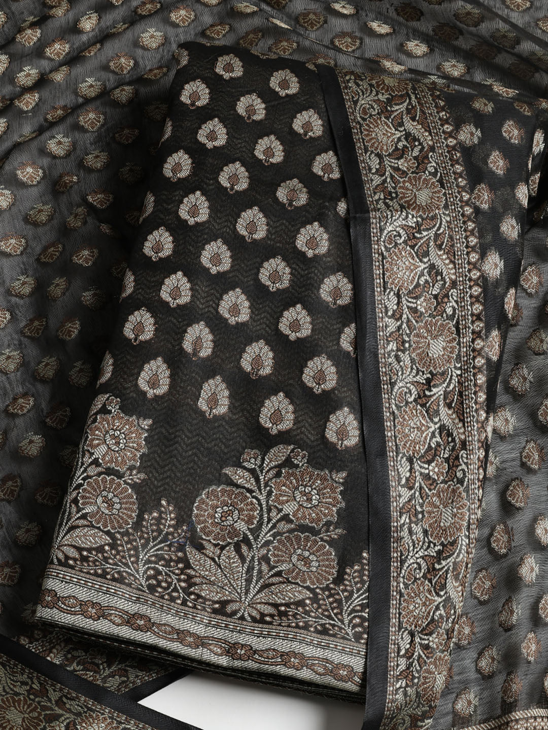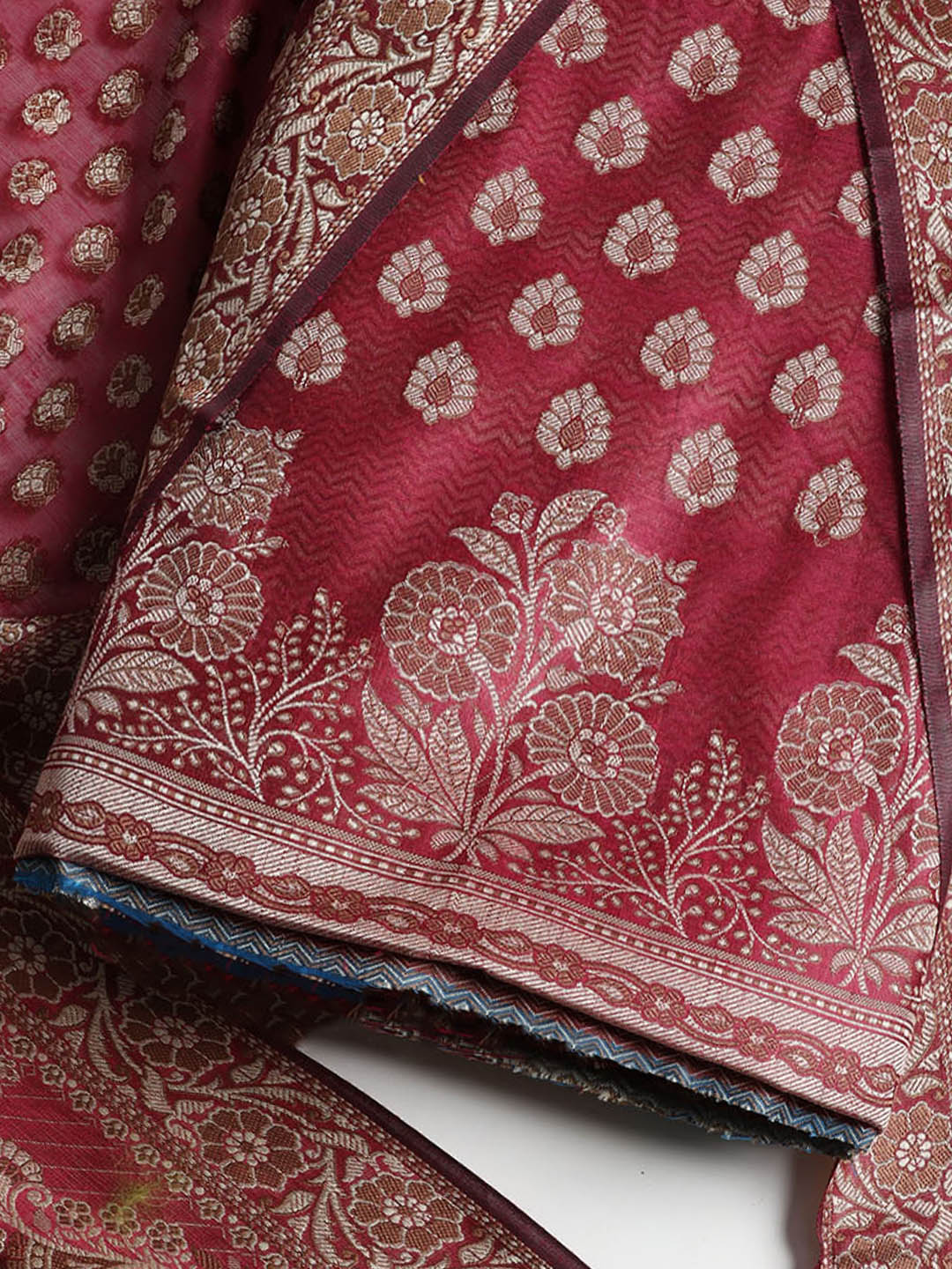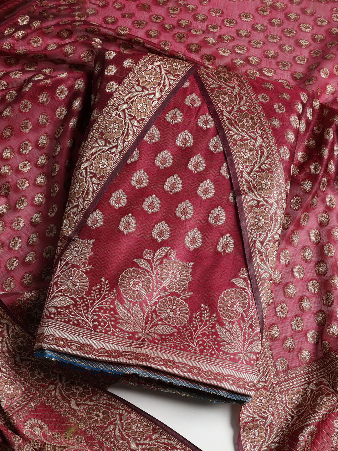 Woven Banarasi Chanderi Unstitched Suit With Dupatta