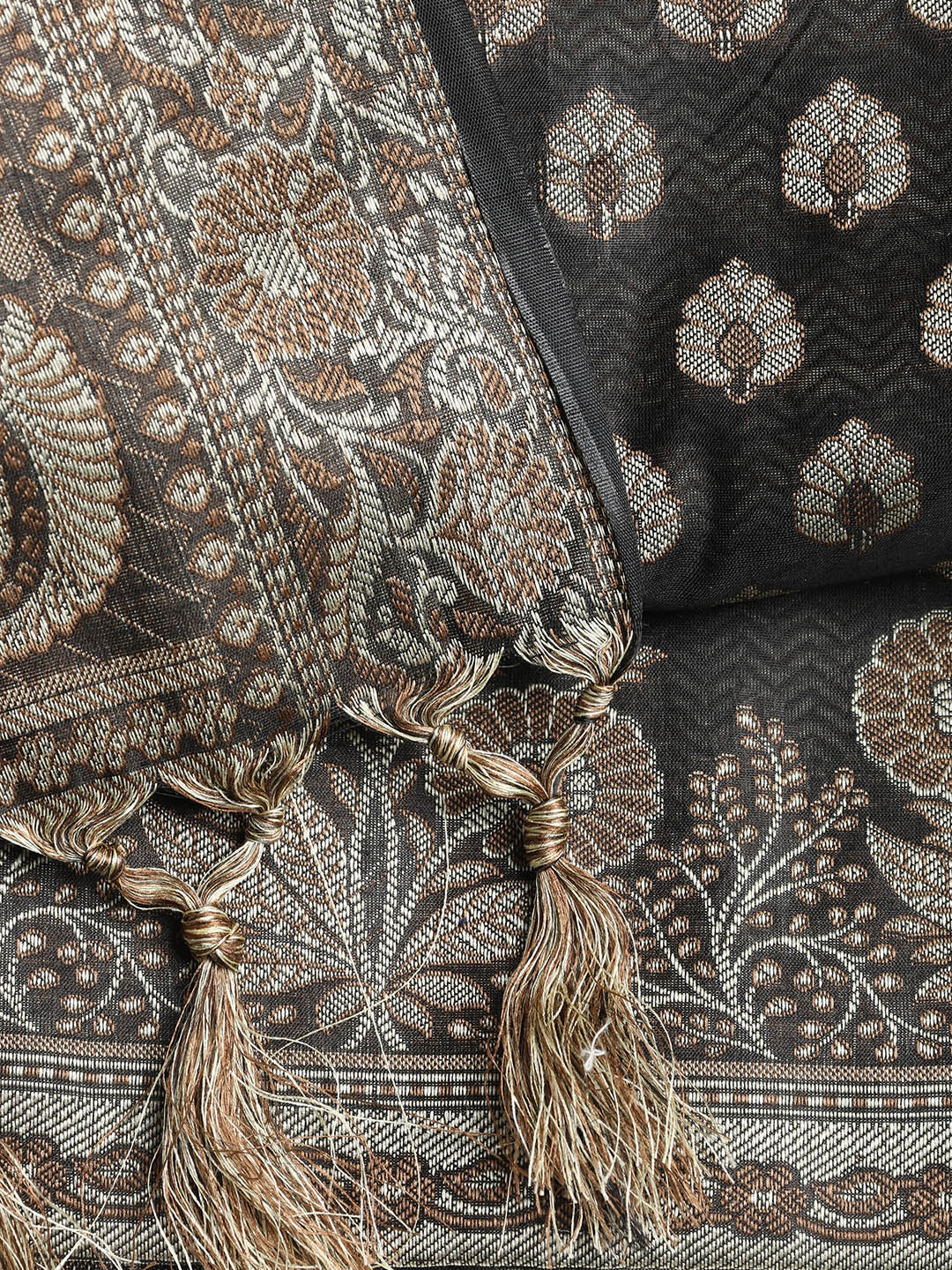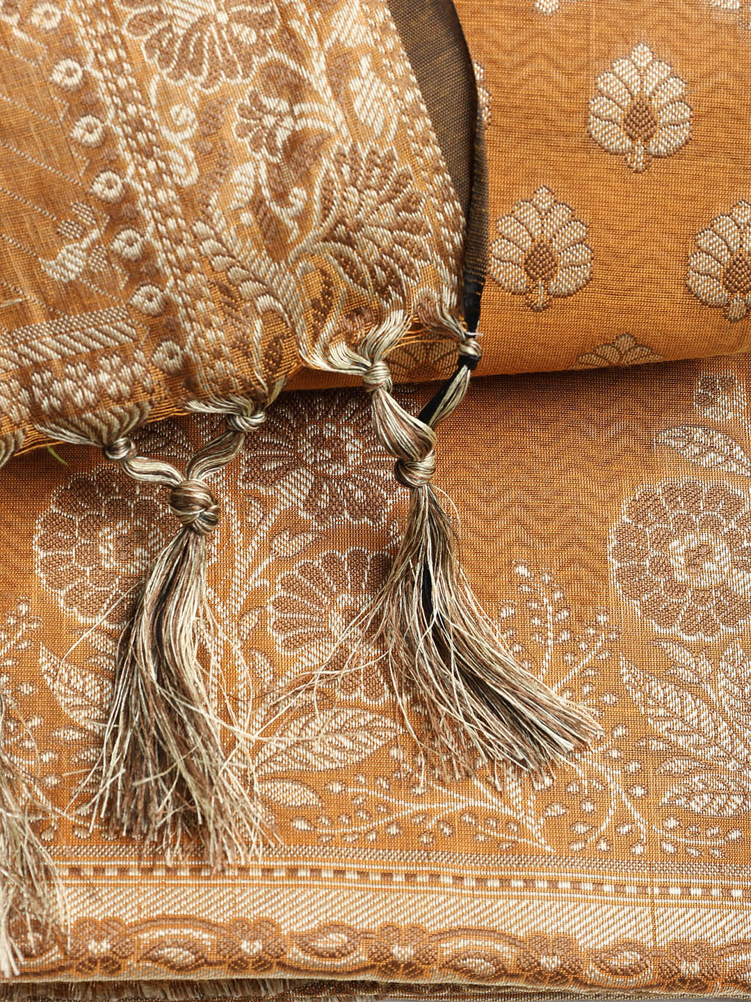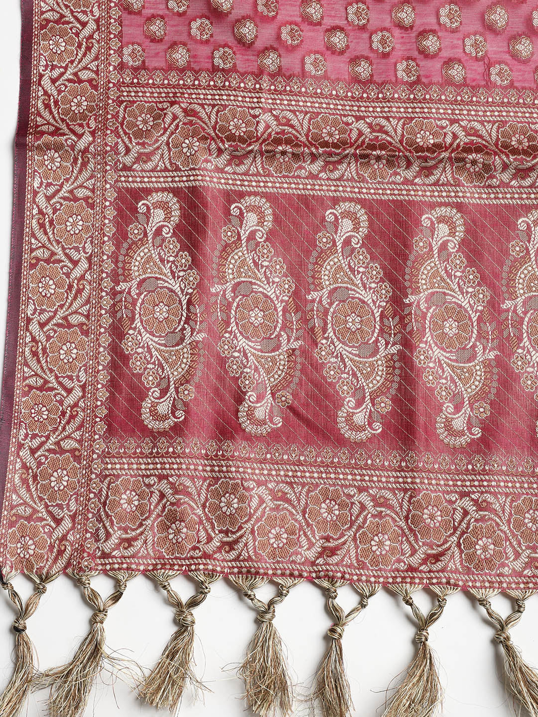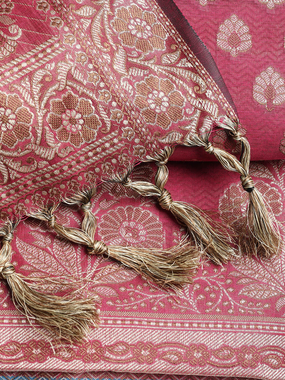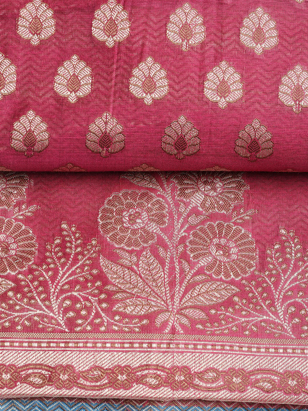 Woven Banarasi Chanderi Unstitched Suit With Dupatta