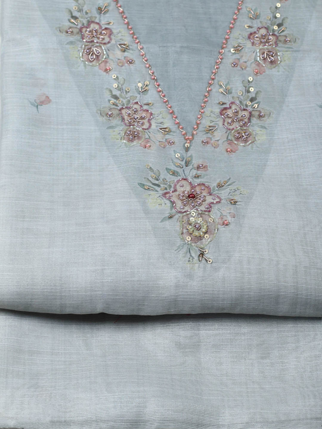 Embroidered Tissue Grey Unstitched Suit With Pant & Dupatta