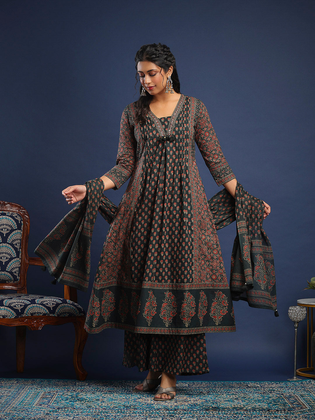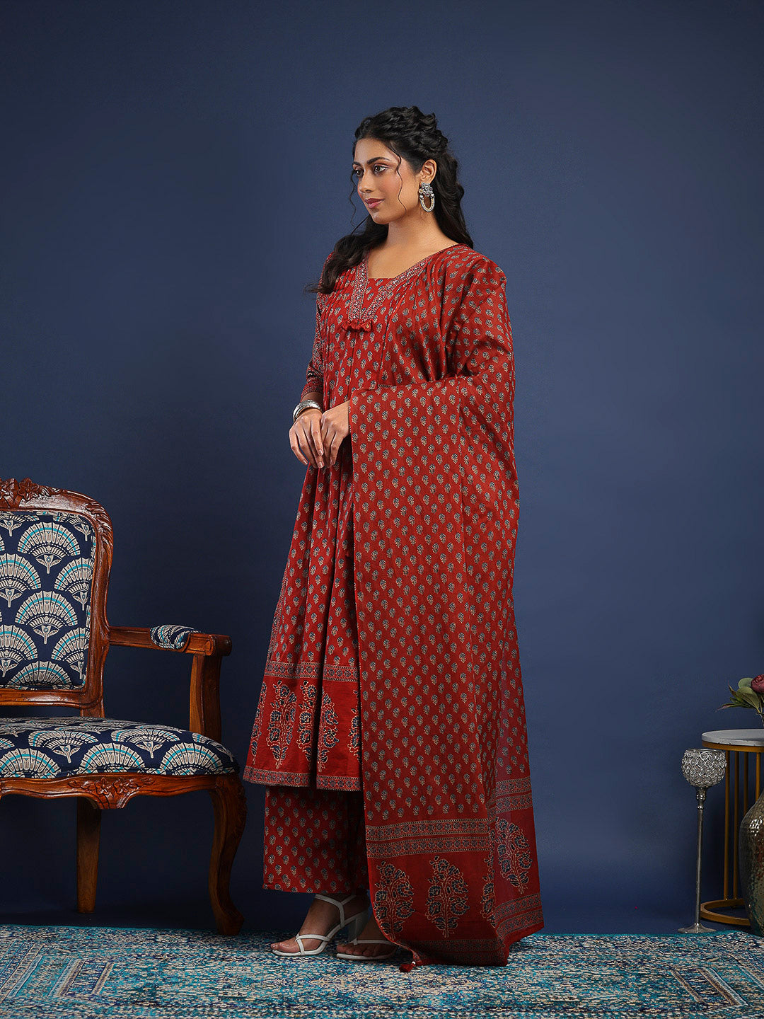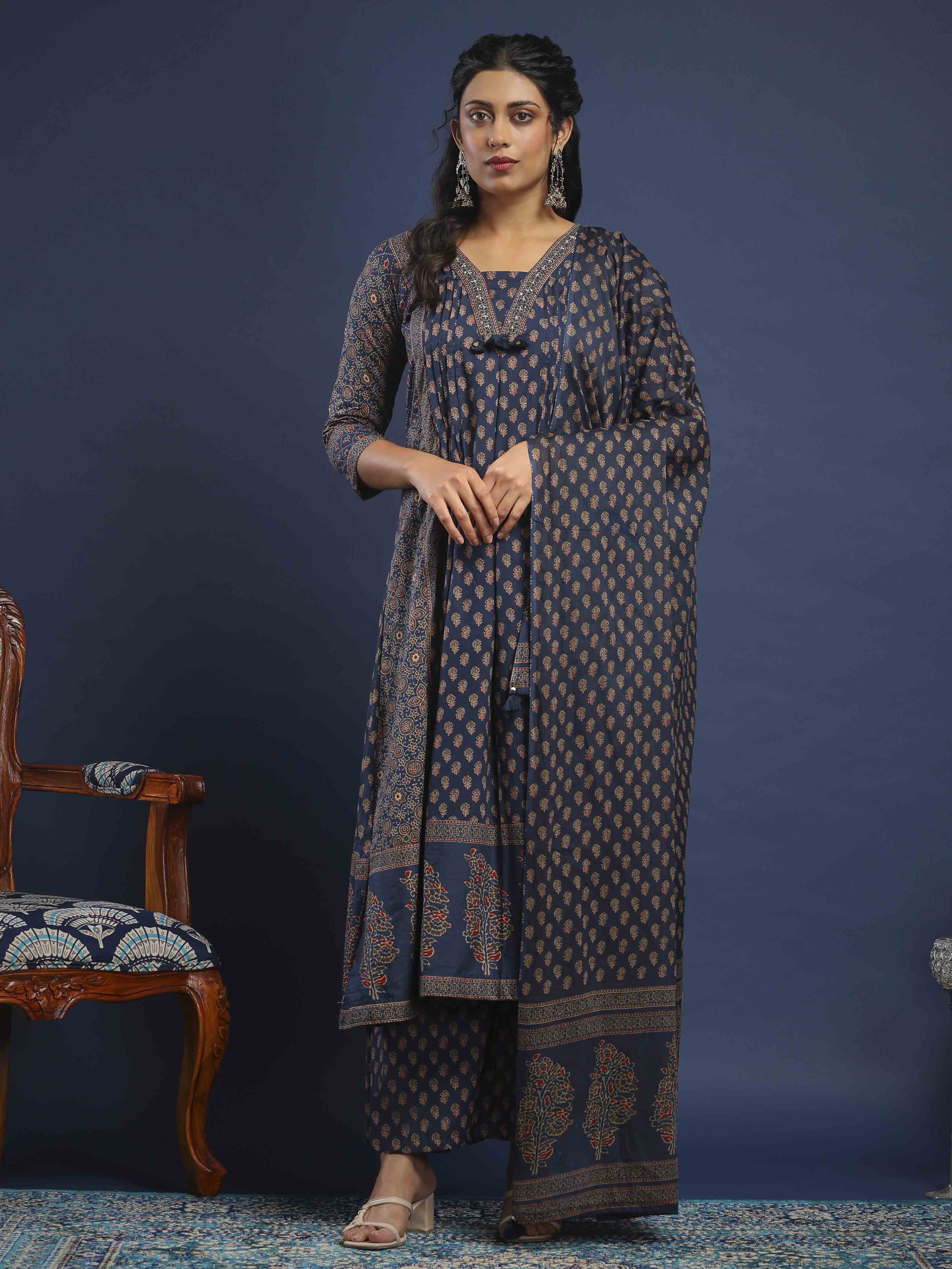 Printed Cotton Kurta With Pant & Dupatta