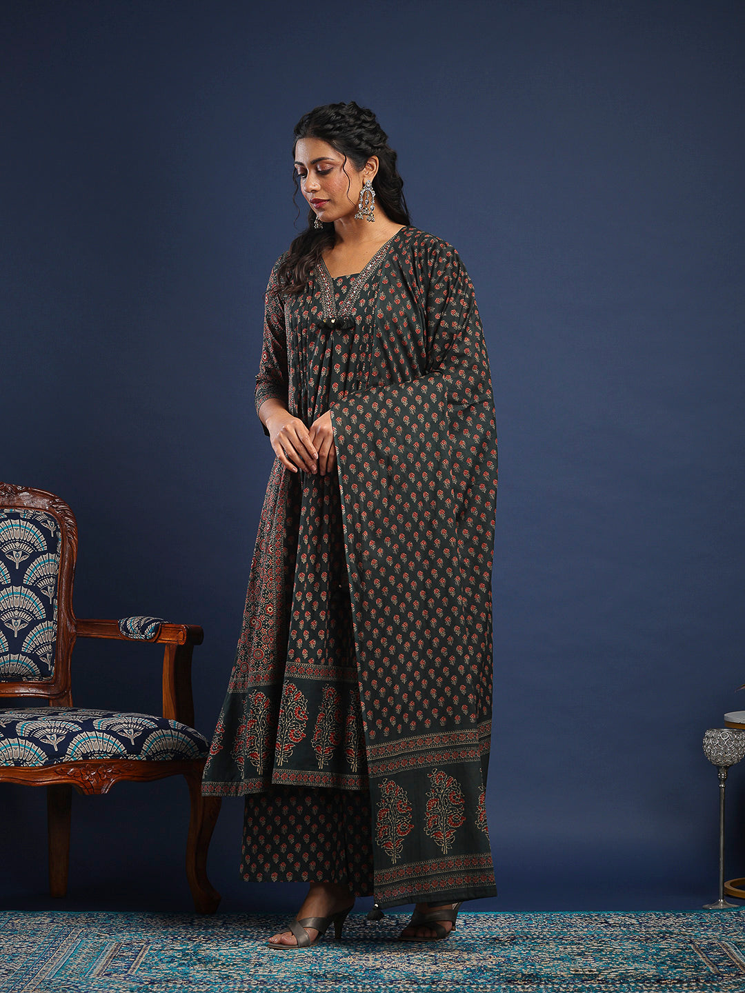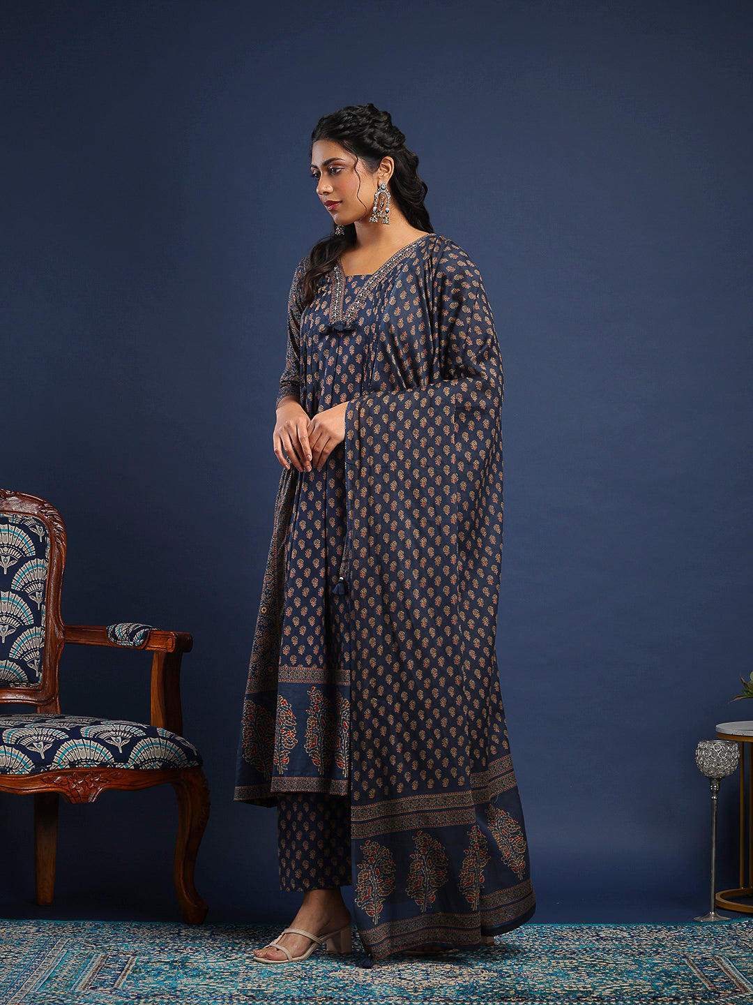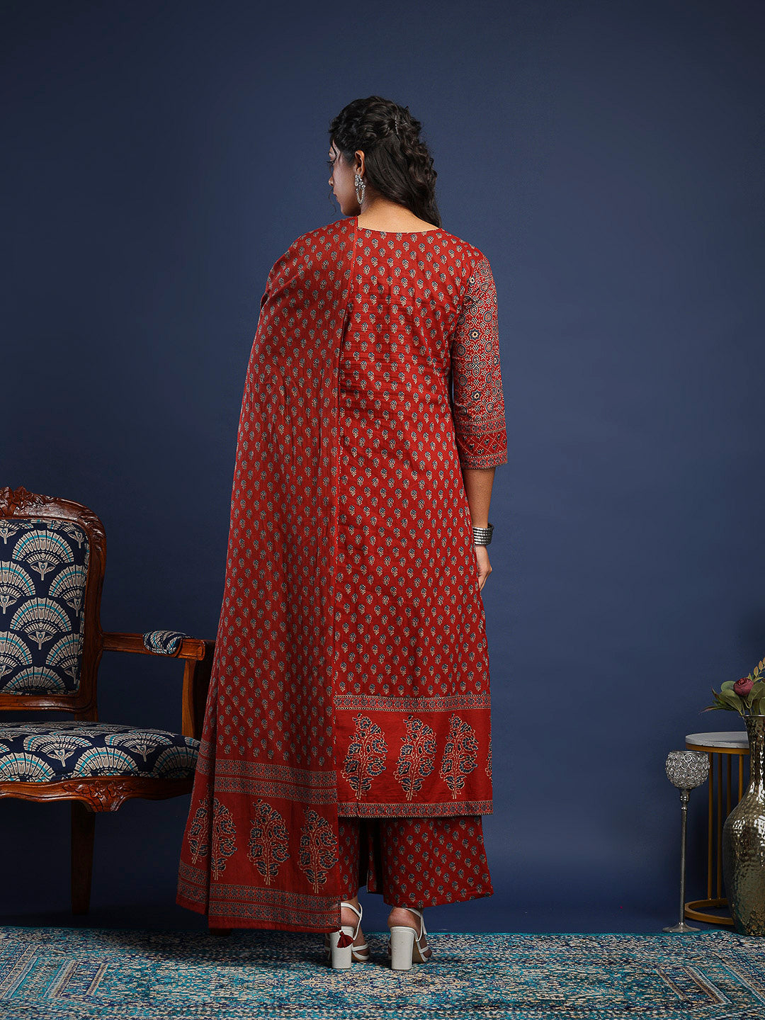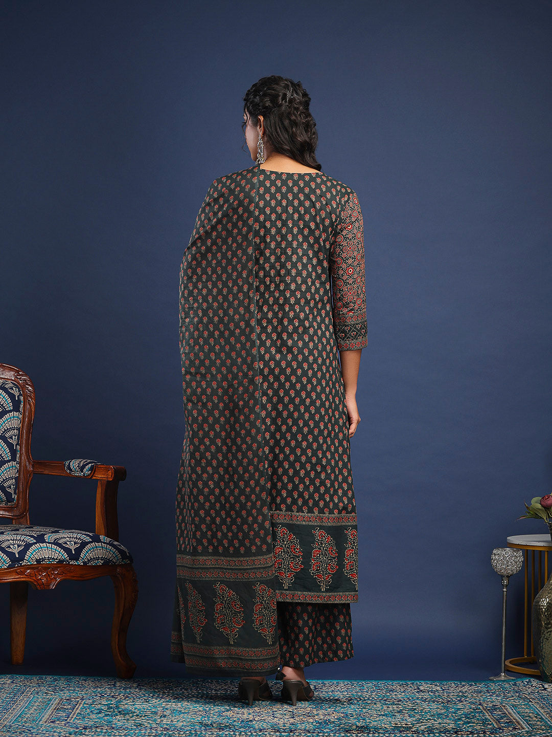 Printed Cotton Kurta With Pant & Dupatta