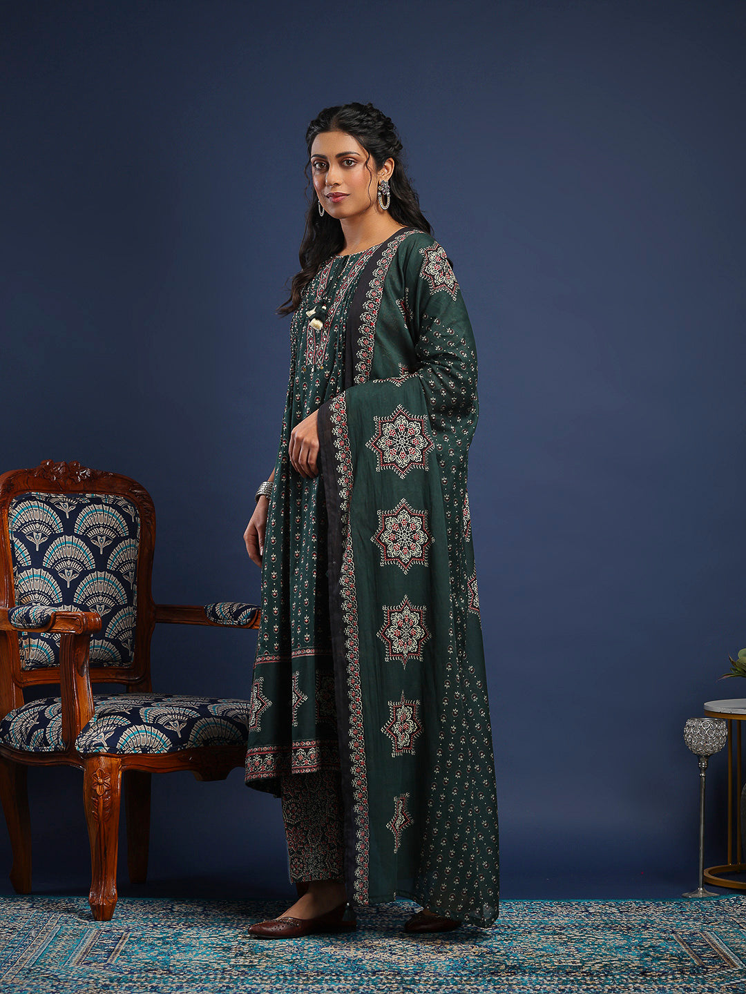 Printed Cotton Kurta With Pant & Dupatta