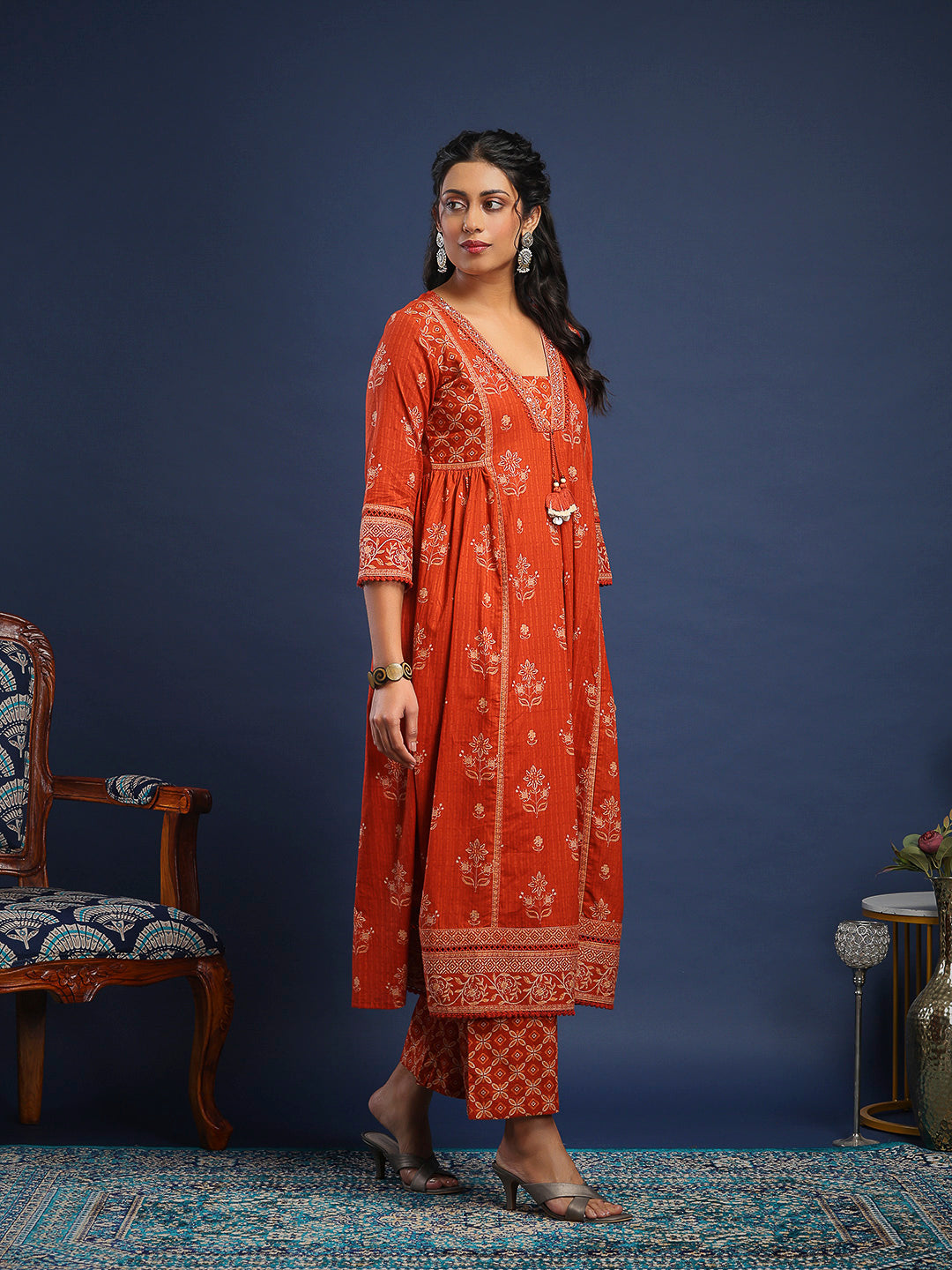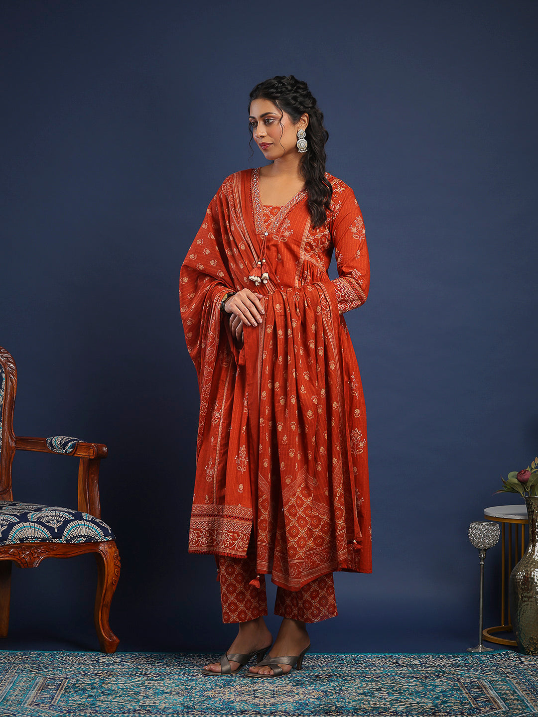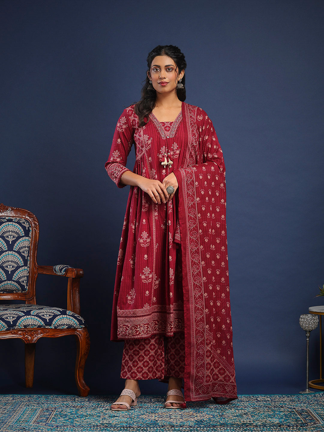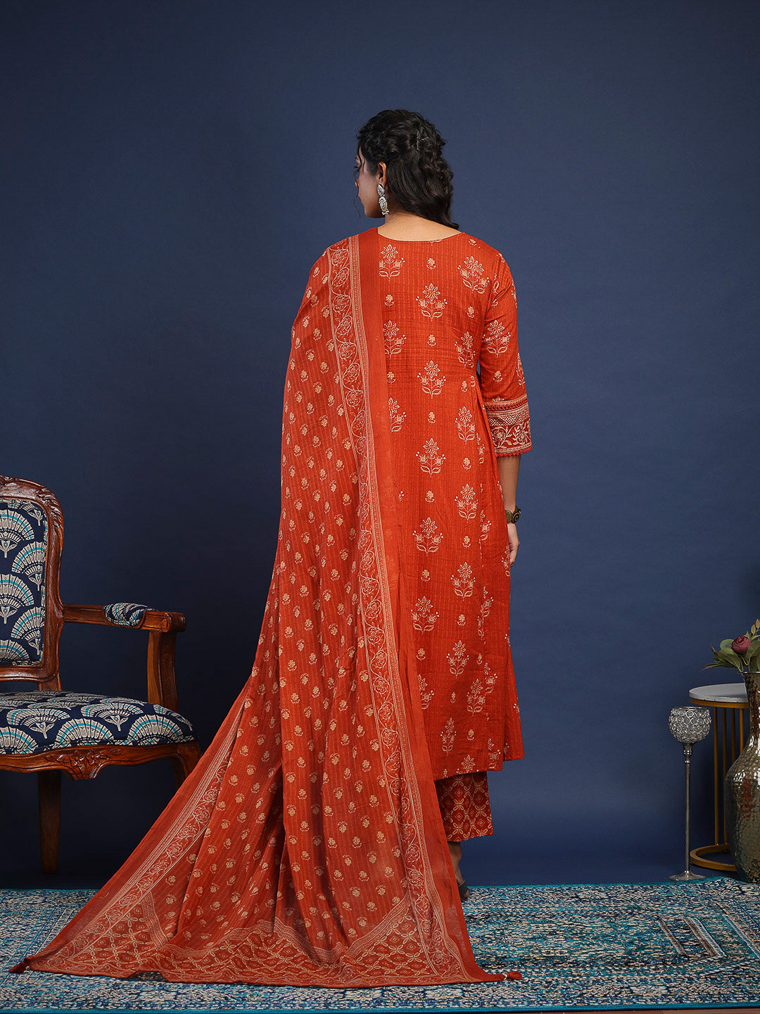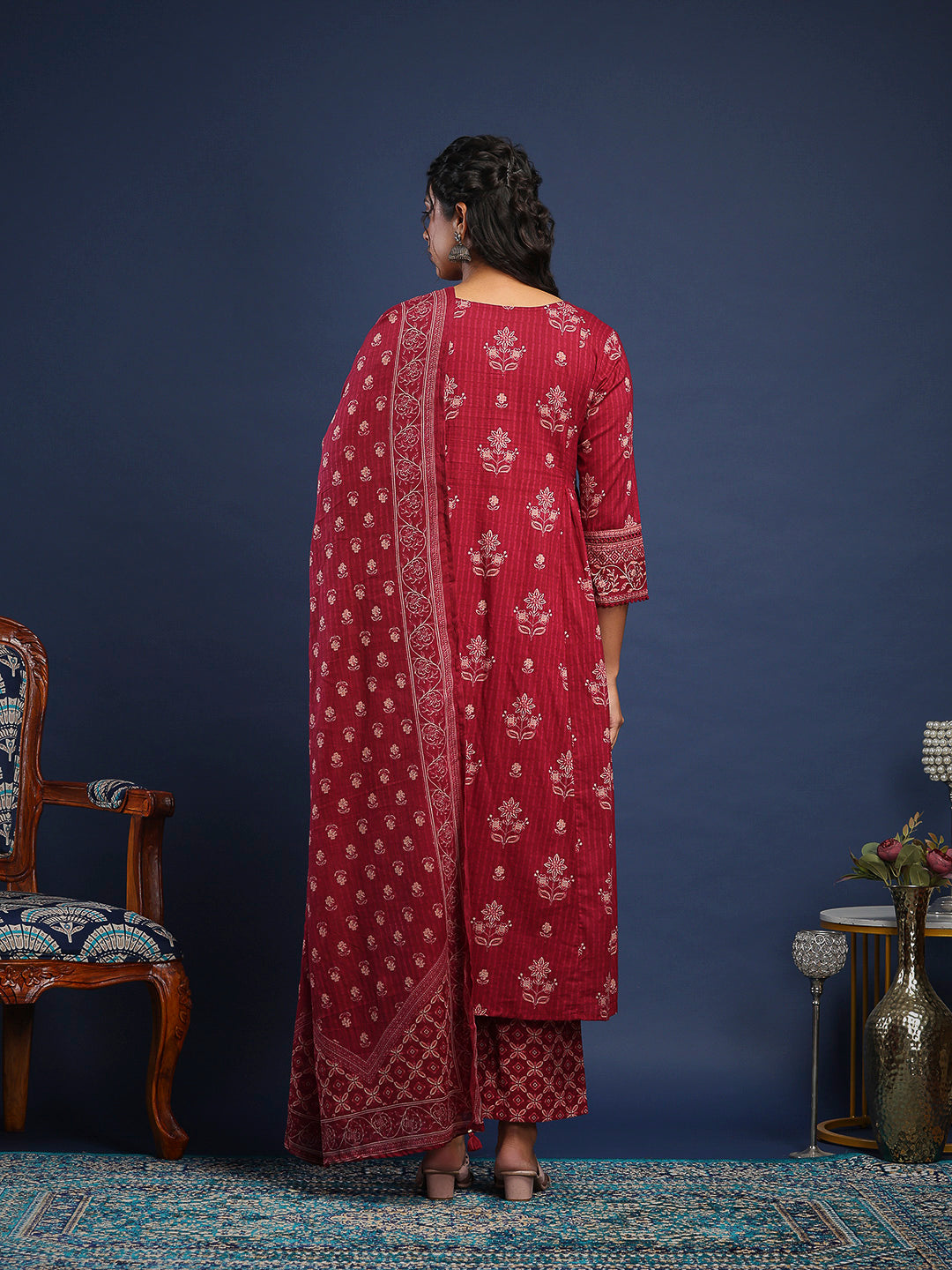 Printed Cotton Kurta With Pant & Dupatta