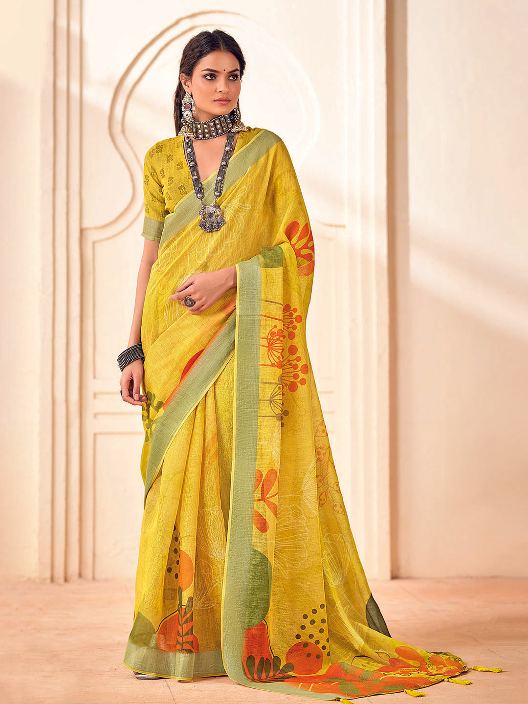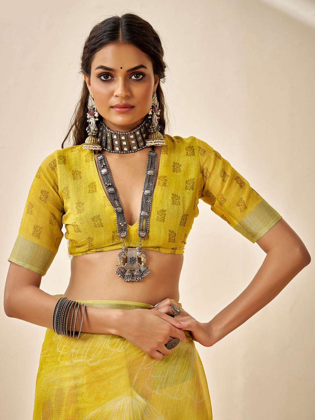 Note: The blouse shown in the pictures is just for Photoshoot purposes. The blouse you will get will be an attached running blouse.
