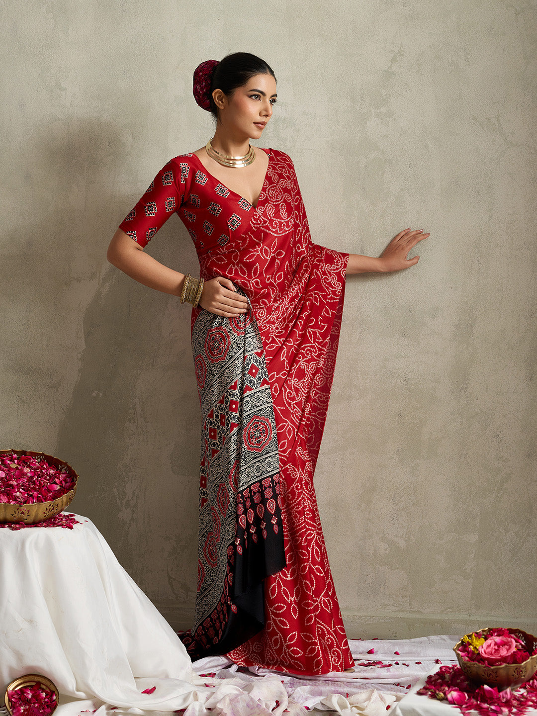 SKU: AW25-D-13-EX-NAARI-101-PTD-SAT-RED-5.40-MTR