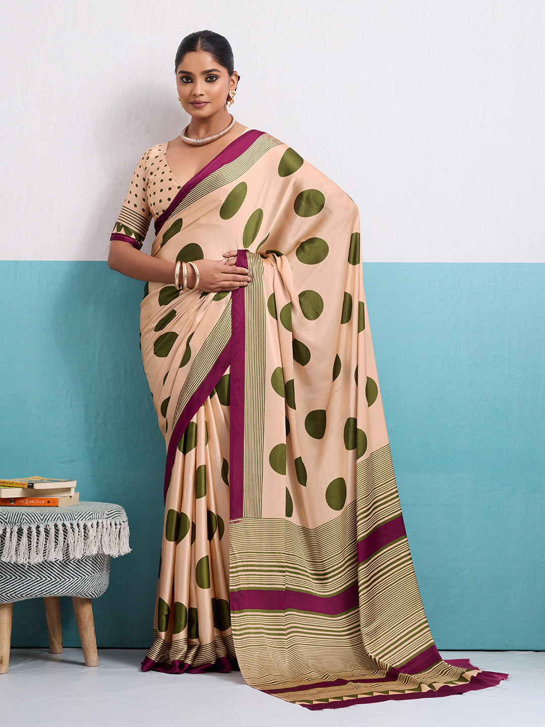 SKU: AW25-D-13-EX-NAARI-205-PTD-SAT-BEIGE-MEHNDI-5.40-MTR