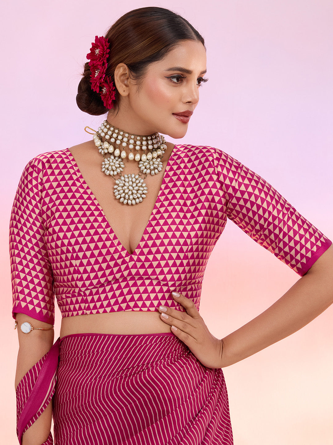 Note: The blouse shown in the pictures is just for Photoshoot purposes. The blouse you will get will be an attached running blouse.