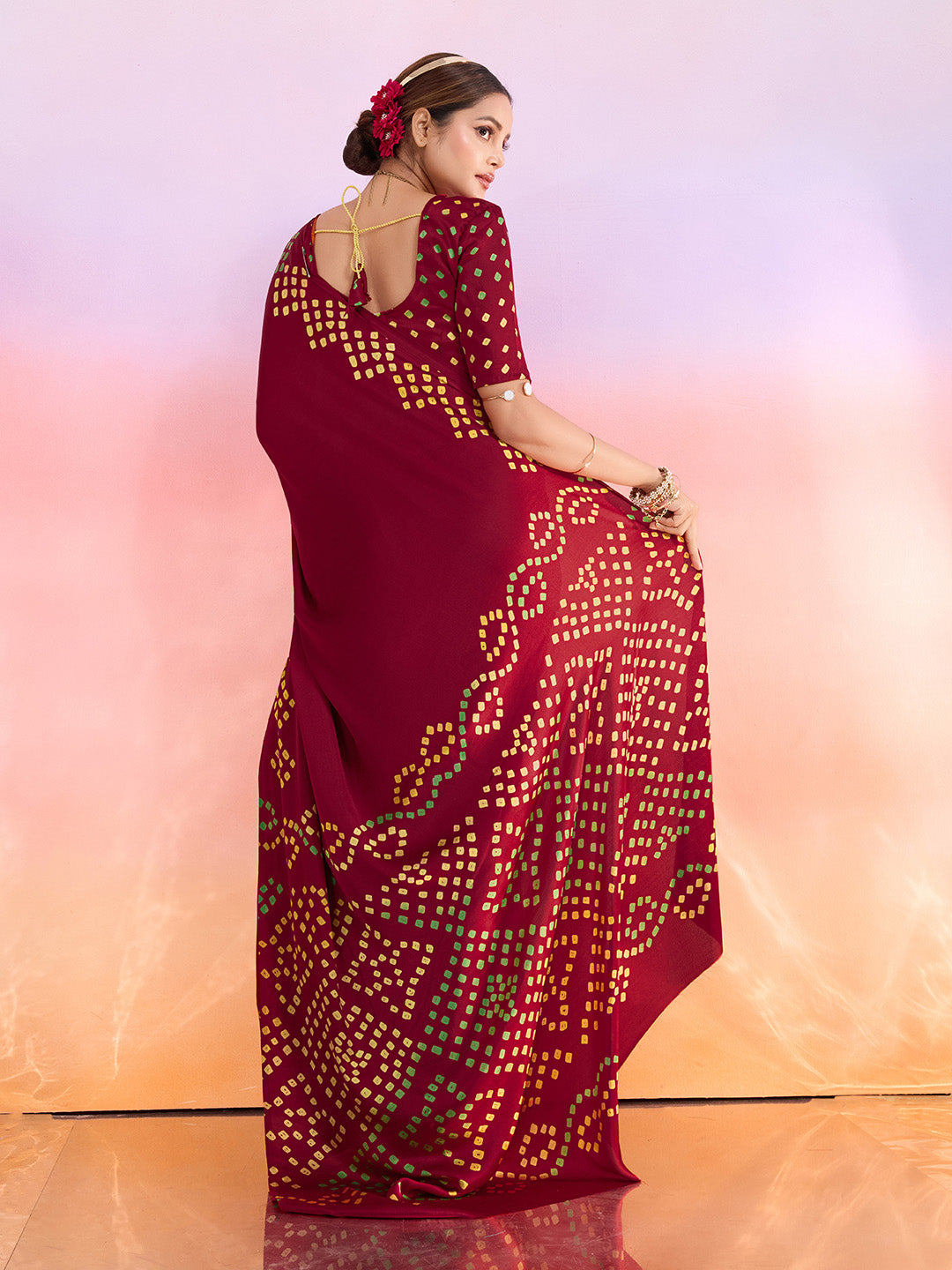Note: The blouse shown in the pictures is just for Photoshoot purposes. The blouse you will get will be an attached running blouse.