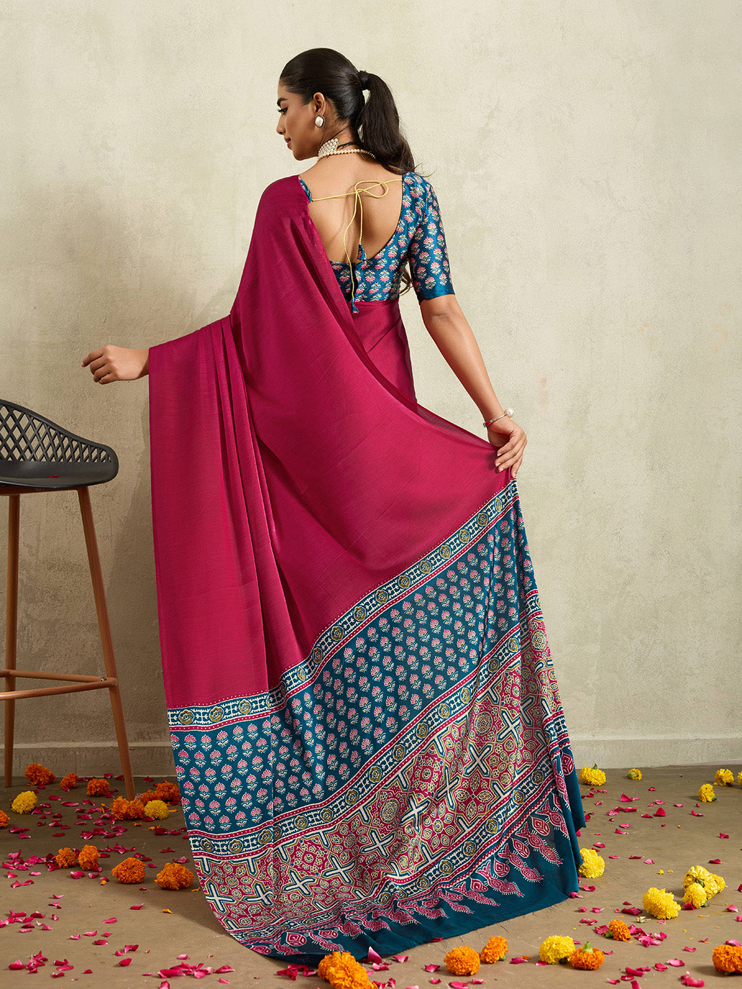 Note: The blouse shown in the pictures is just for Photoshoot purposes. The blouse you will get will be an attached running blouse.