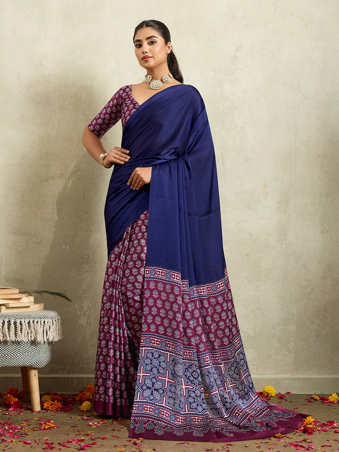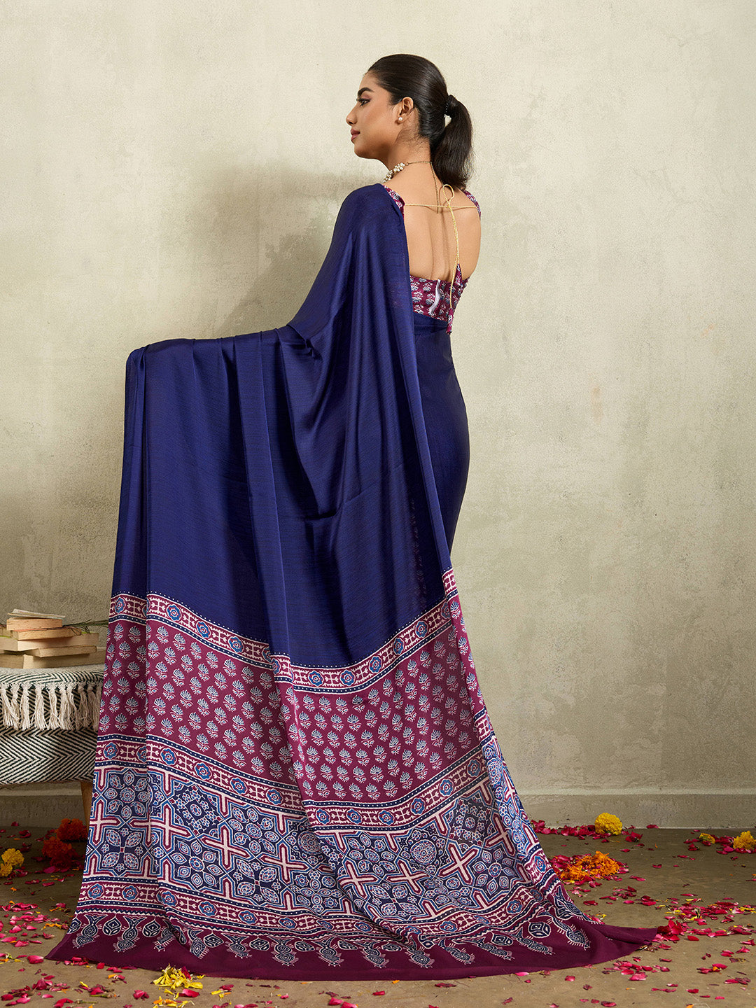SKU: AW25-D-13-EX-NAARI-602-PTD-SAT-BLUE-WINE-5.40-MTR