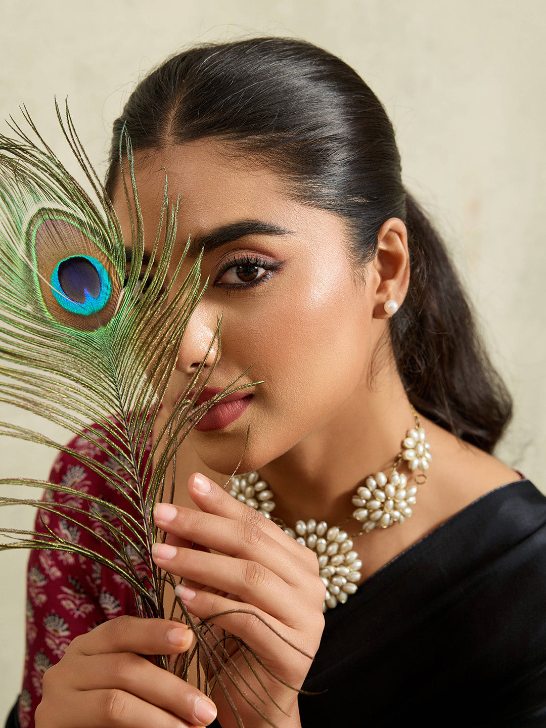 Note: The blouse shown in the pictures is just for Photoshoot purposes. The blouse you will get will be an attached running blouse.