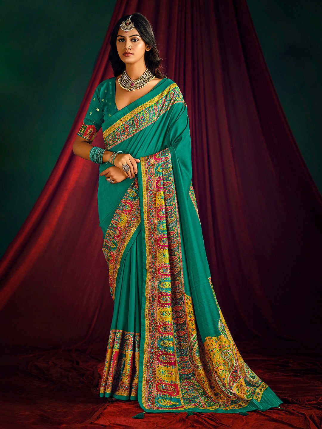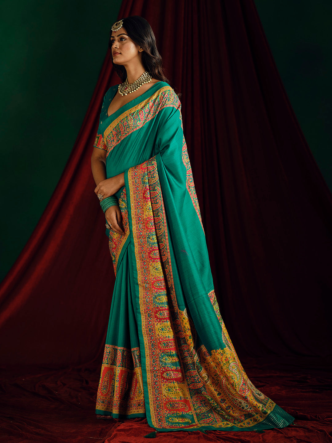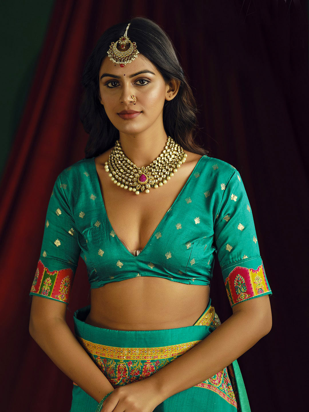 Note: The blouse shown in the pictures is just for Photoshoot purposes. The blouse you will get will be an attached running blouse.