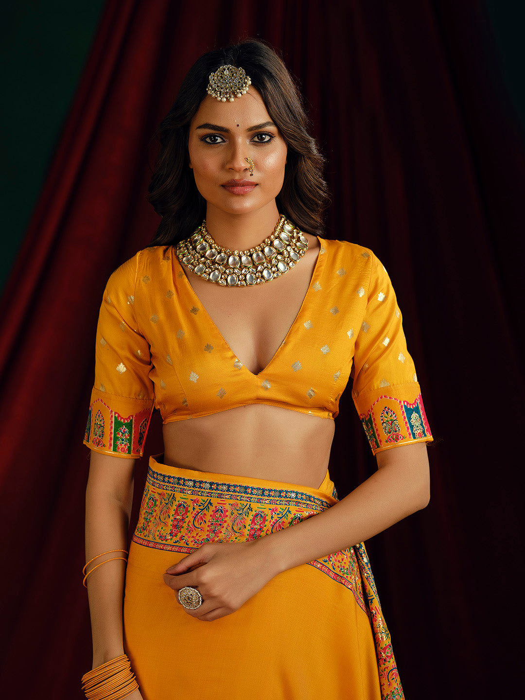 Note: The blouse shown in the pictures is just for Photoshoot purposes. The blouse you will get will be an attached running blouse.