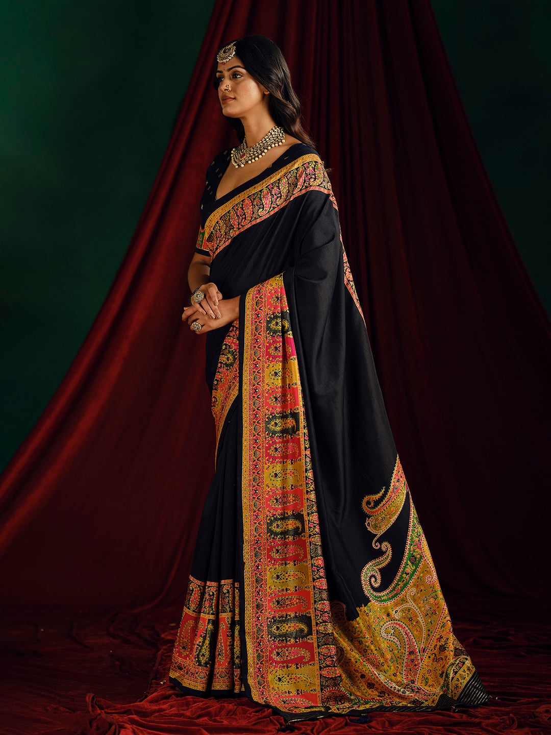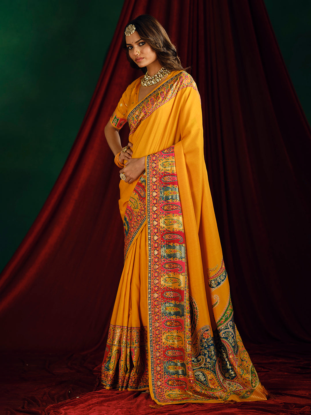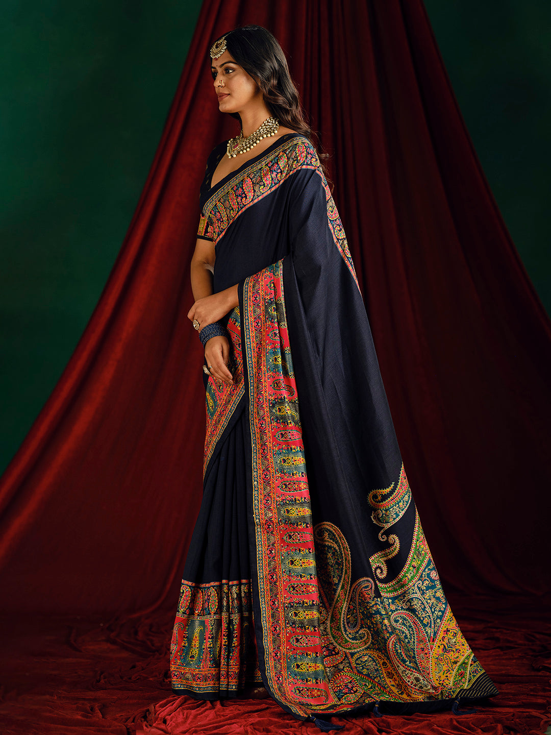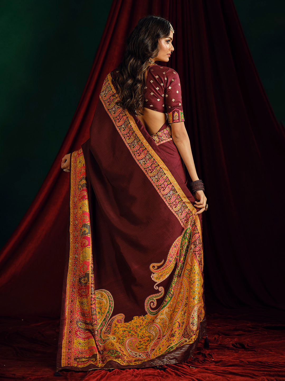 Note:The blouse shown in the pictures is just for Photoshoot purposes. The blouse you will get will be an attached running blouse.