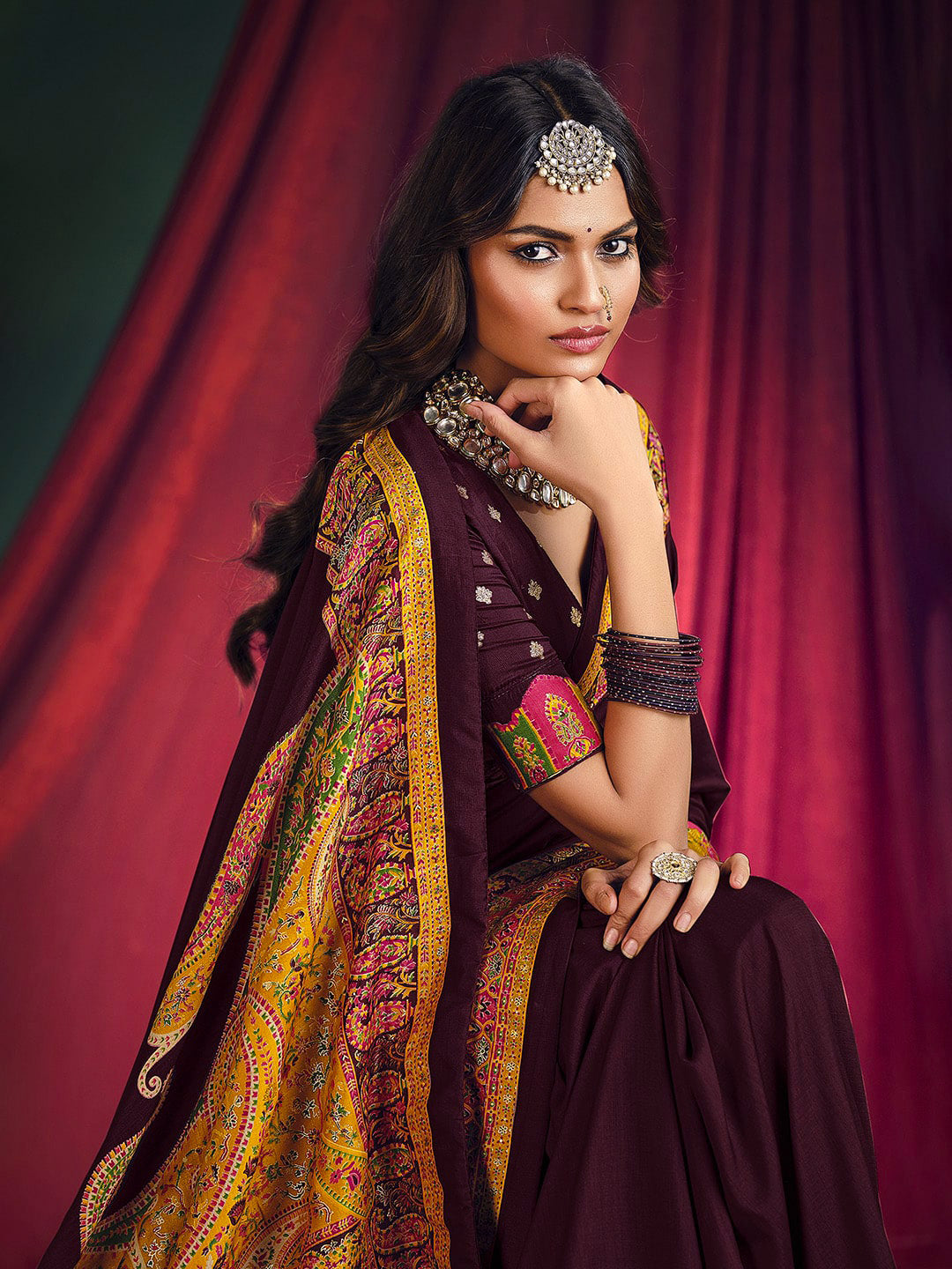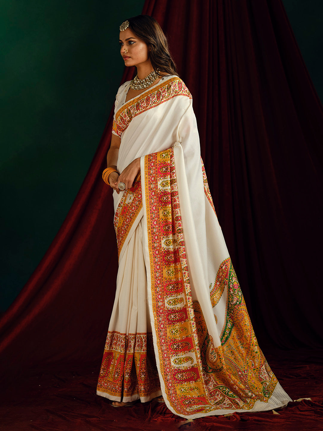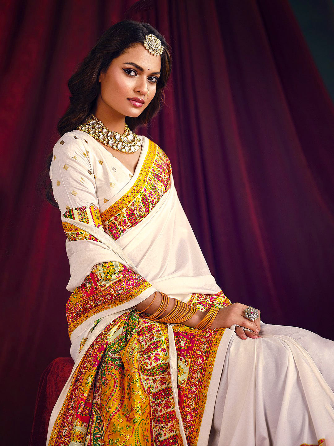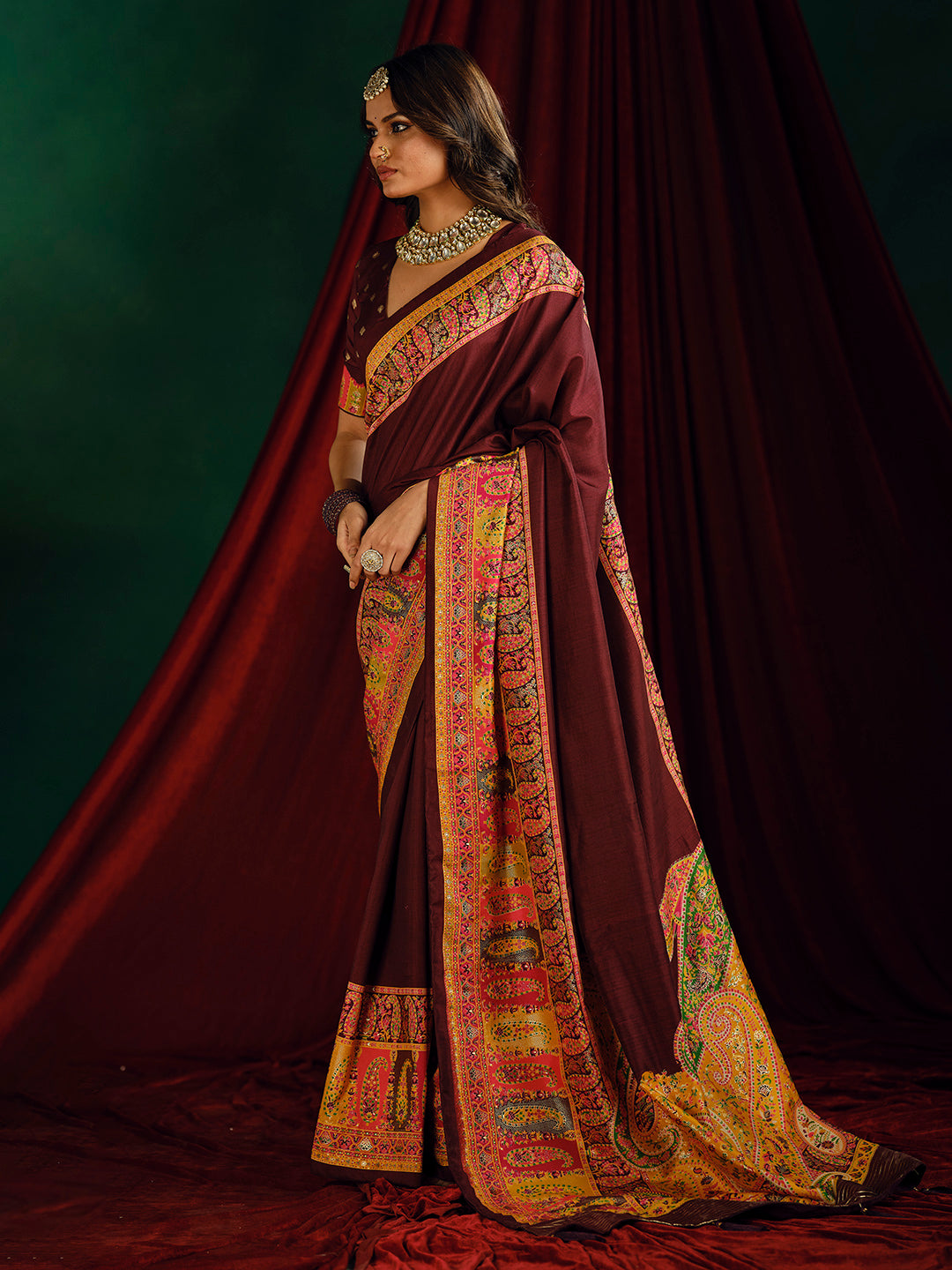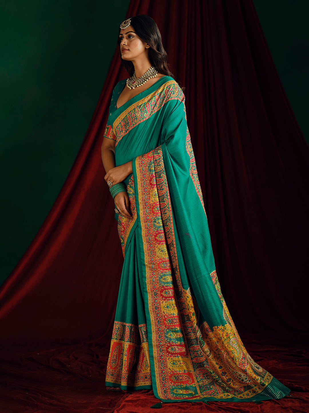 Note:The blouse shown in the pictures is just for Photoshoot purposes. The blouse you will get will be an attached running blouse.