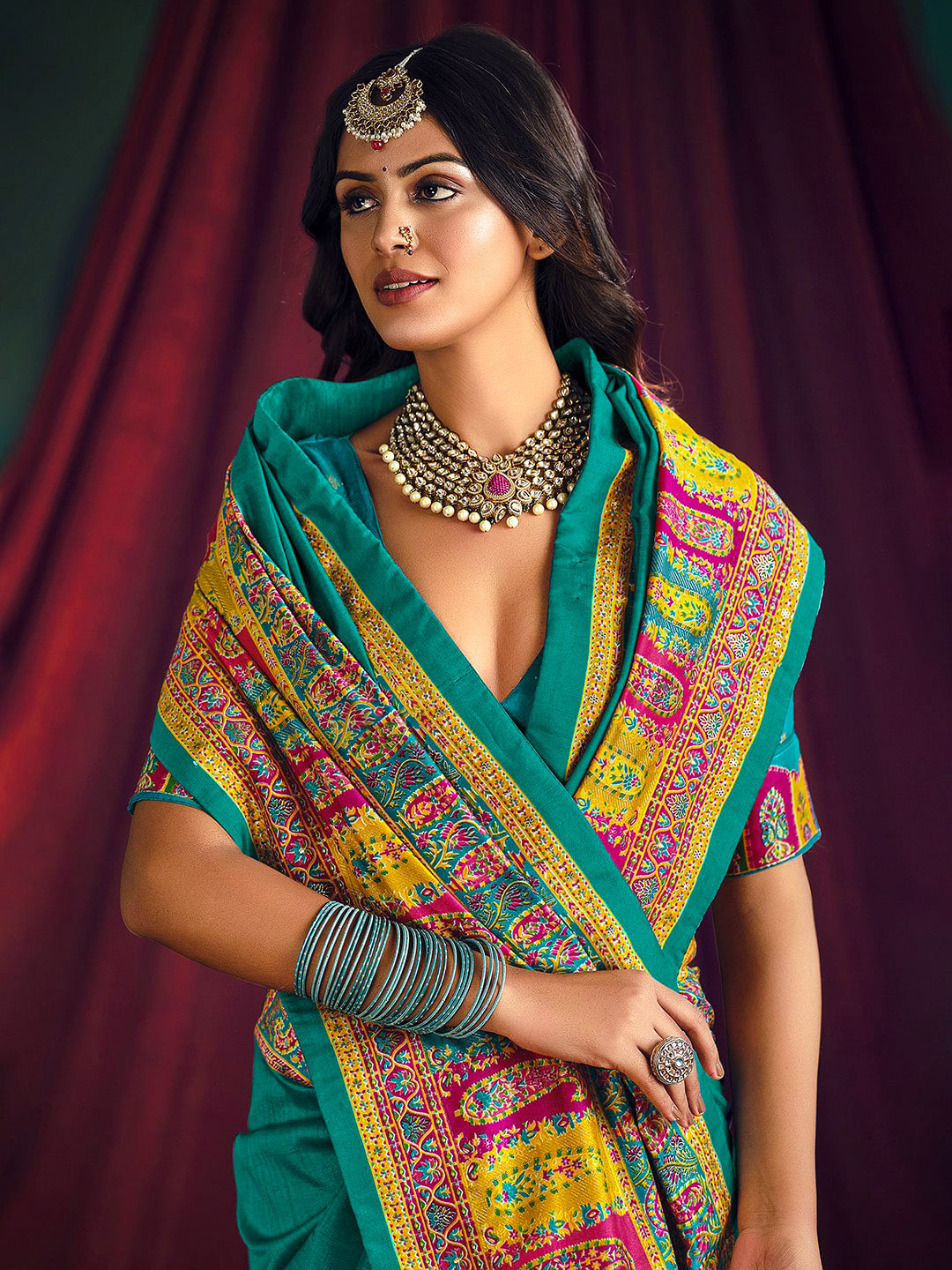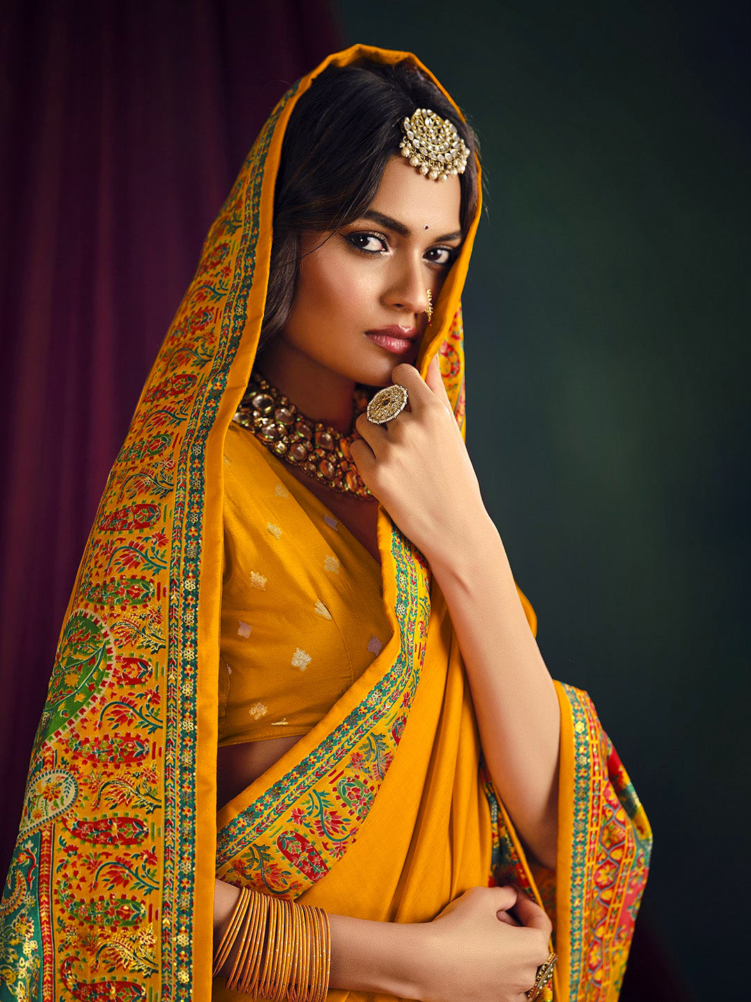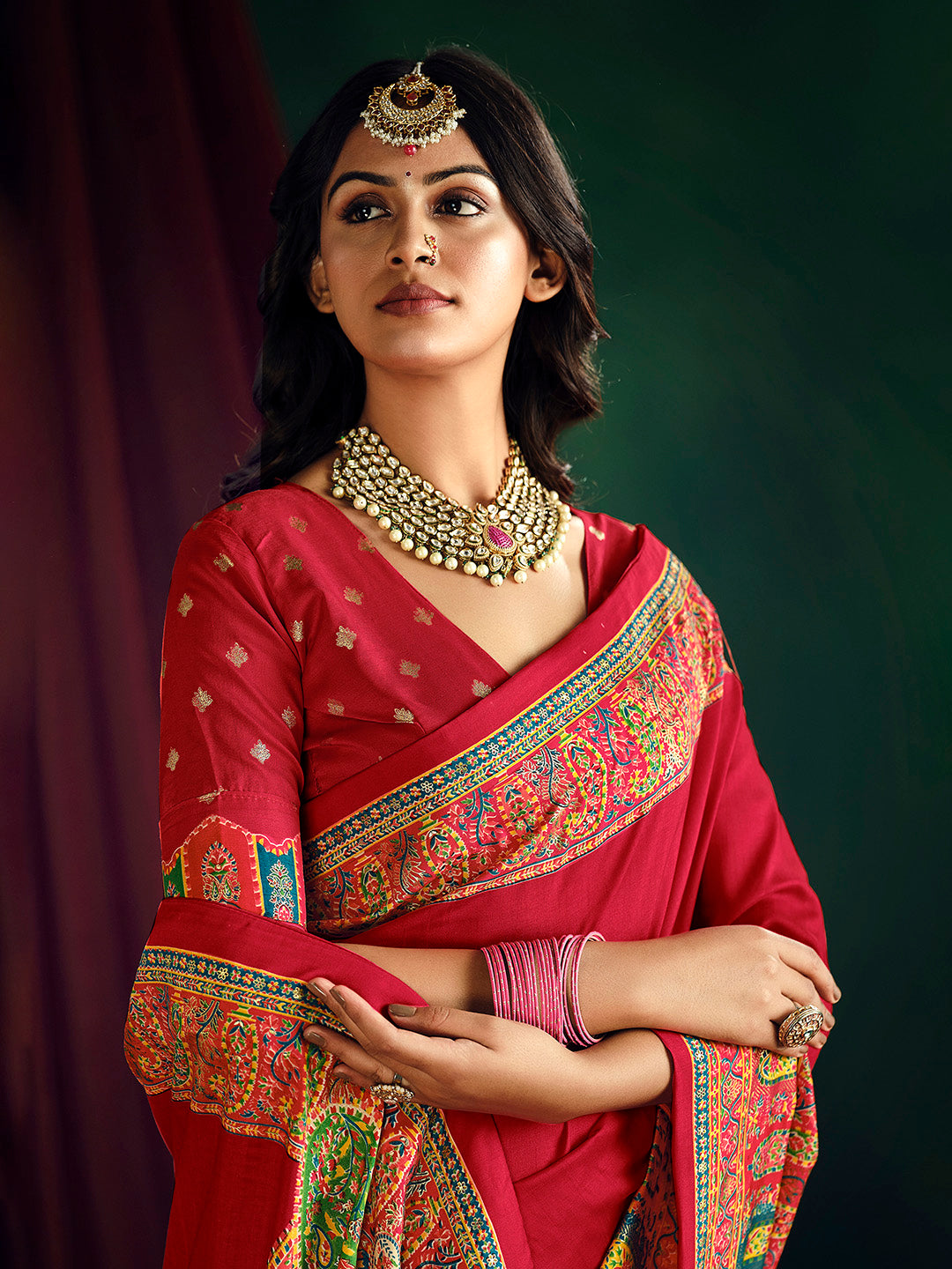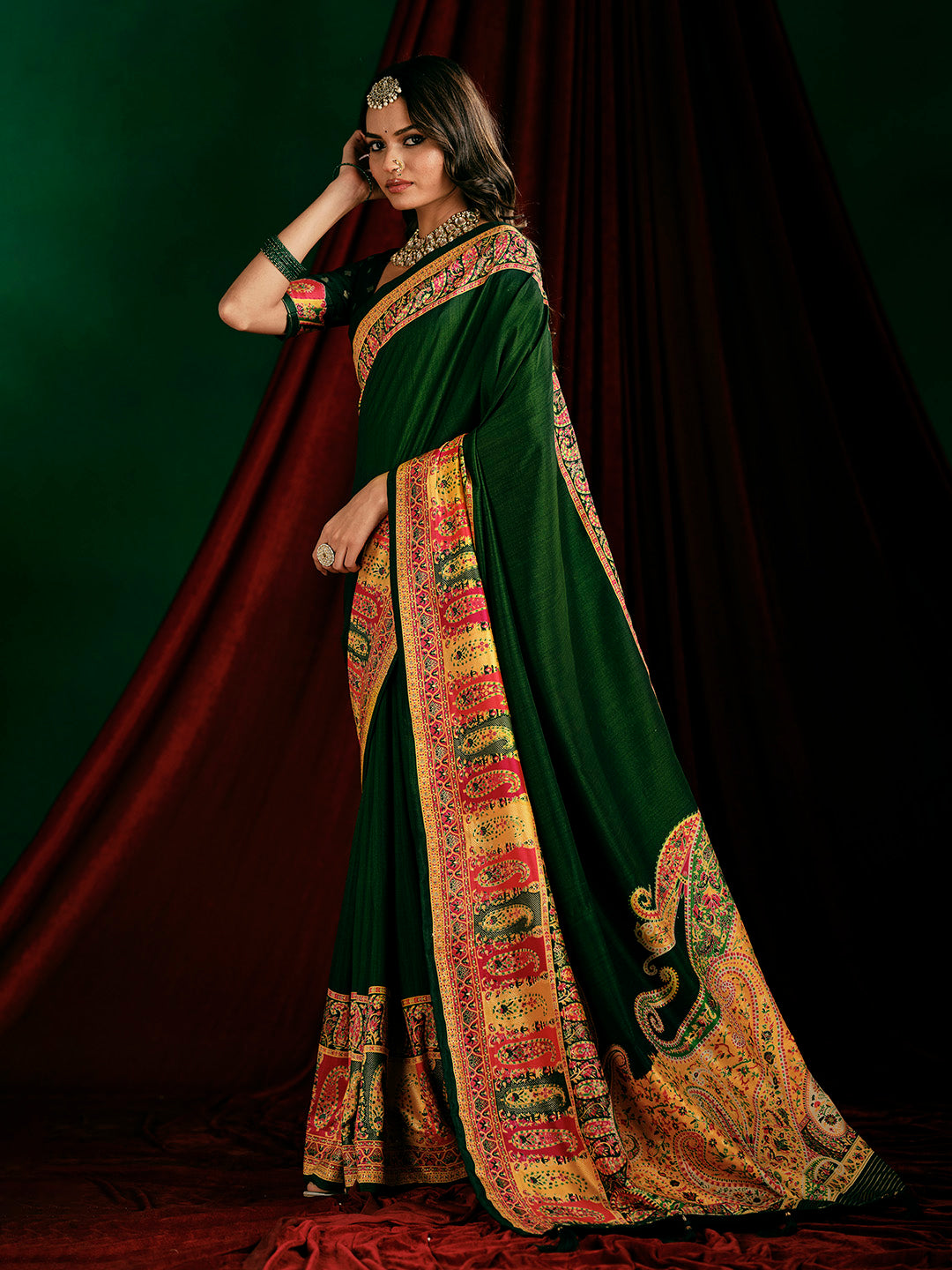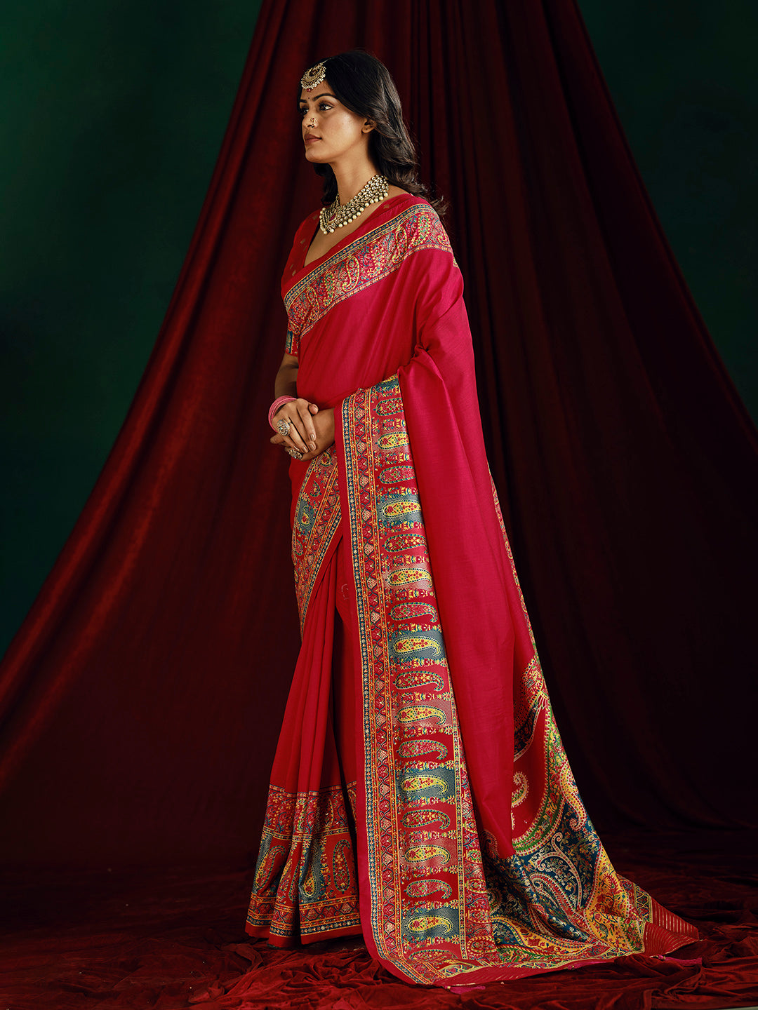 Note:The blouse shown in the pictures is just for Photoshoot purposes. The blouse you will get will be an attached running blouse.