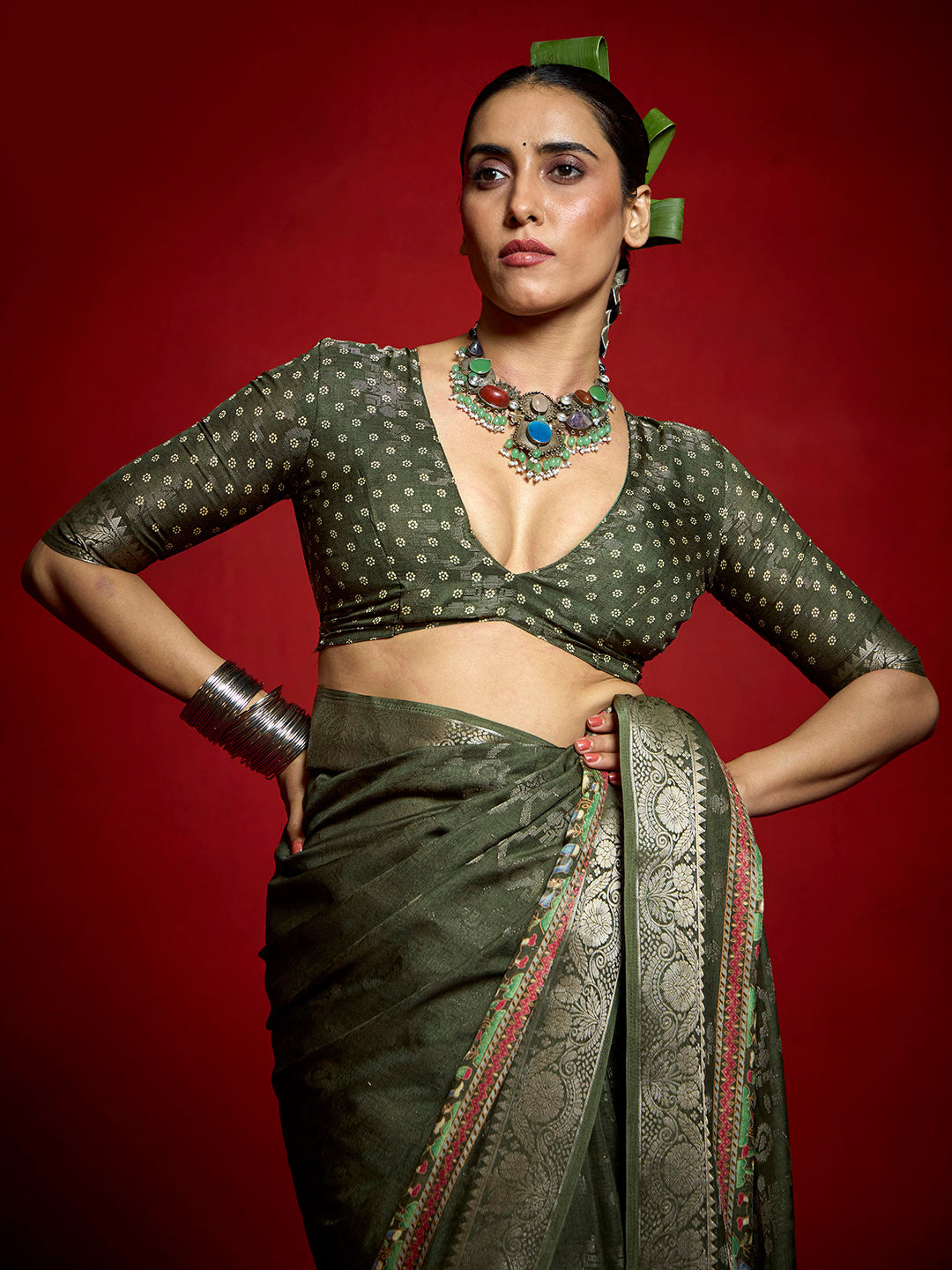 Note: The blouse shown in the pictures is just for Photoshoot purposes. The blouse you will get will be an attached running blouse.